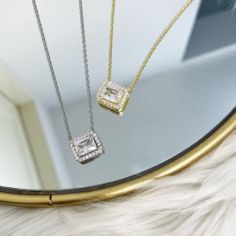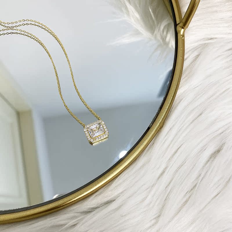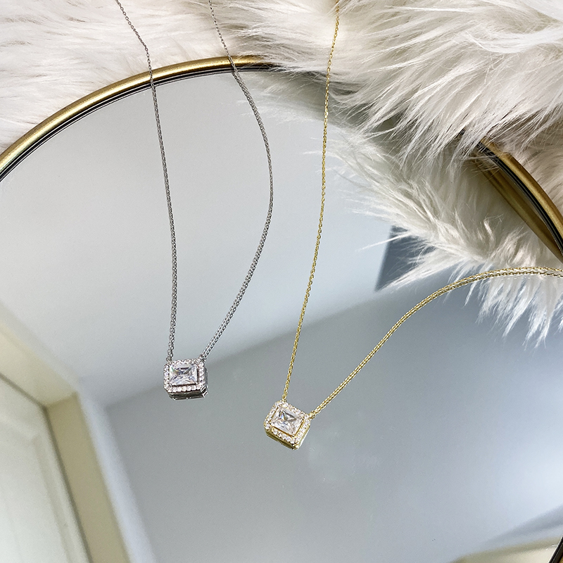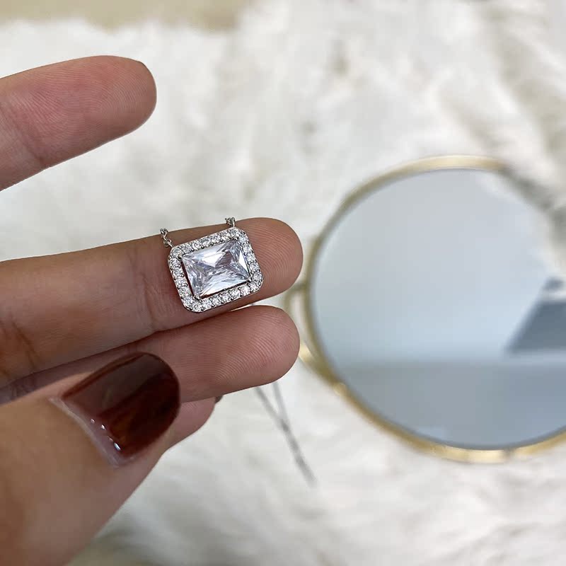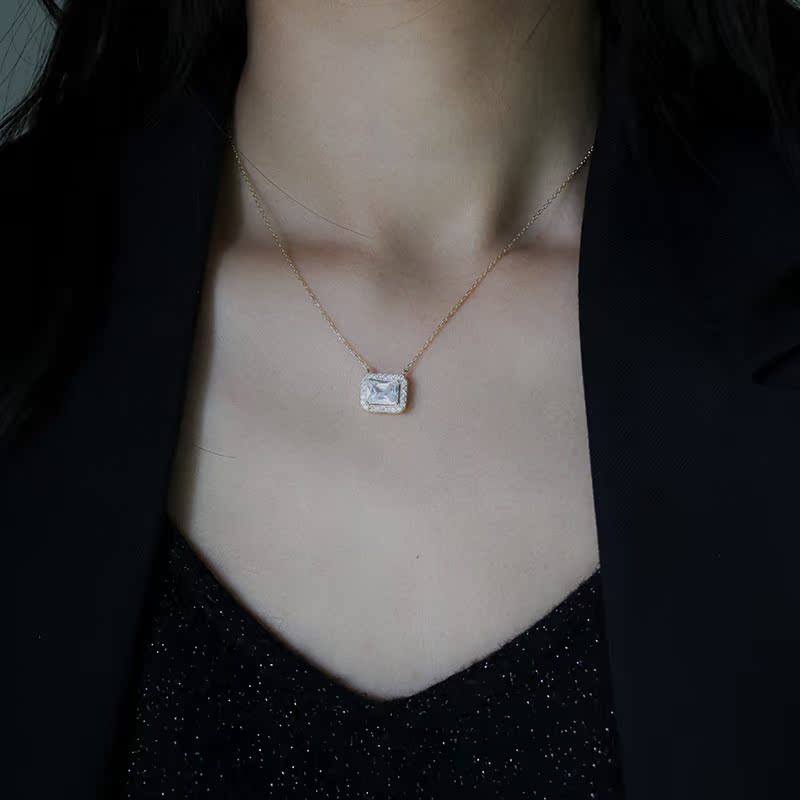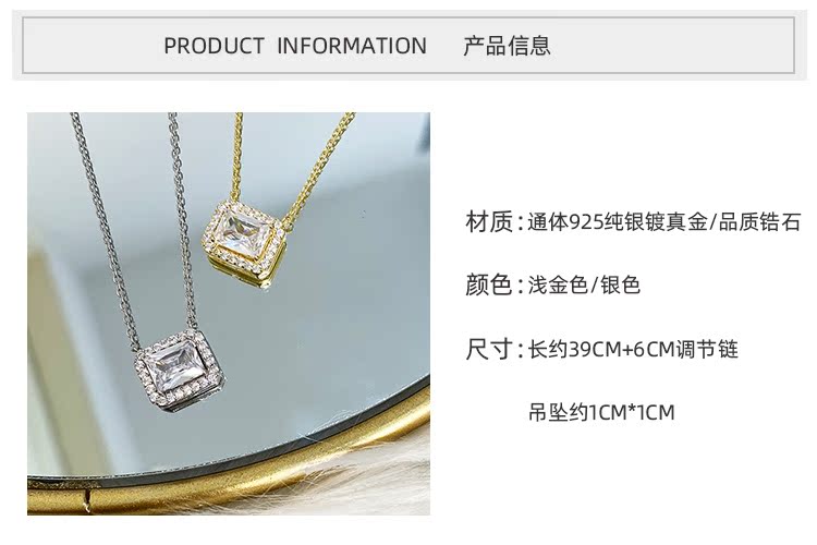 輕奢微鑲通體925純銀方形鋯石項鏈小眾設計感冷淡風簡約鎖骨鏈女1入