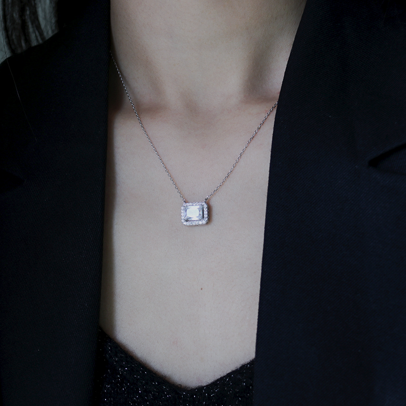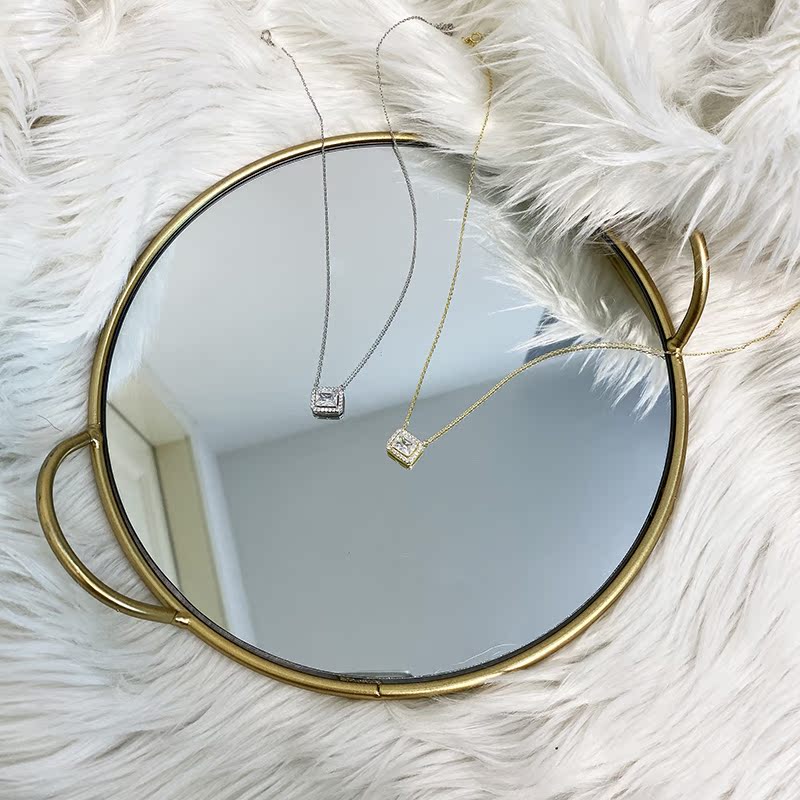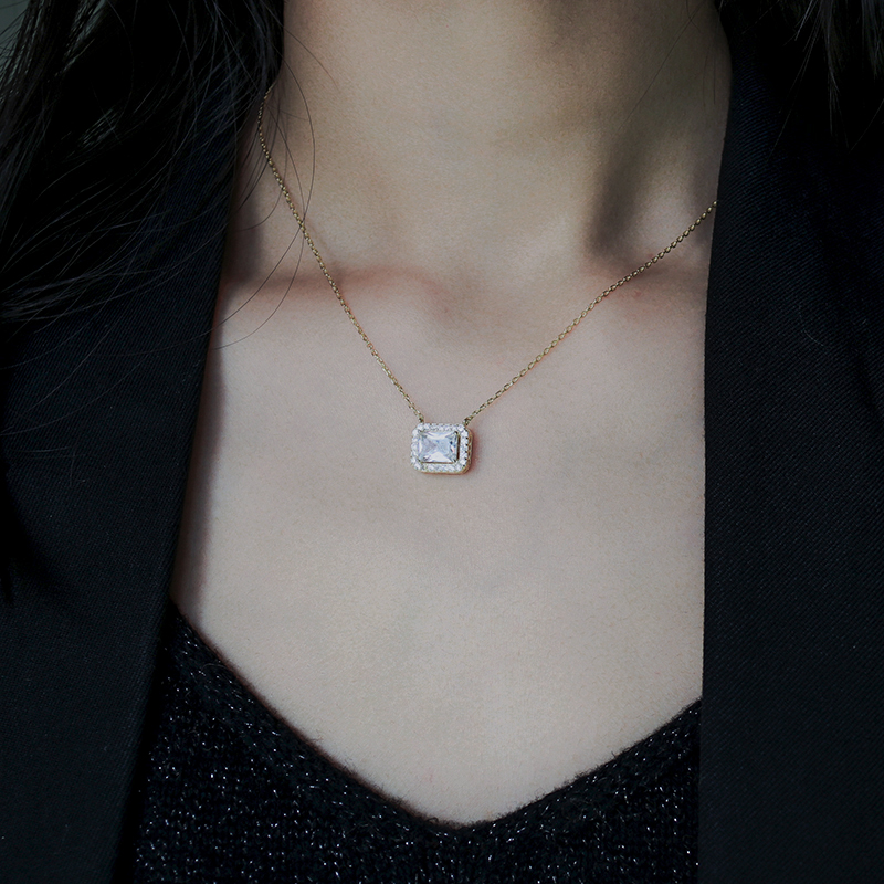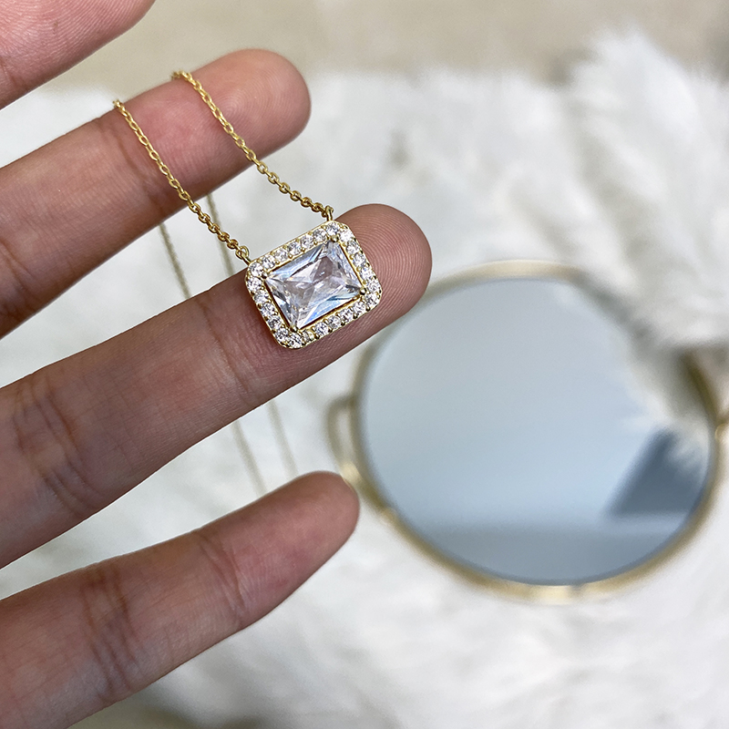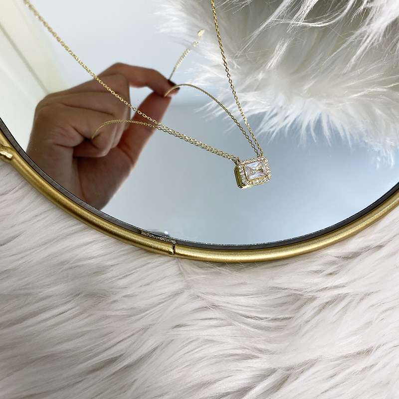 輕奢微鑲通體925純銀方形鋯石項鏈小眾設計感冷淡風簡約鎖骨鏈女1入