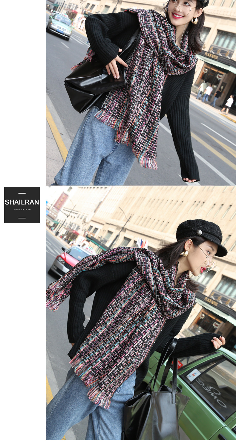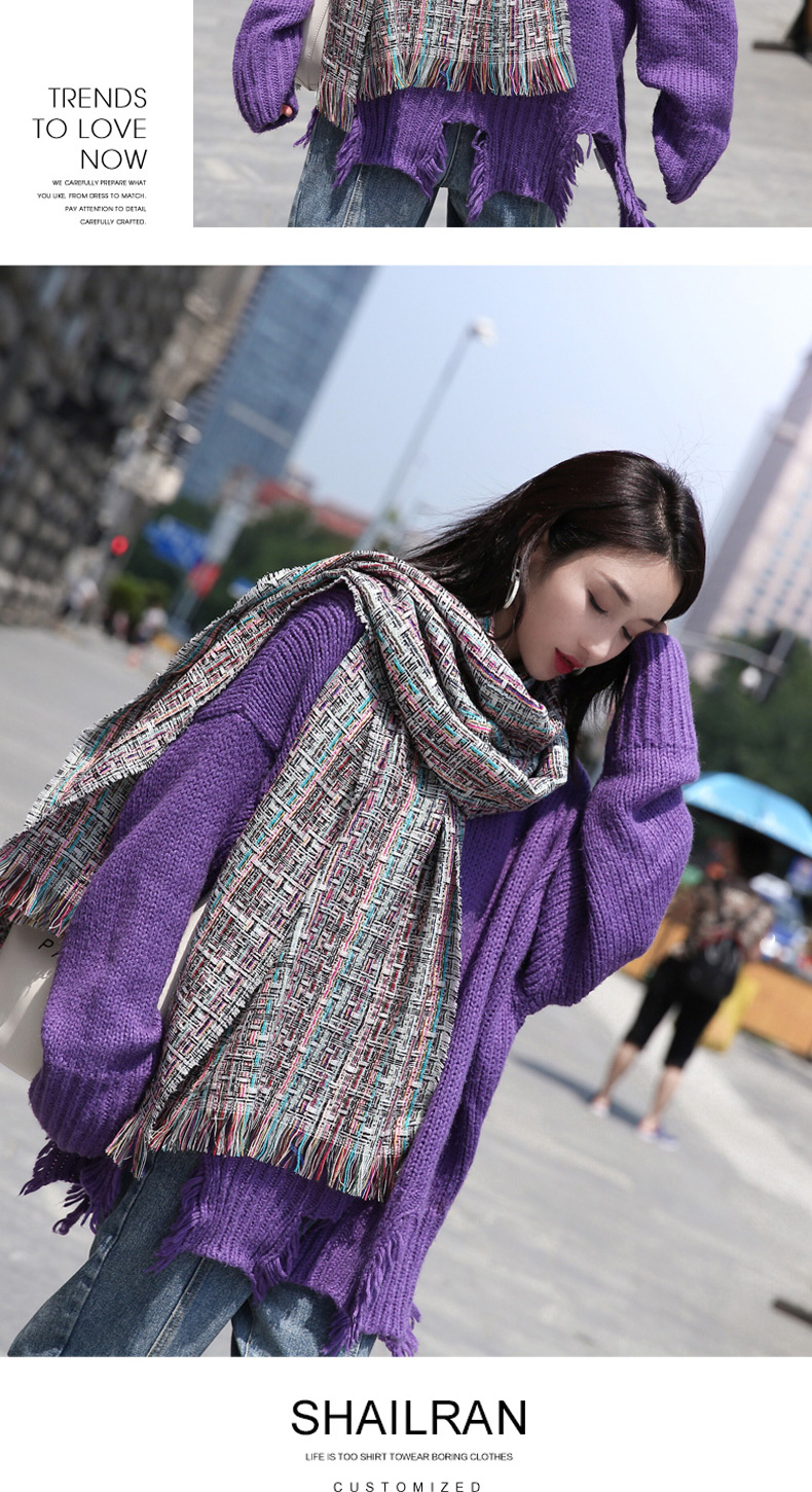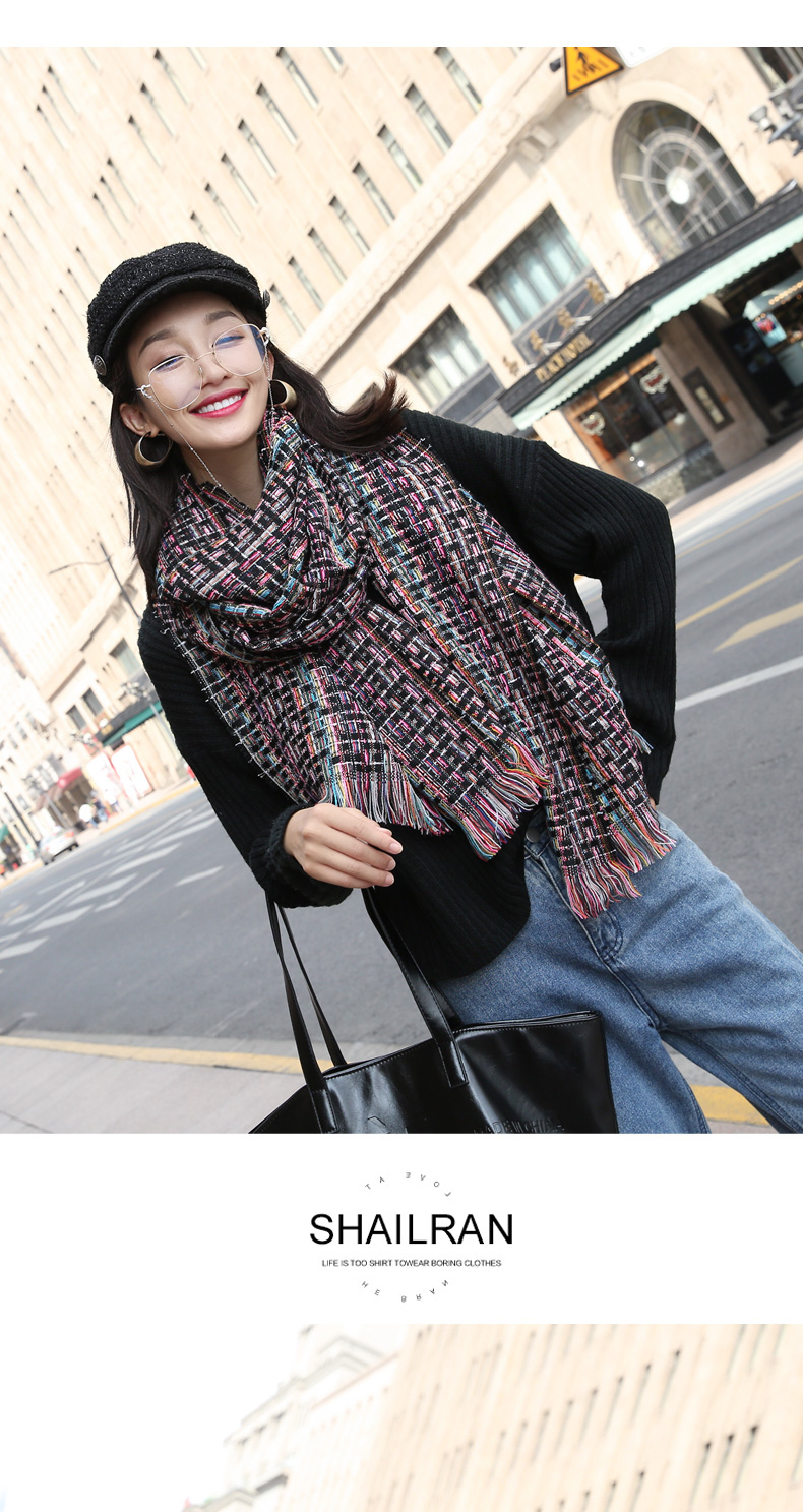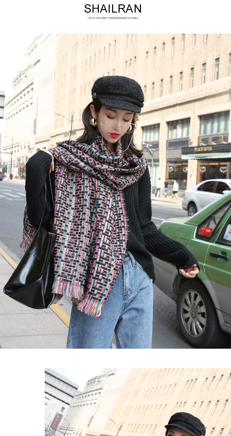 2019新款歐美時尚百搭小香風圍巾女冬季保暖秋冬毛邊民族風大披肩1入
