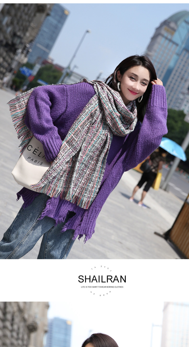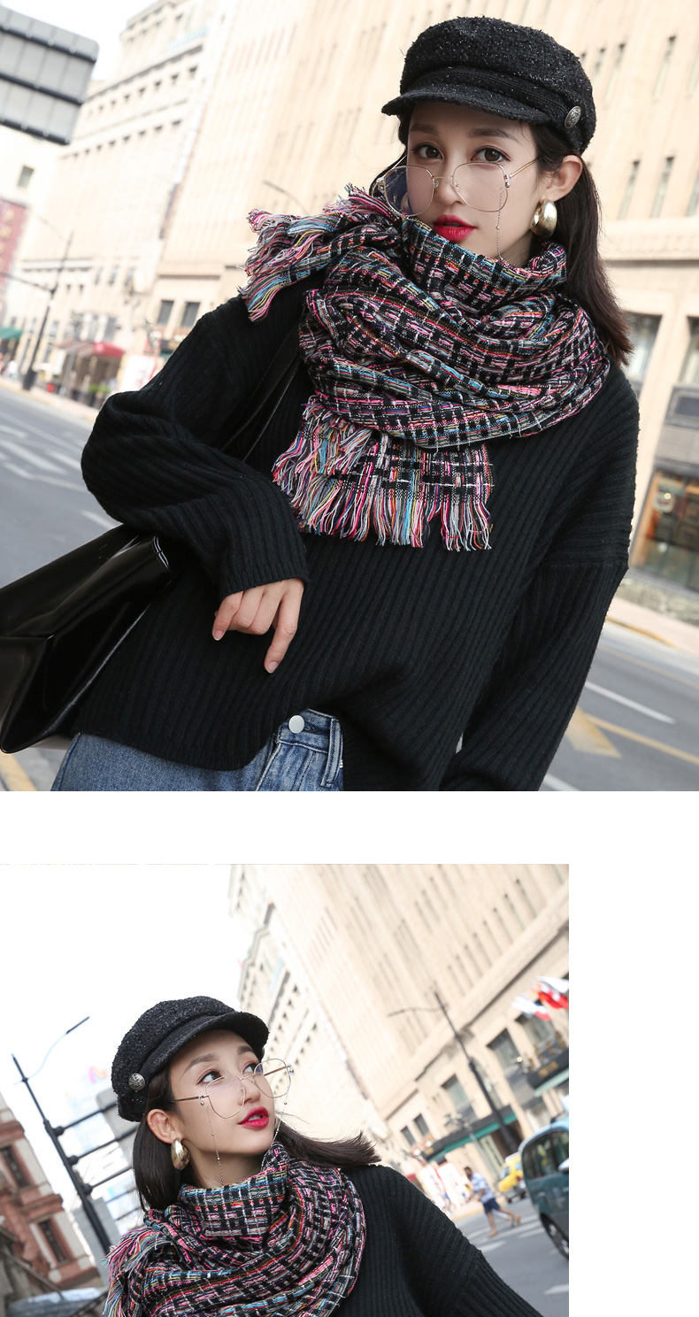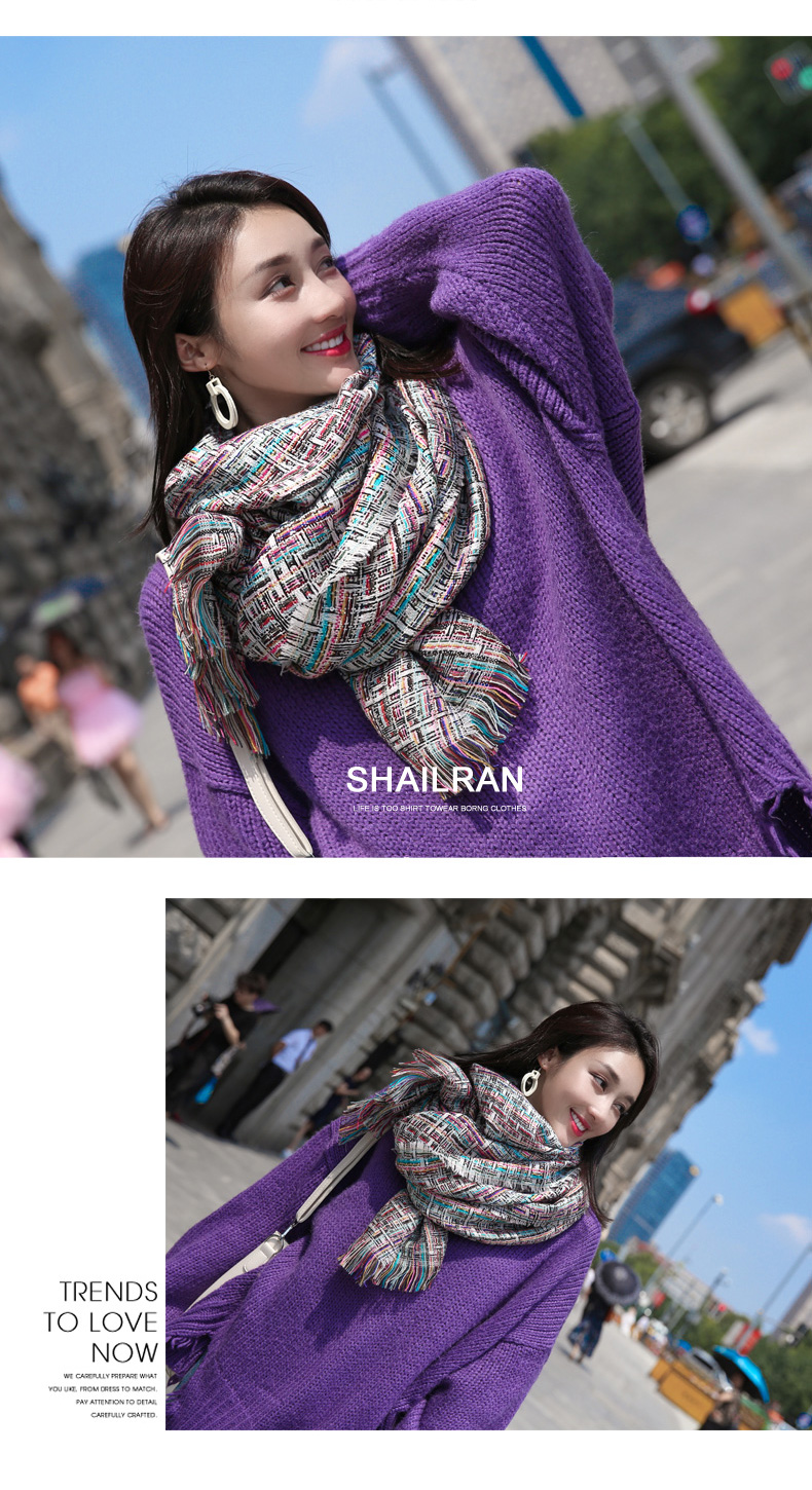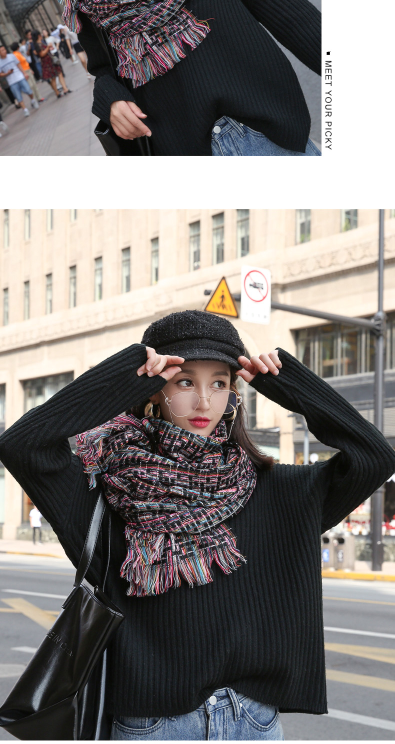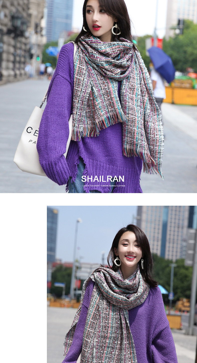2019新款歐美時尚百搭小香風圍巾女冬季保暖秋冬毛邊民族風大披肩1入