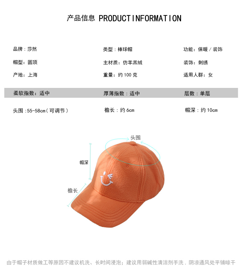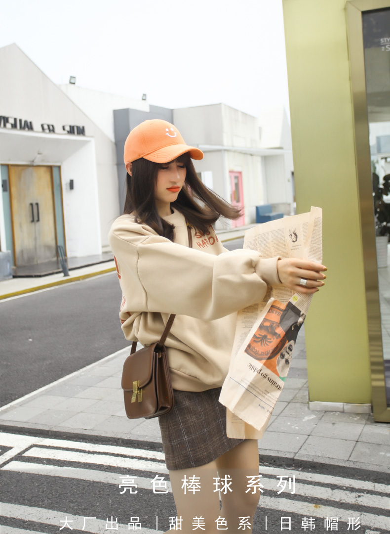 2019新款橙色秋冬棒球帽女秋天韓版時尚百搭潮鴨舌帽韓國潮人帽1入