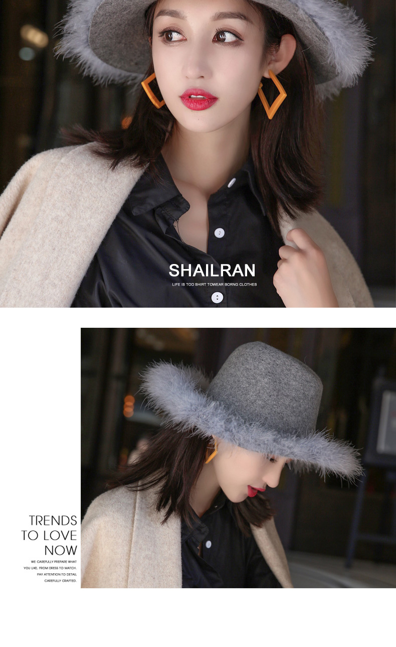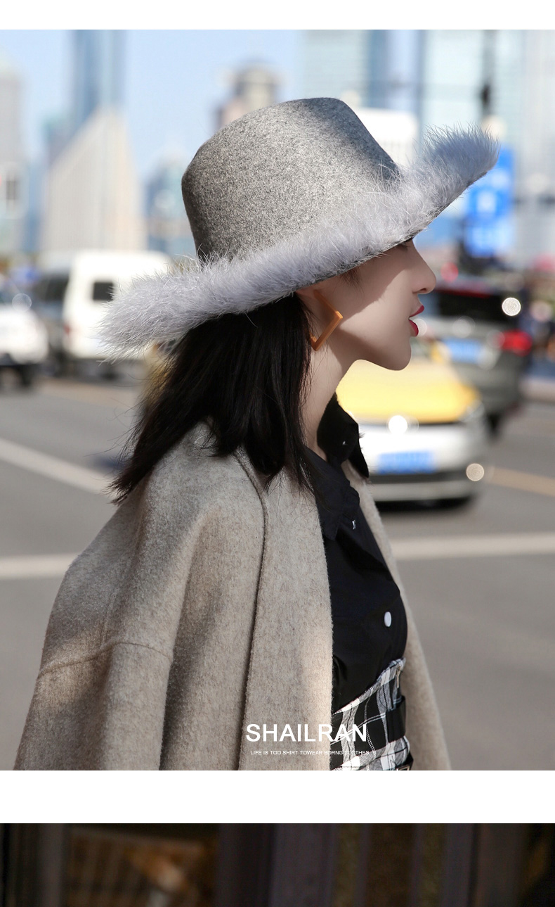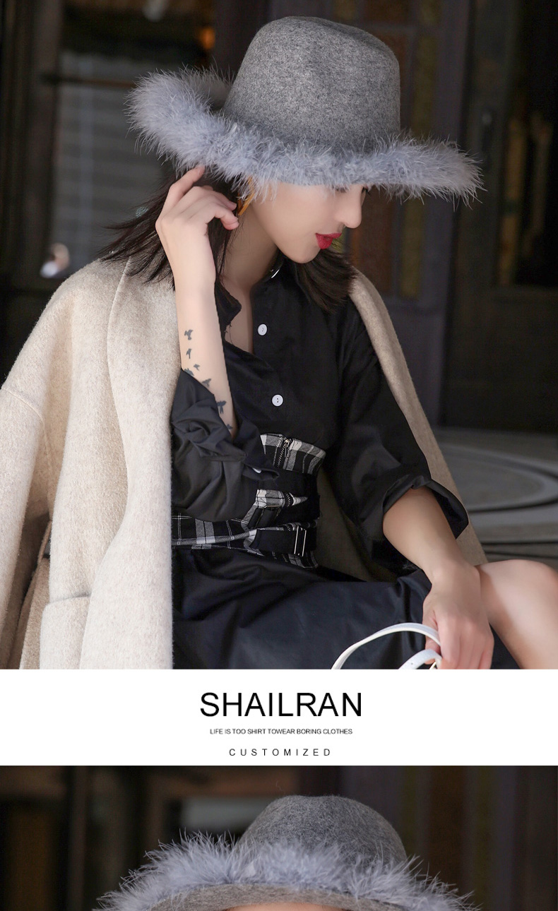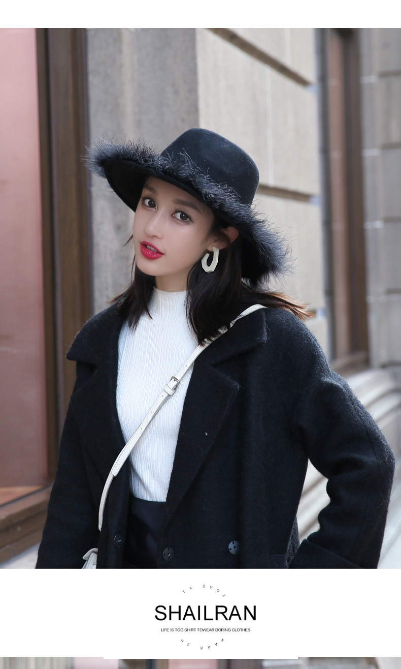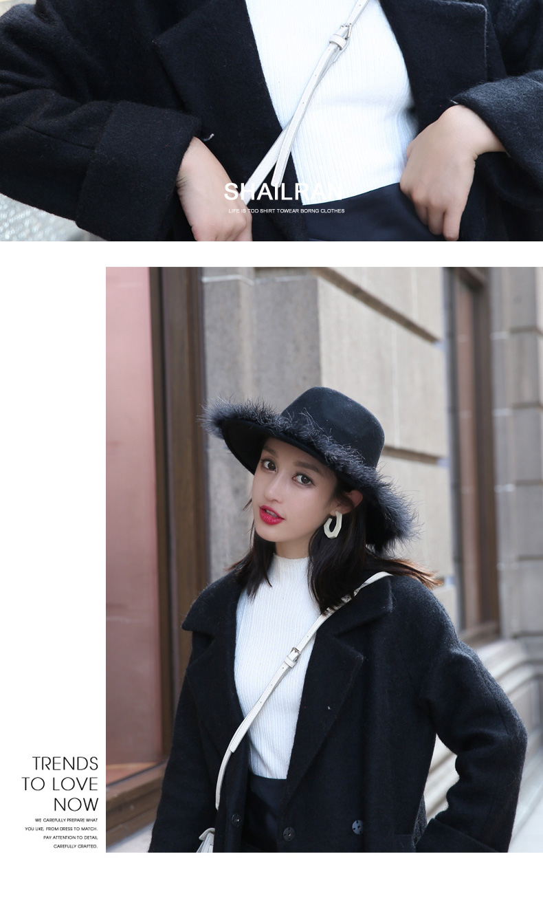 2018新款秋天黑色羊毛毛呢帽子禮帽女英倫時尚爵士帽寬沿歐美秋冬1入