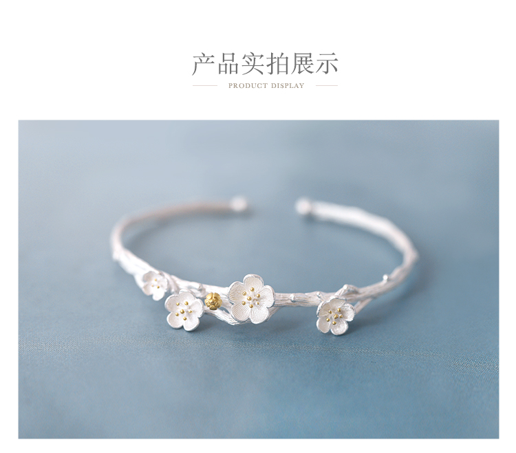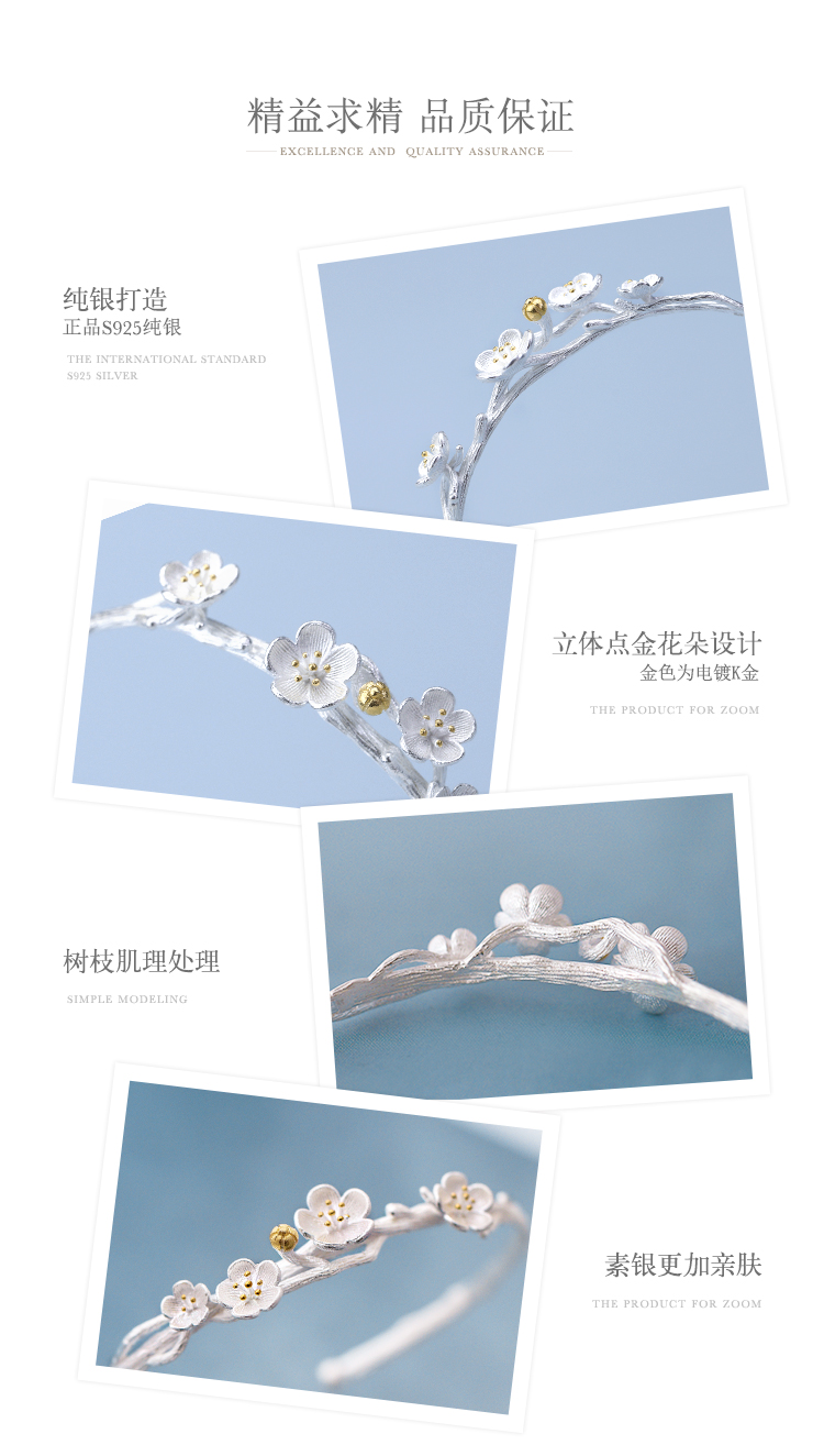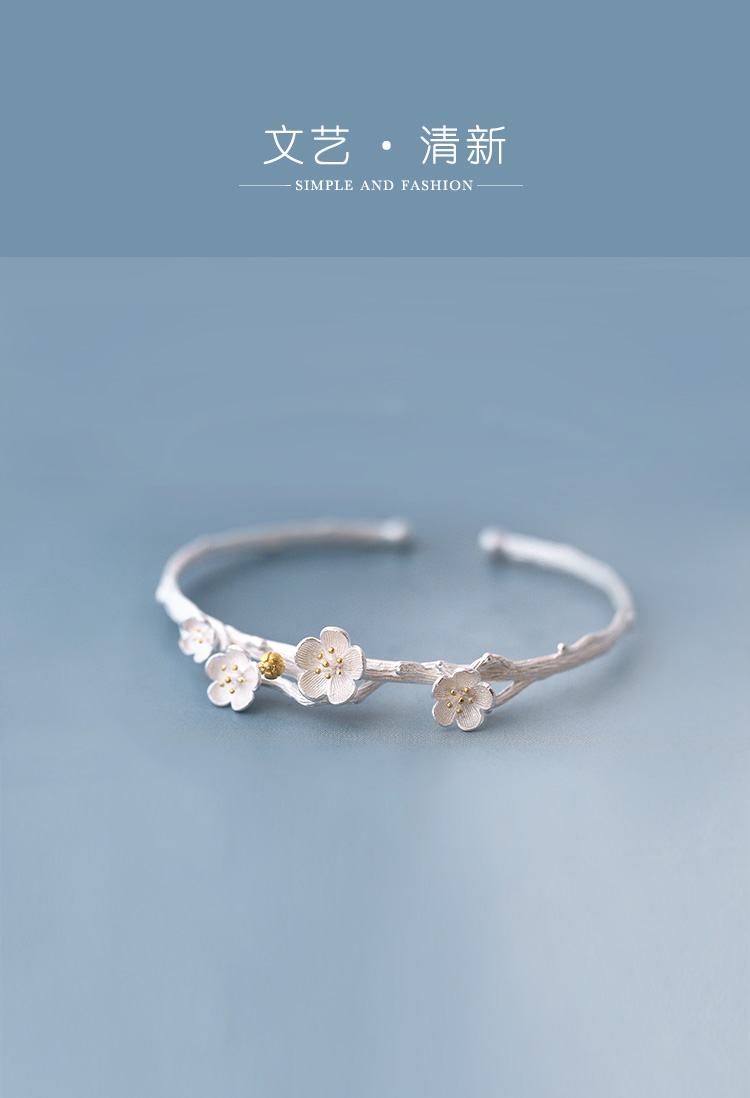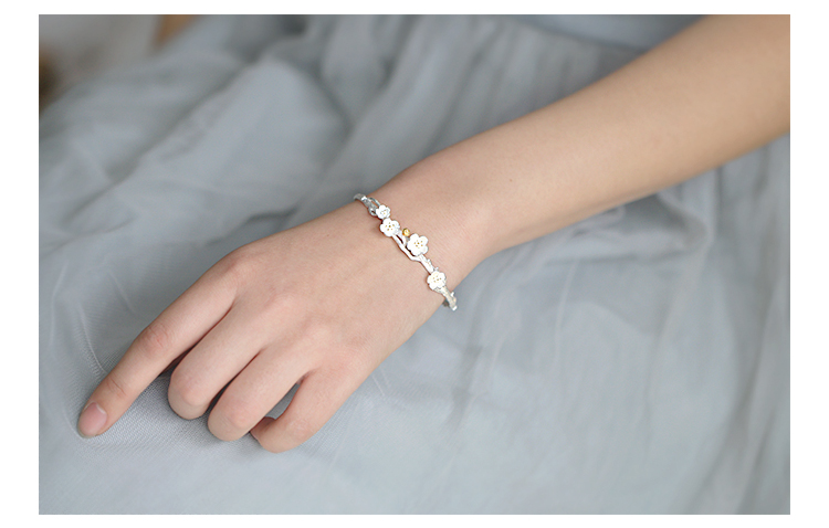 s925素銀,采用了拉絲紋理工藝。 每一朵花都是手工師傅親手打磨出來的哦,花蕊也做的很生動。 因為是國際標準s925素銀,未加任何的電鍍層,所以鐲子較電鍍過的其他款質地會軟一些哦。 戴上它,顏值擔當的與春天來一場邂逅吧。