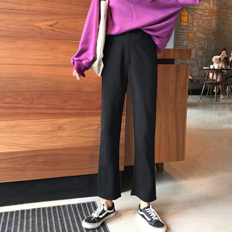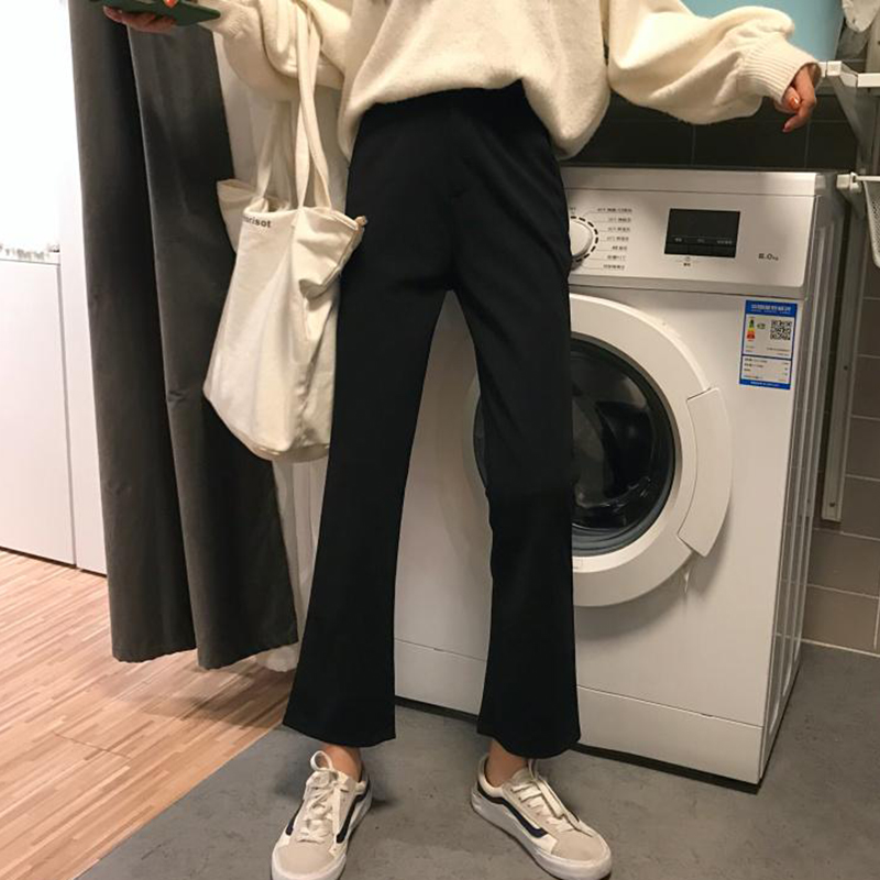 褲子女春秋2019新款韓版高腰顯瘦黑色微喇褲學生百搭九分休閑褲1入