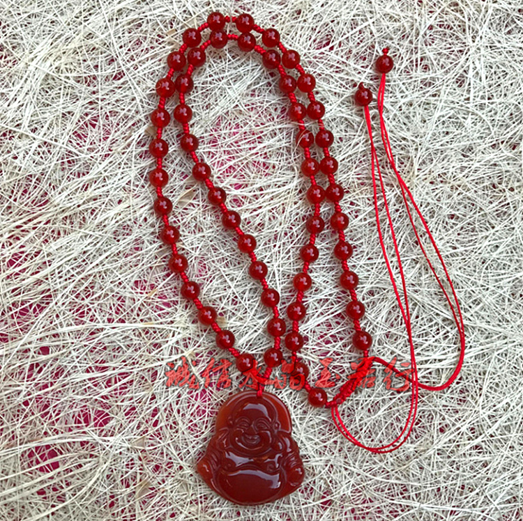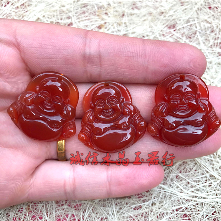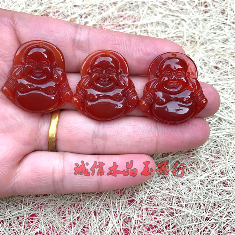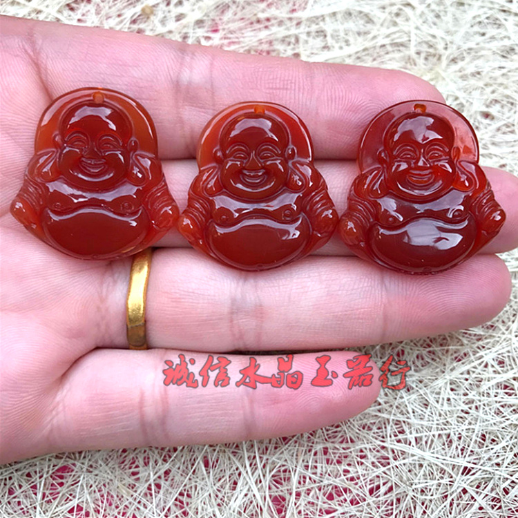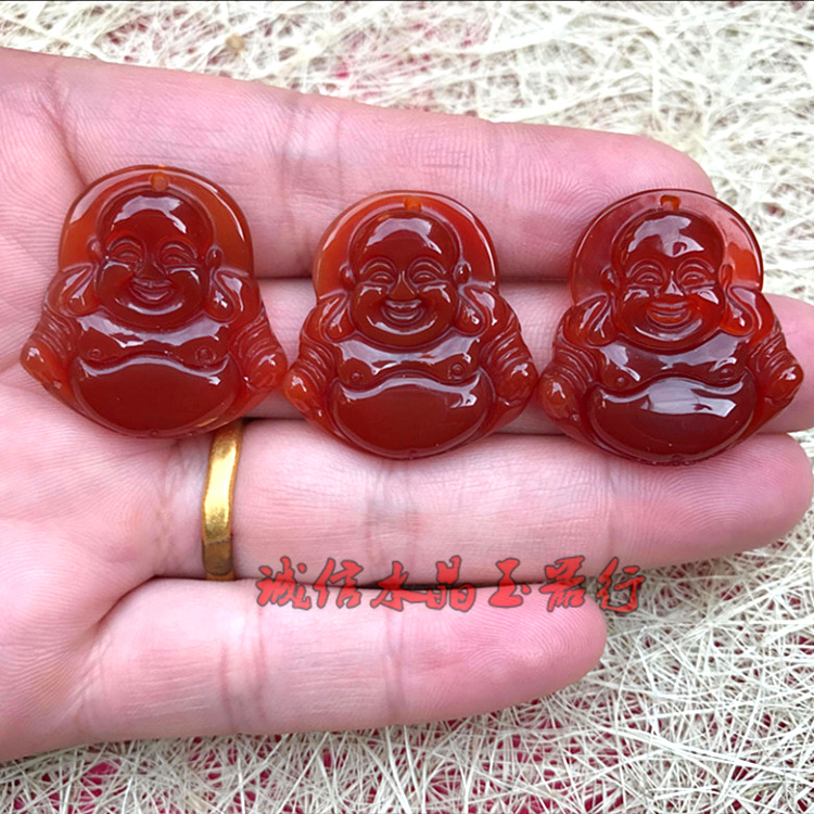 [2]天然紅瑪瑙彌勒佛吊墜玉髓笑佛掛墜掛件玉佛項鏈男士女款飾品1入
