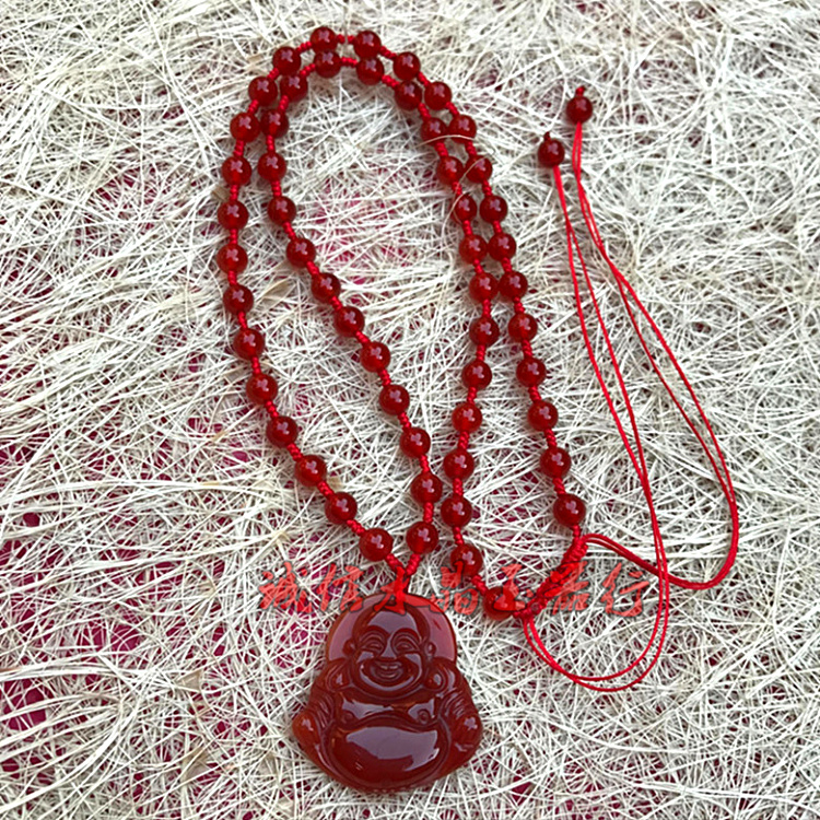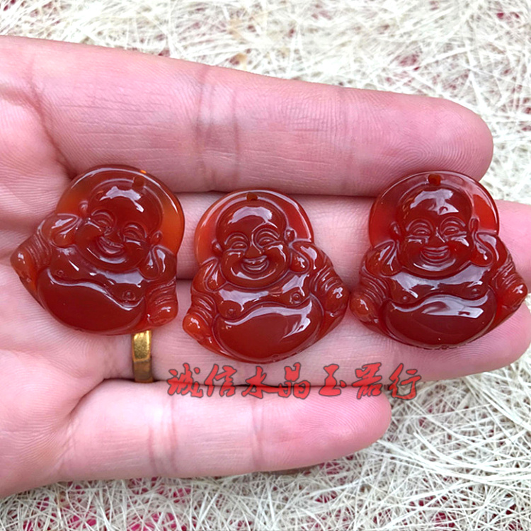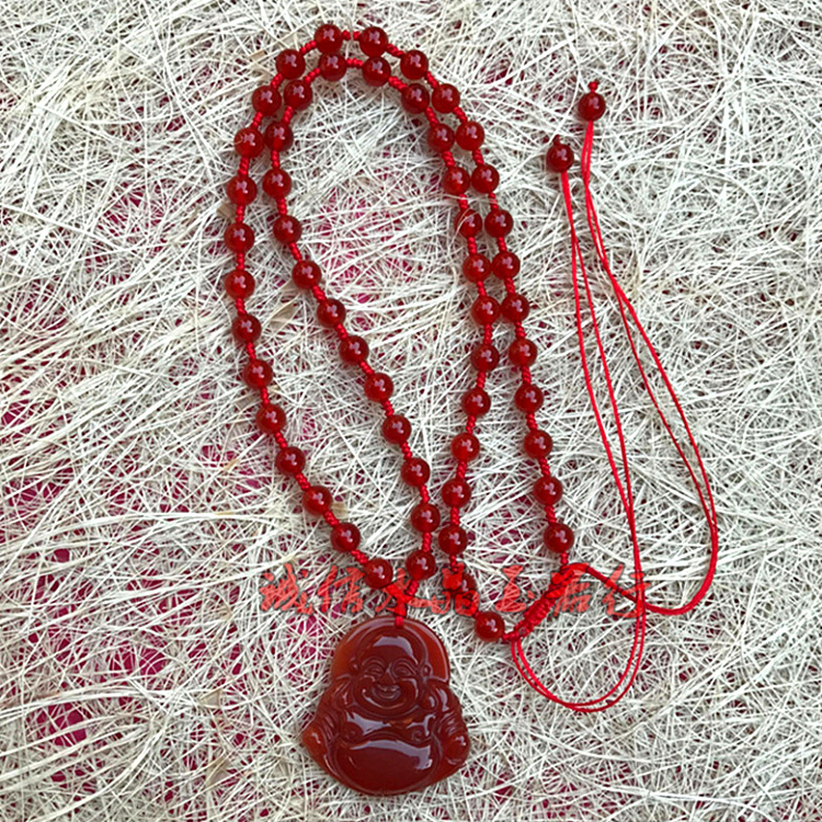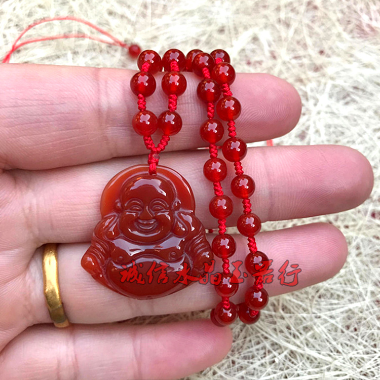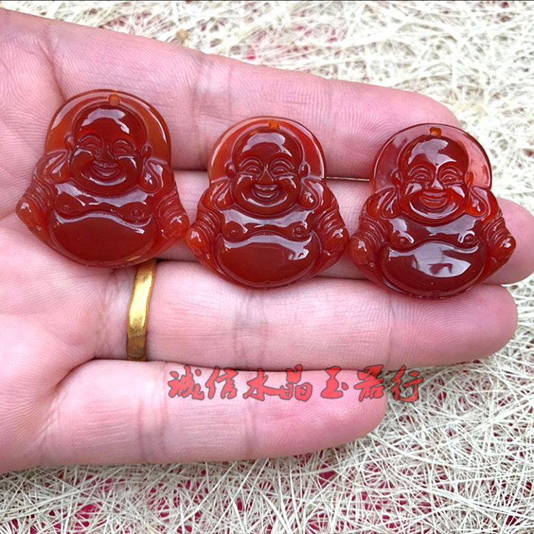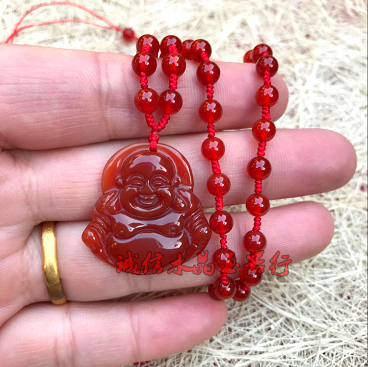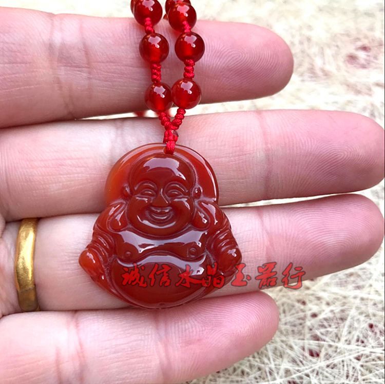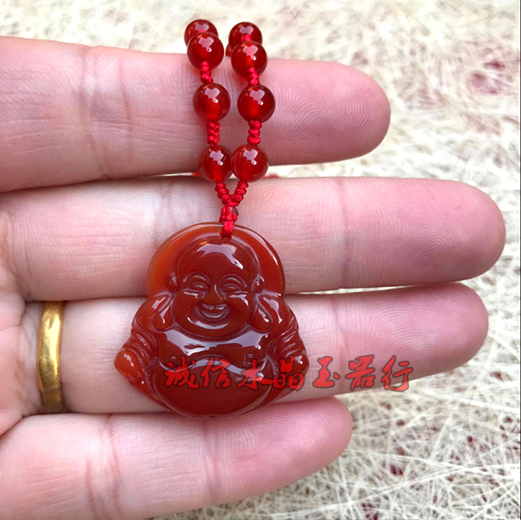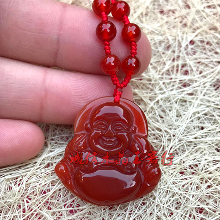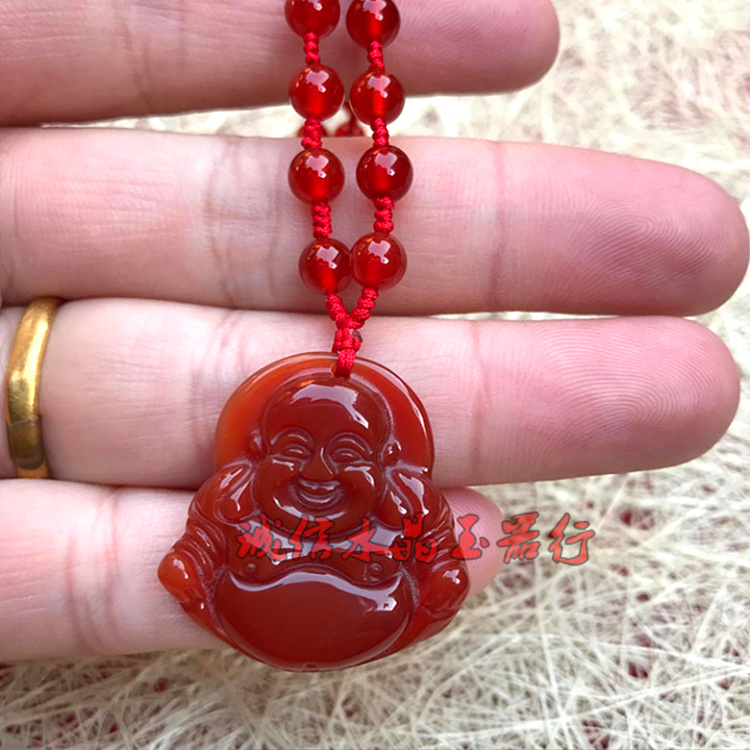 天然紅瑪瑙彌勒佛吊墜玉髓笑佛掛墜掛件玉佛項鏈男士女款飾品1入