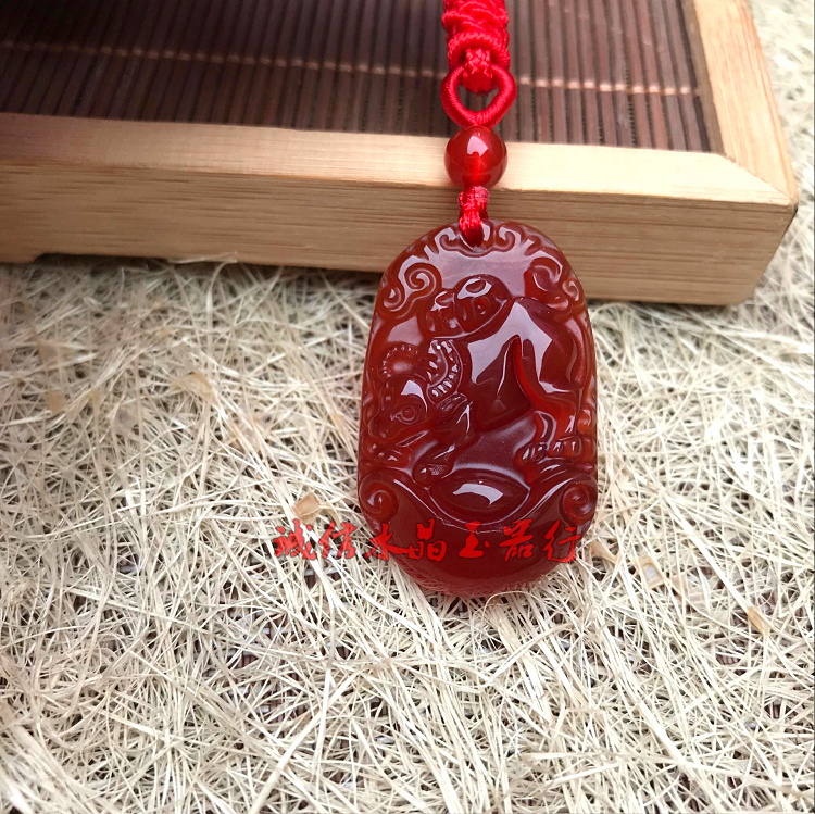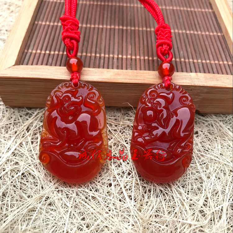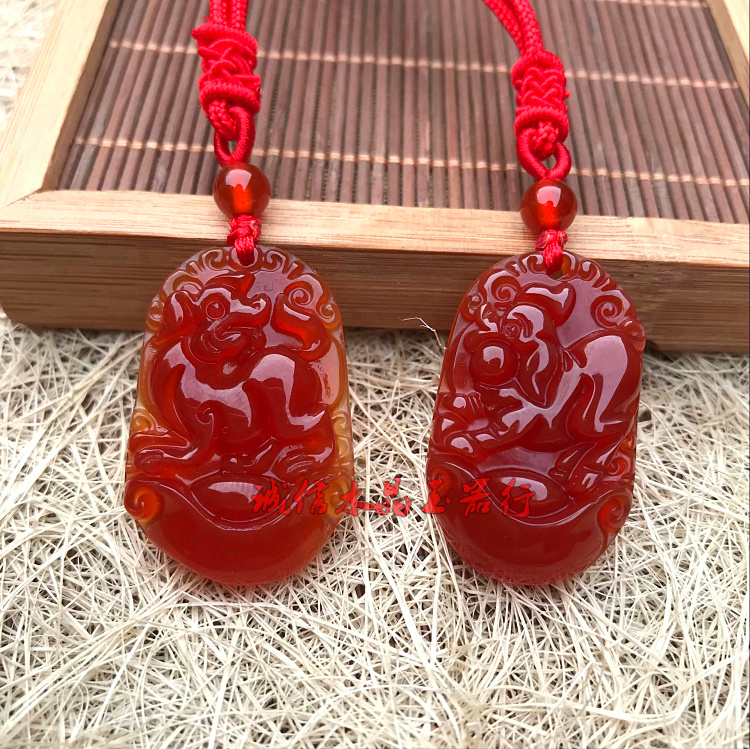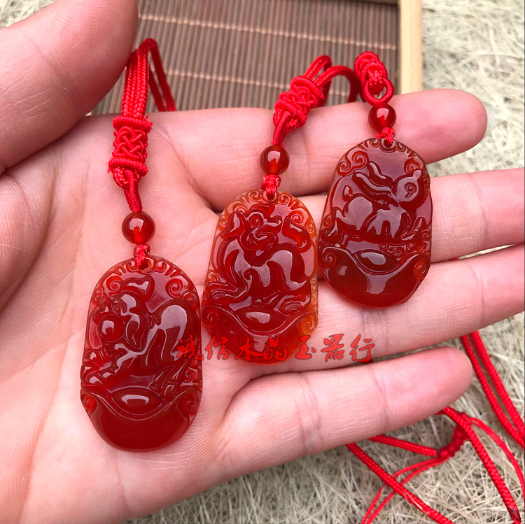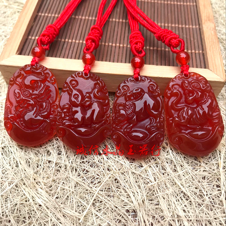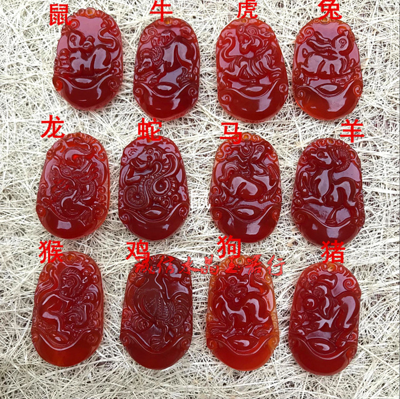 天然紅瑪瑙十二生肖吊墜鼠牛虎兔龍蛇馬羊猴雞狗豬玉佩掛件男女款1入