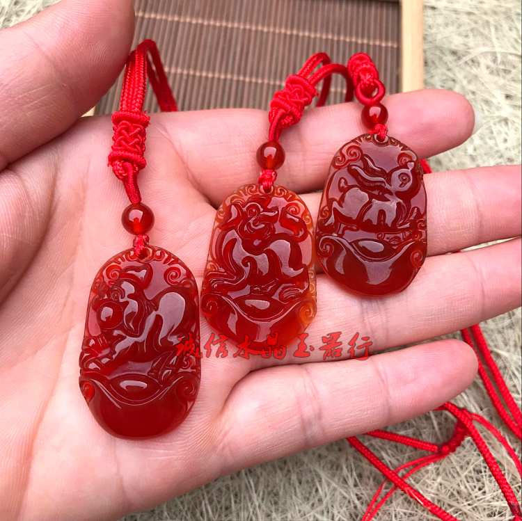[3]天然紅瑪瑙十二生肖吊墜鼠牛虎兔龍蛇馬羊猴雞狗豬玉佩掛件男女款1入