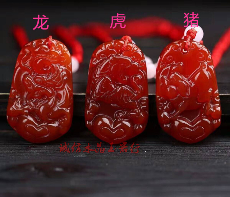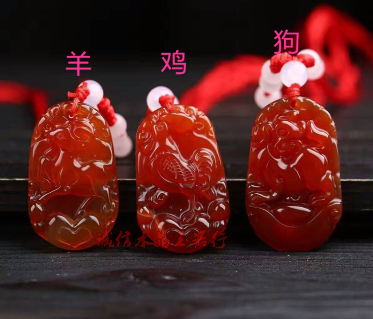 天然紅瑪瑙十二生肖吊墜鼠牛虎兔龍蛇馬羊猴雞狗豬玉佩掛件男女款1入