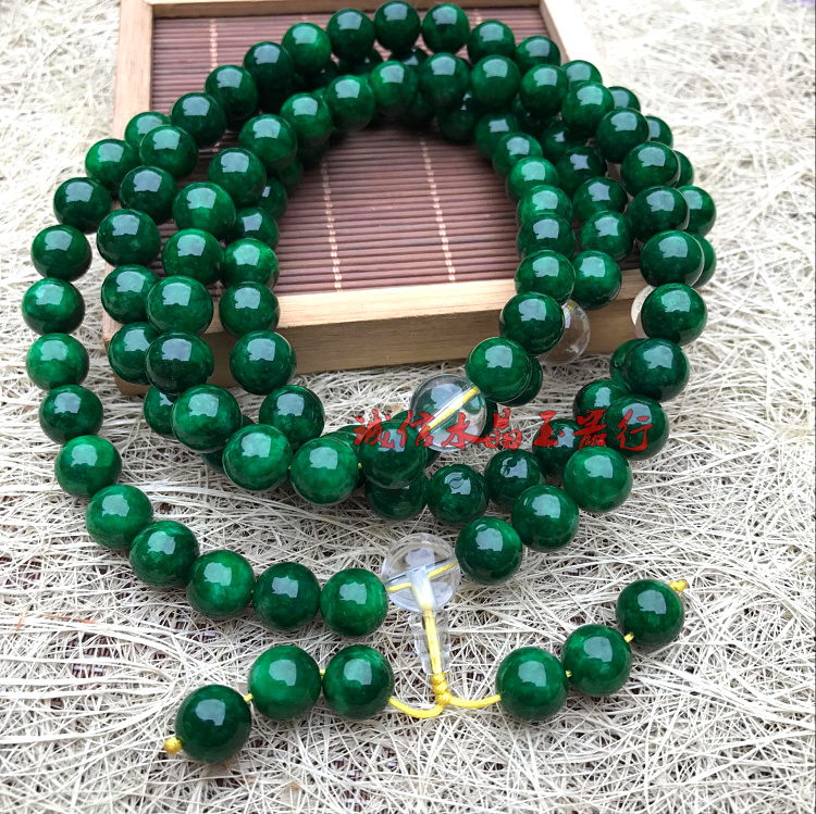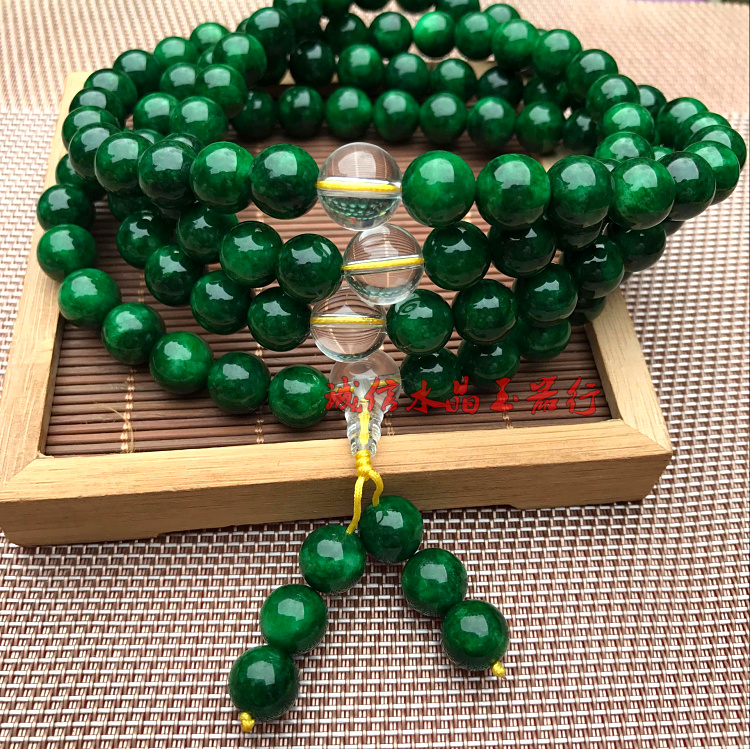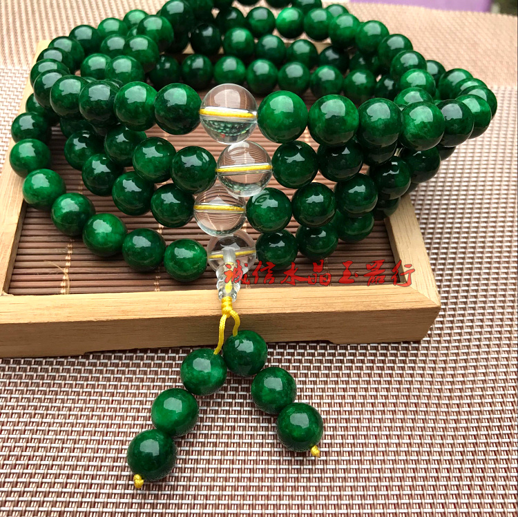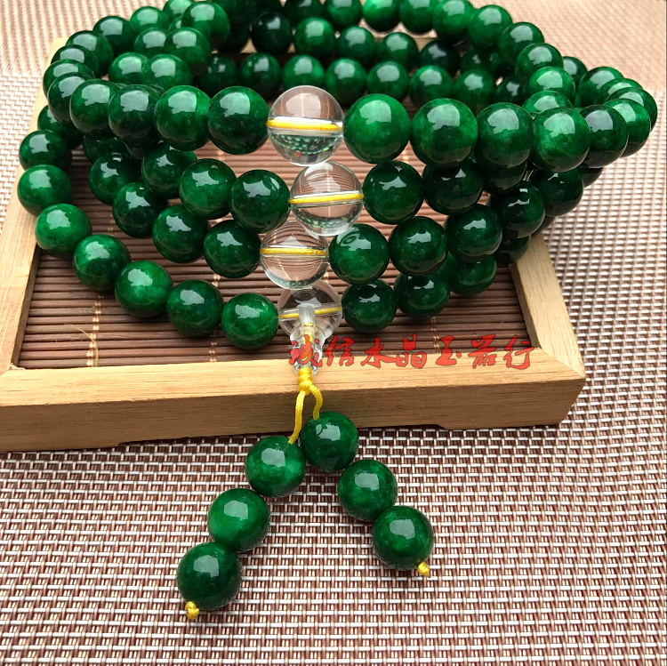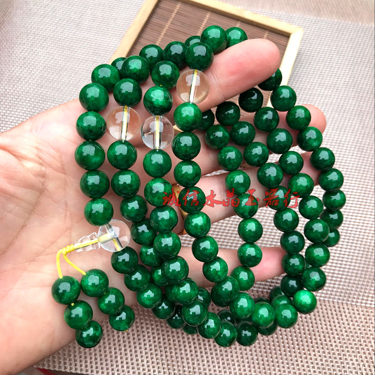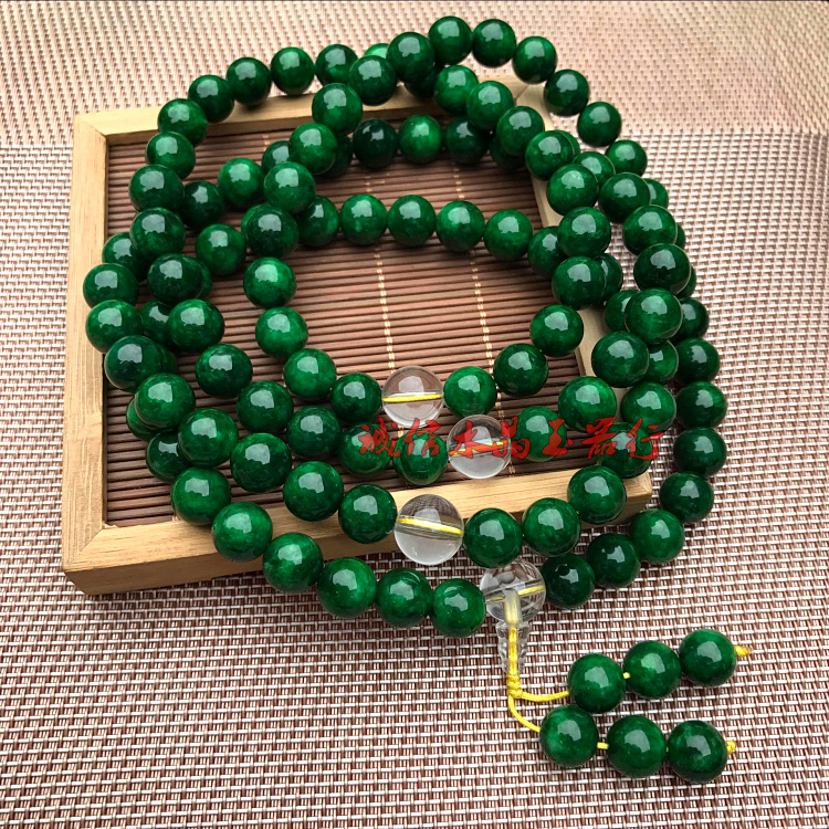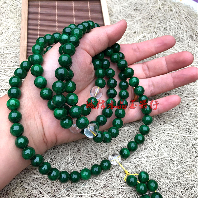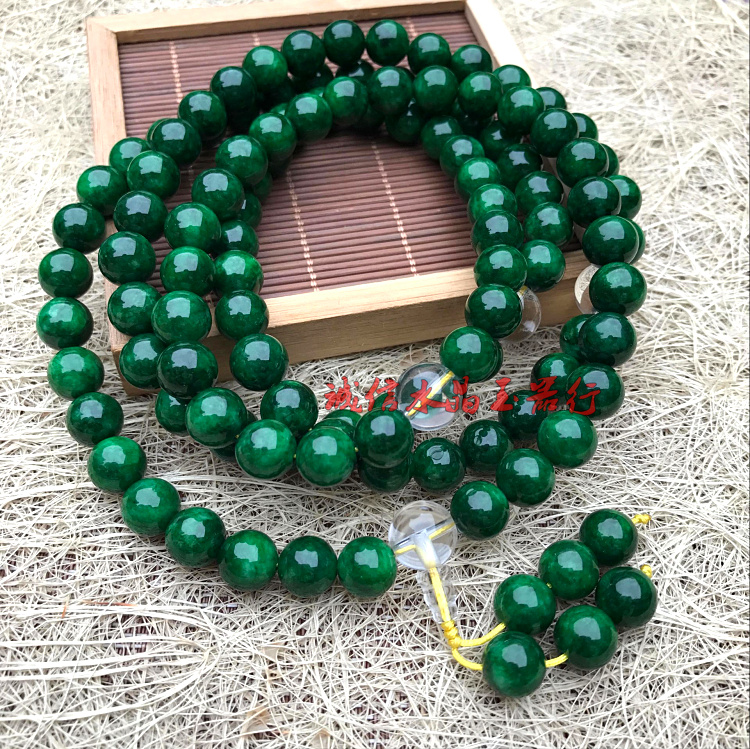 天然緬甸翡翠祖母綠干青鐵龍生手鏈108顆佛珠手鏈項鏈男女款1入