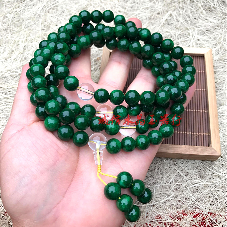 [4]天然緬甸翡翠祖母綠干青鐵龍生手鏈108顆佛珠手鏈項鏈男女款1入