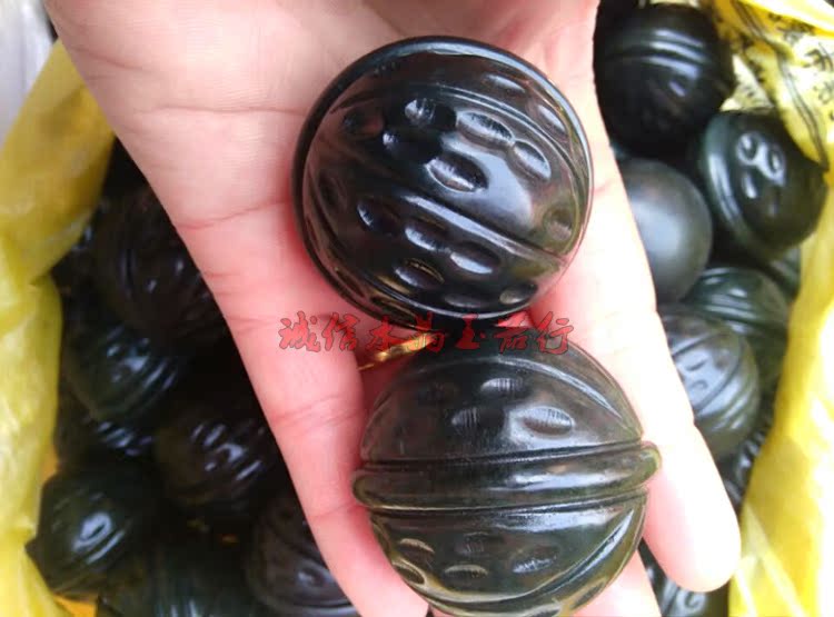 天然和田玉手把件青玉核桃男士玉器擺件玉石把玩件1入