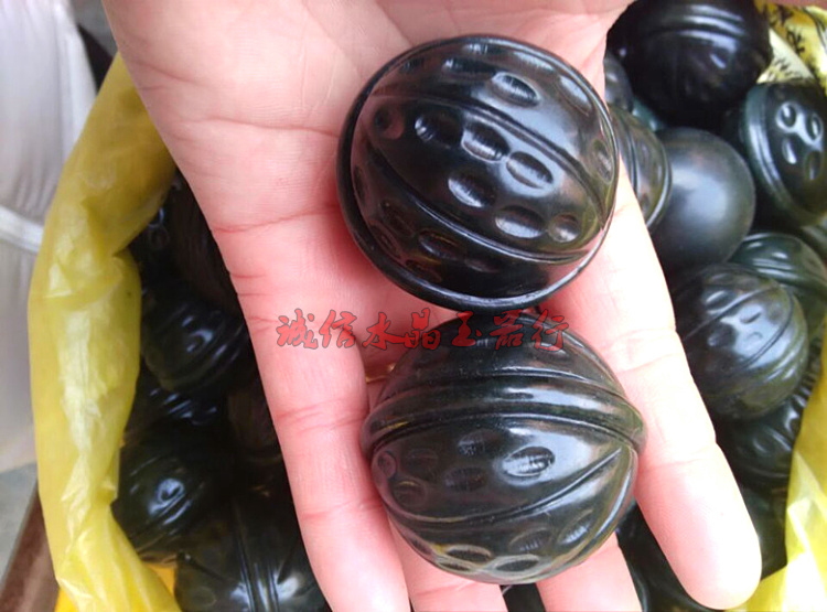 [2]天然和田玉手把件青玉核桃男士玉器擺件玉石把玩件1入