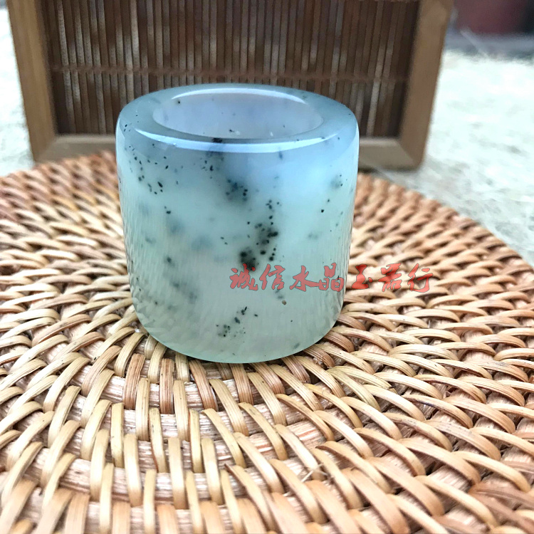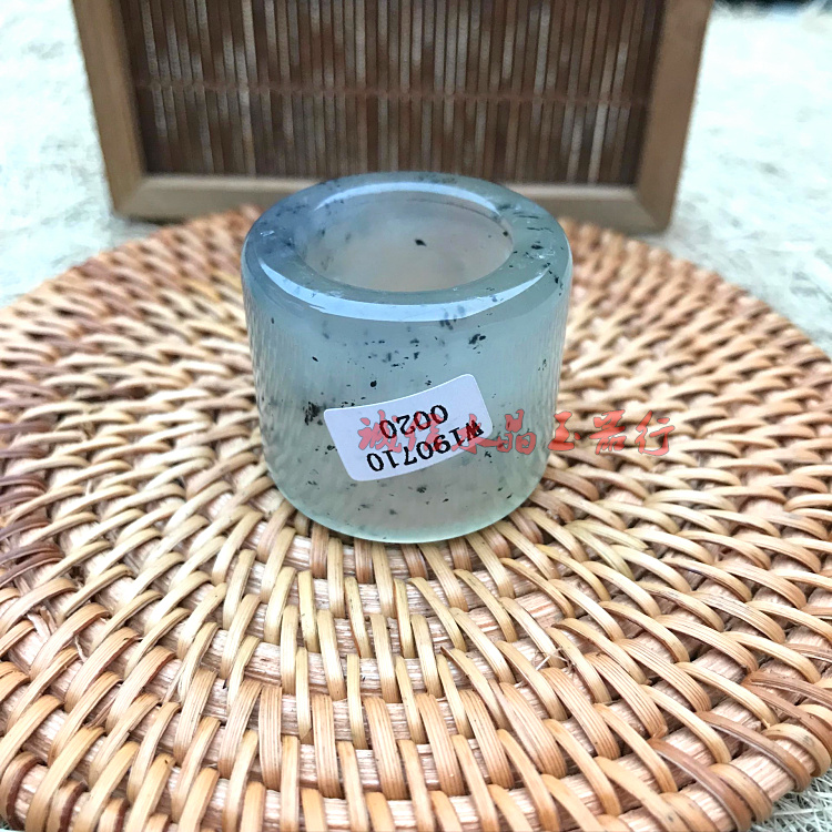 [2]天然冰種岫玉扳指通透岫玉戒指翡翠色玉指環男女款 附國檢證書1入