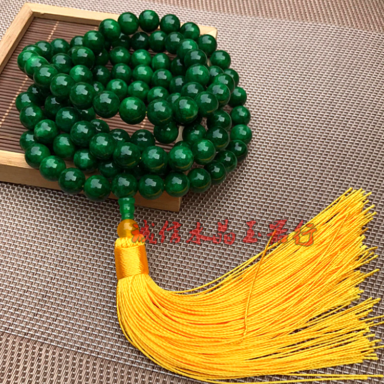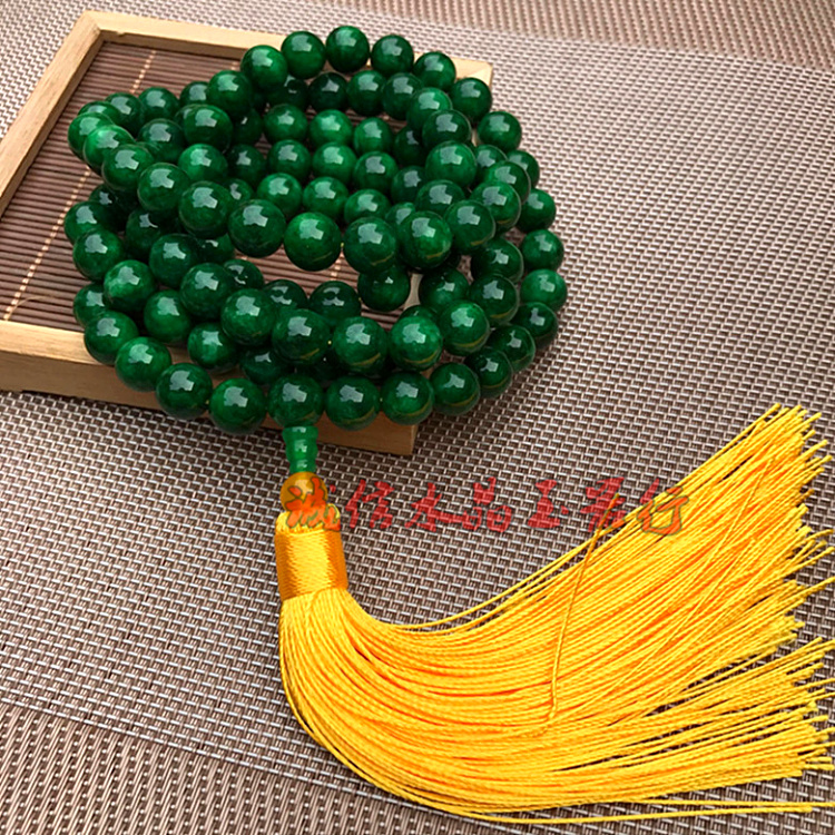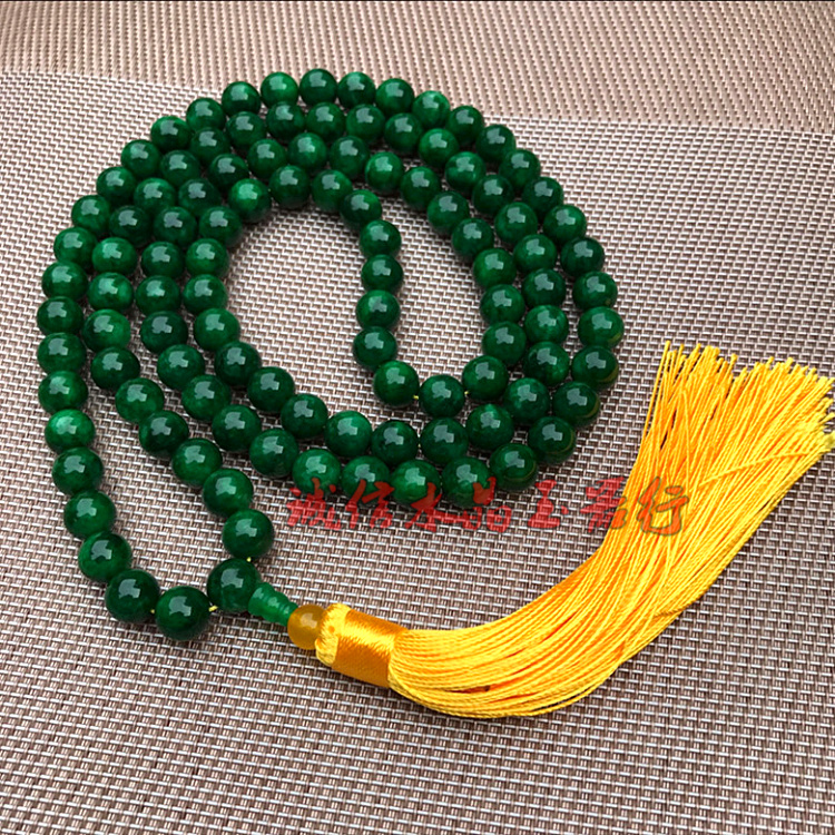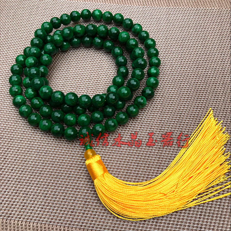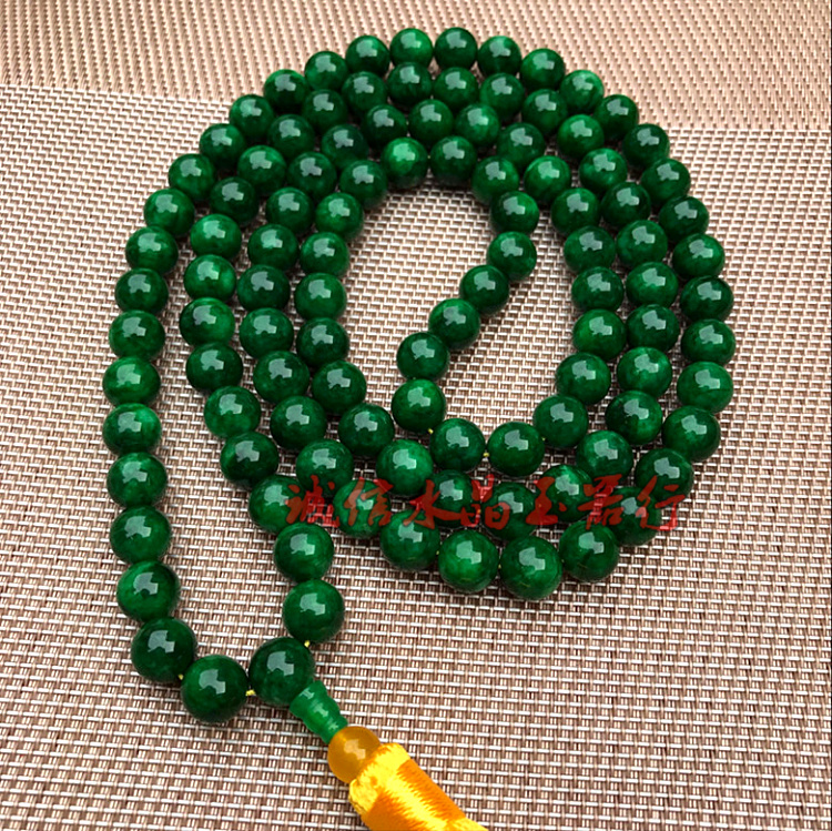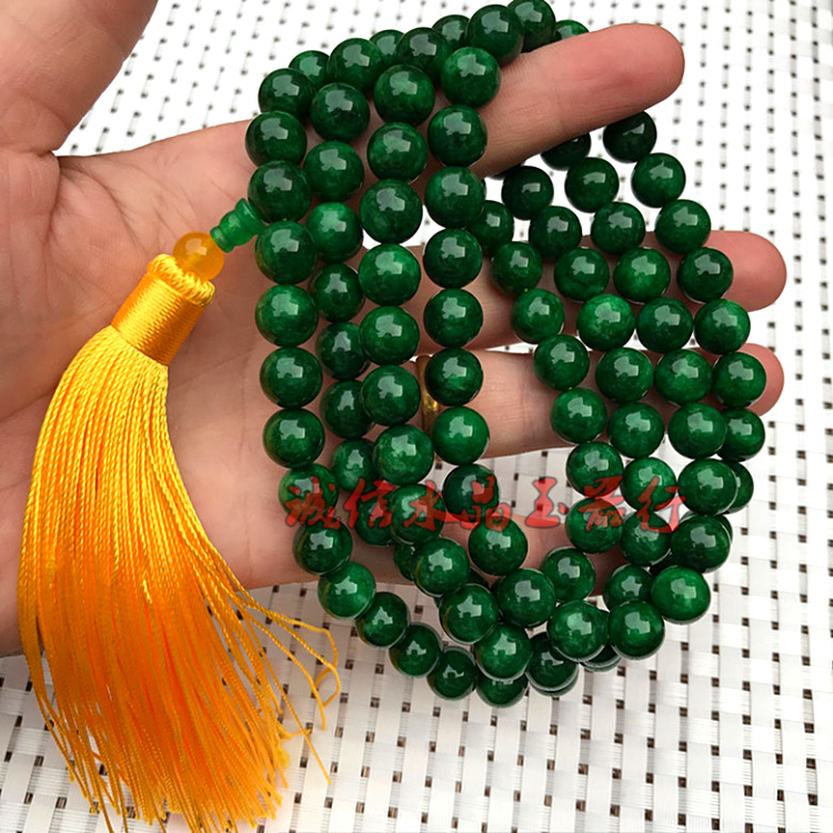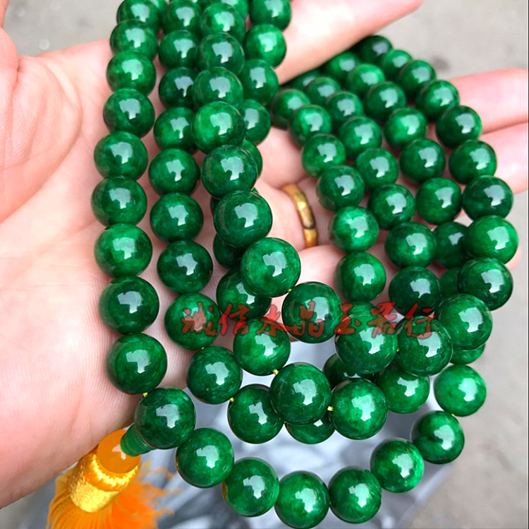 天然緬甸翡翠祖母綠干青鐵龍生手鏈108顆佛珠手鏈項鏈男女款1入