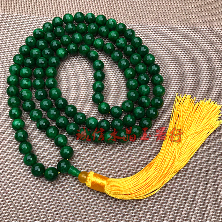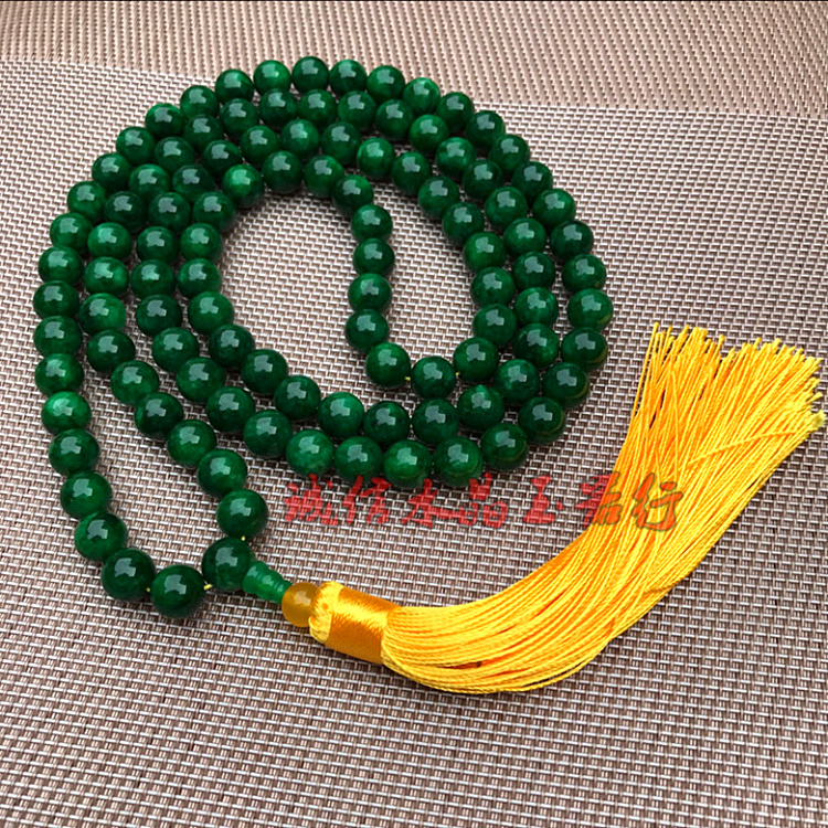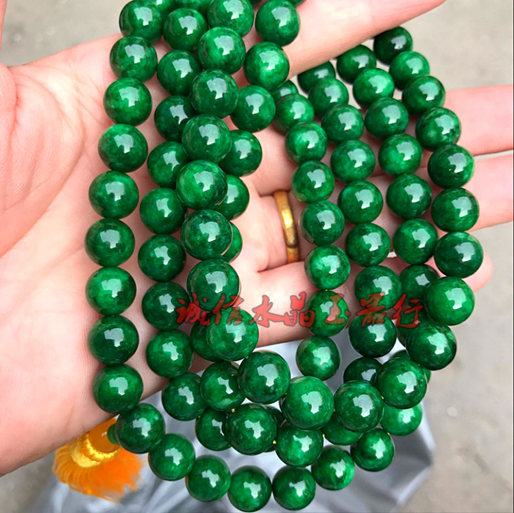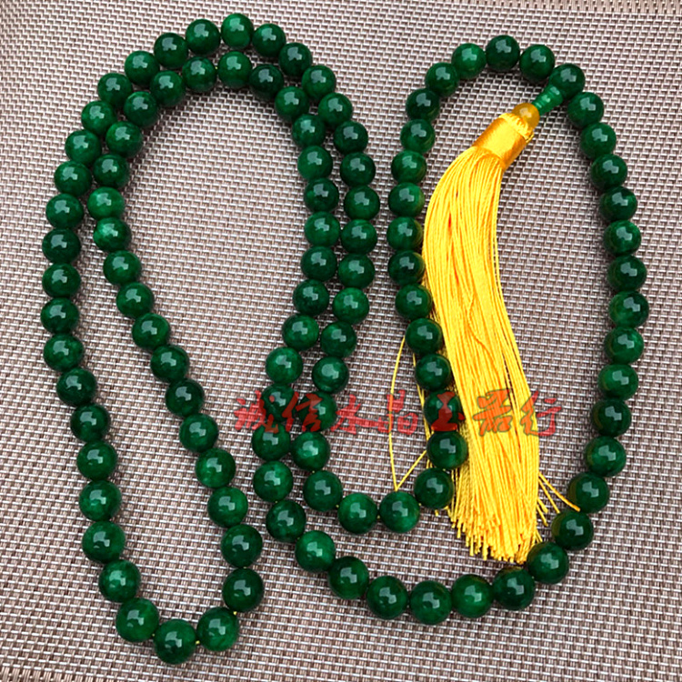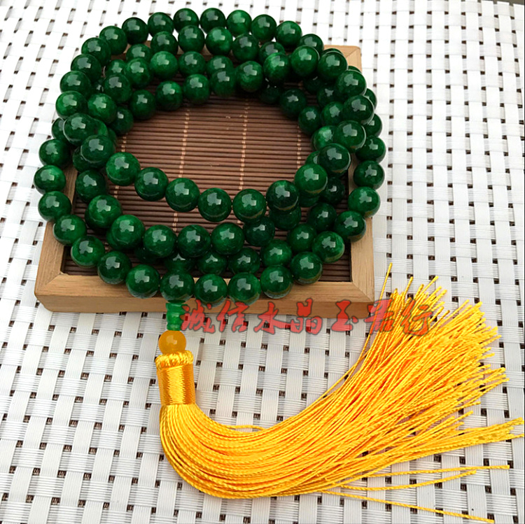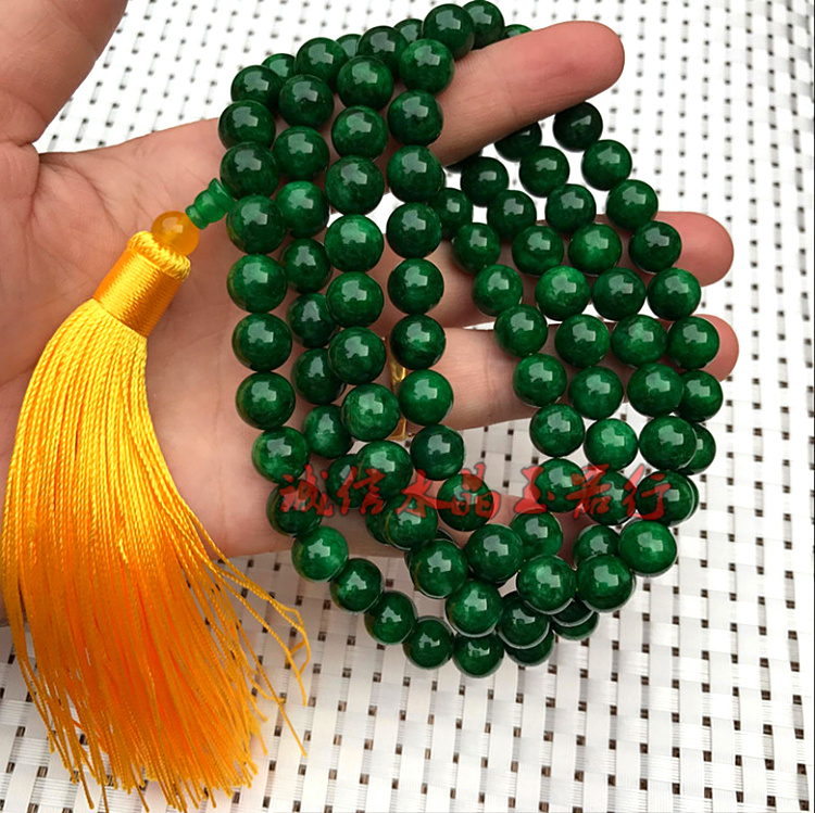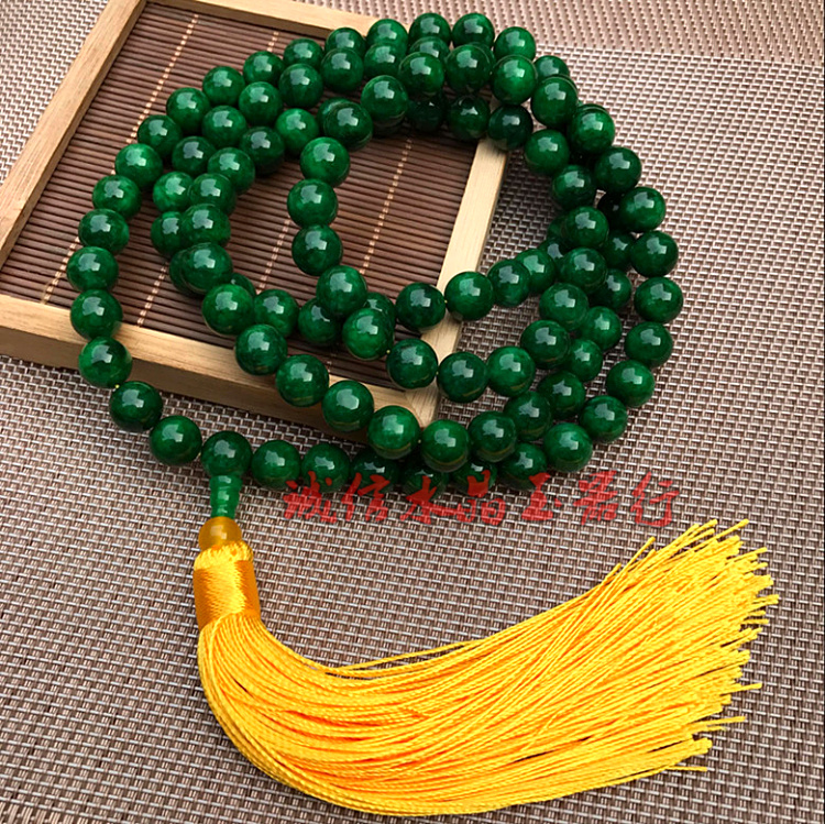 天然緬甸翡翠祖母綠干青鐵龍生手鏈108顆佛珠手鏈項鏈男女款1入