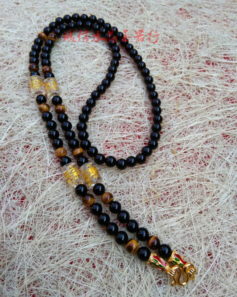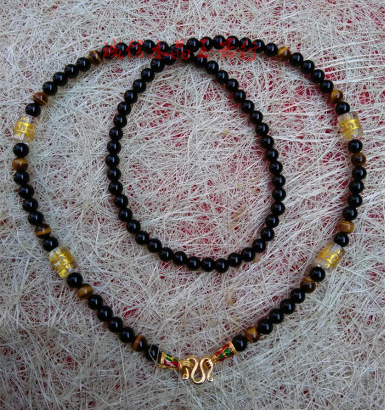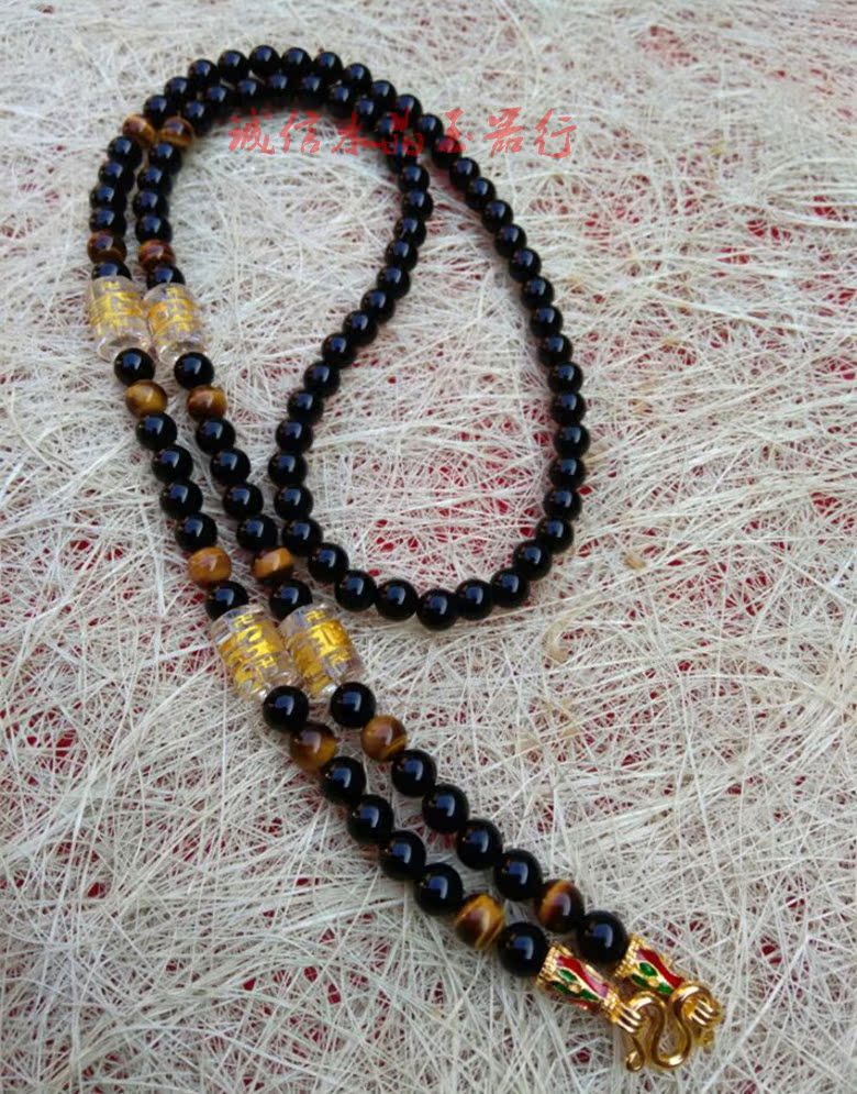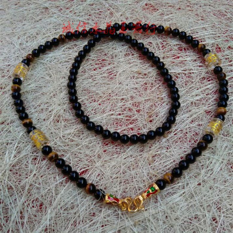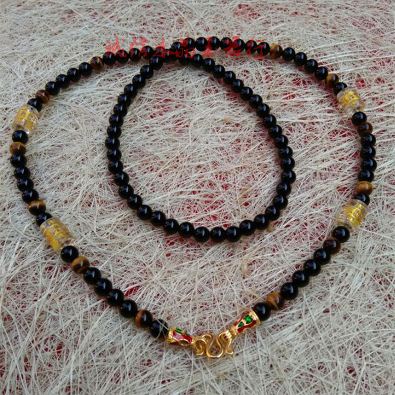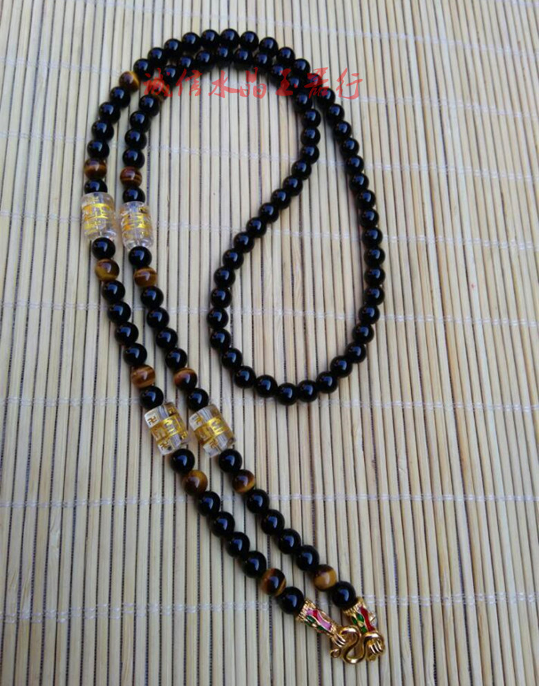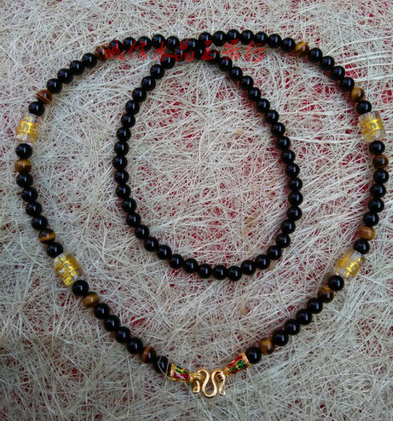 辟邪黑瑪瑙六字真言泰國佛牌佛珠鏈掛鏈項鏈毛衣鏈男女款水晶寶石1入
