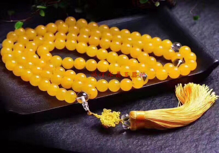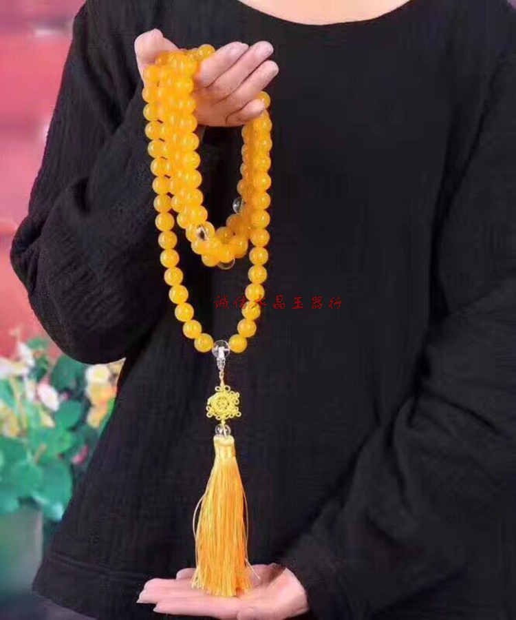 天然水晶黃玉髓108顆佛珠念珠配白水晶流蘇 佛珠念珠手鏈1入