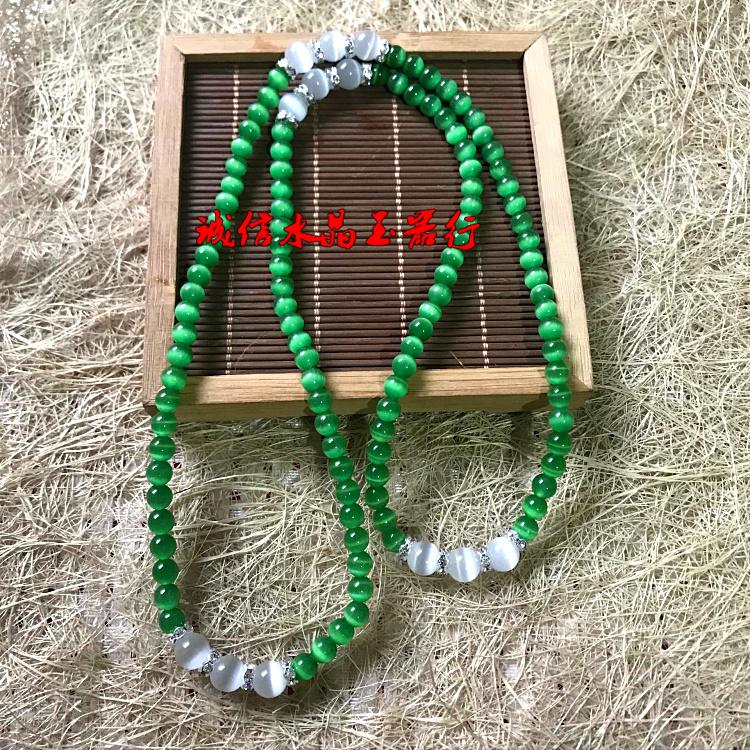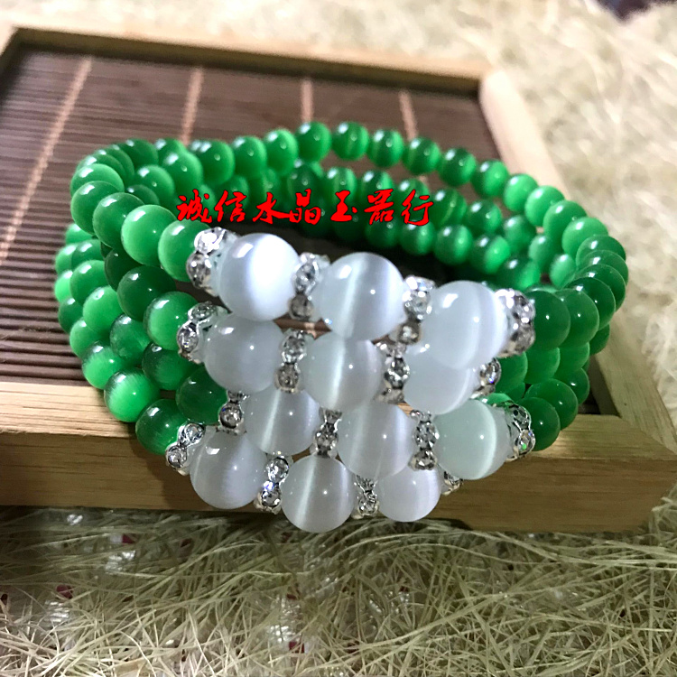 綠色貓眼石手鏈女串珠韓版多層水晶甜美學生手串藏銀手飾生日禮物1入