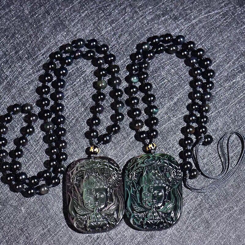 開光天然彩虹眼黑曜石一念之間吊墜招財辟邪男女款轉運水晶項鏈1入