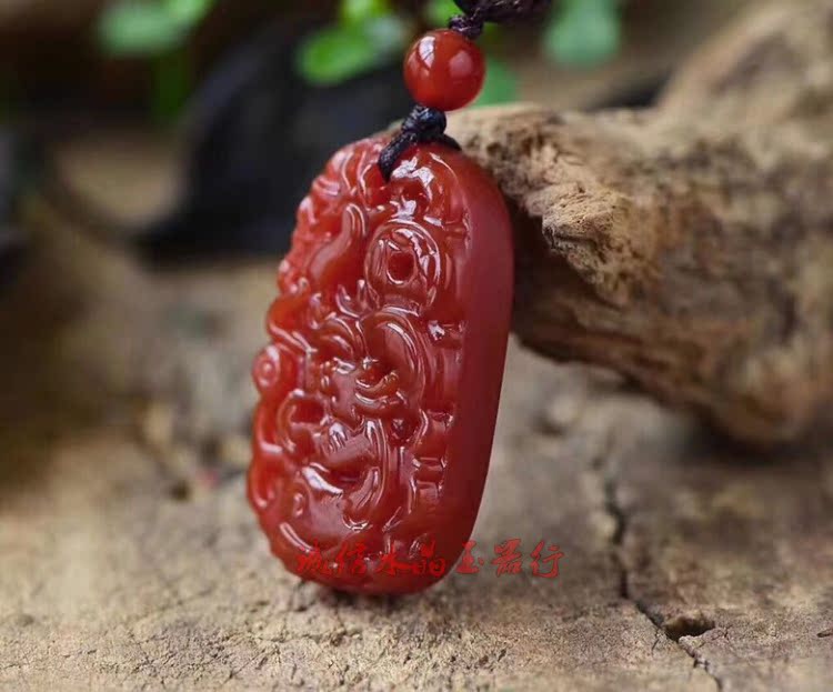 天然紅瑪瑙紅玉髓龍牌吊墜1入
