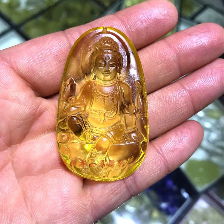 黃水晶南海觀音吊墜觀世音菩薩生肖本命佛項鏈男女款1入