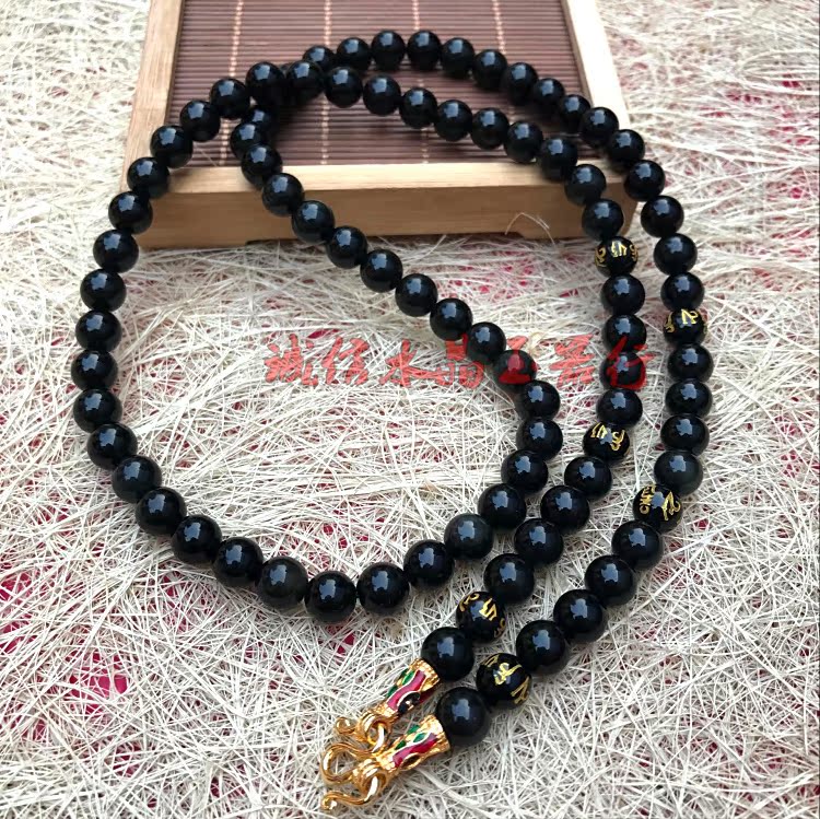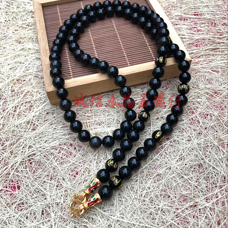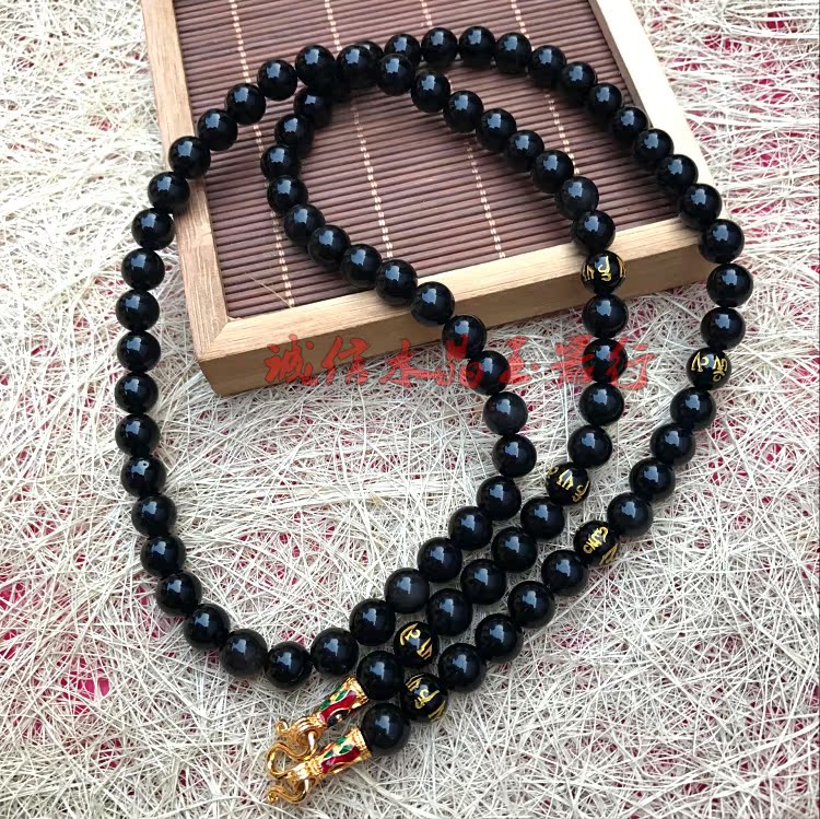 霸氣辟邪 天然 黑曜石大中小模泰國佛牌鏈項鏈掛鏈子 男女款1入