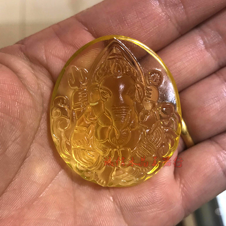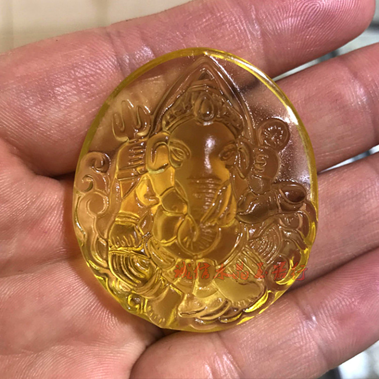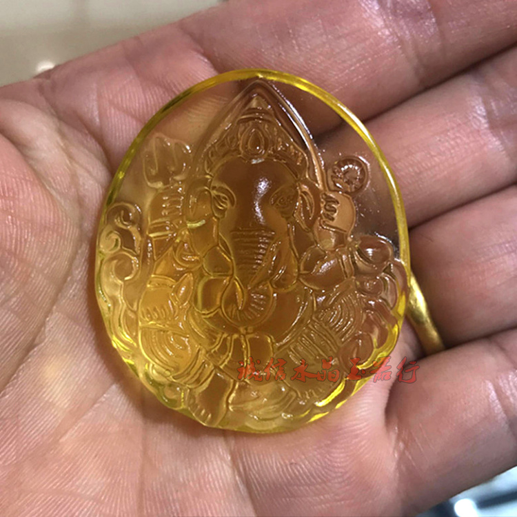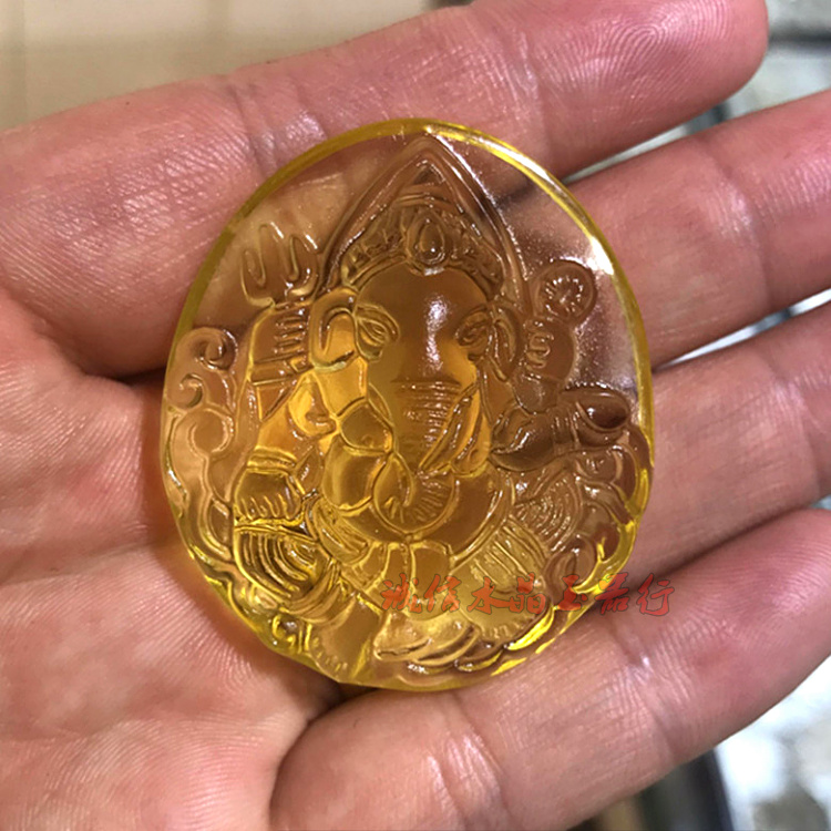 黃水晶象神吊墜象鼻財神項墜泰國象神佛牌男女款 招財項鏈掛墜1入