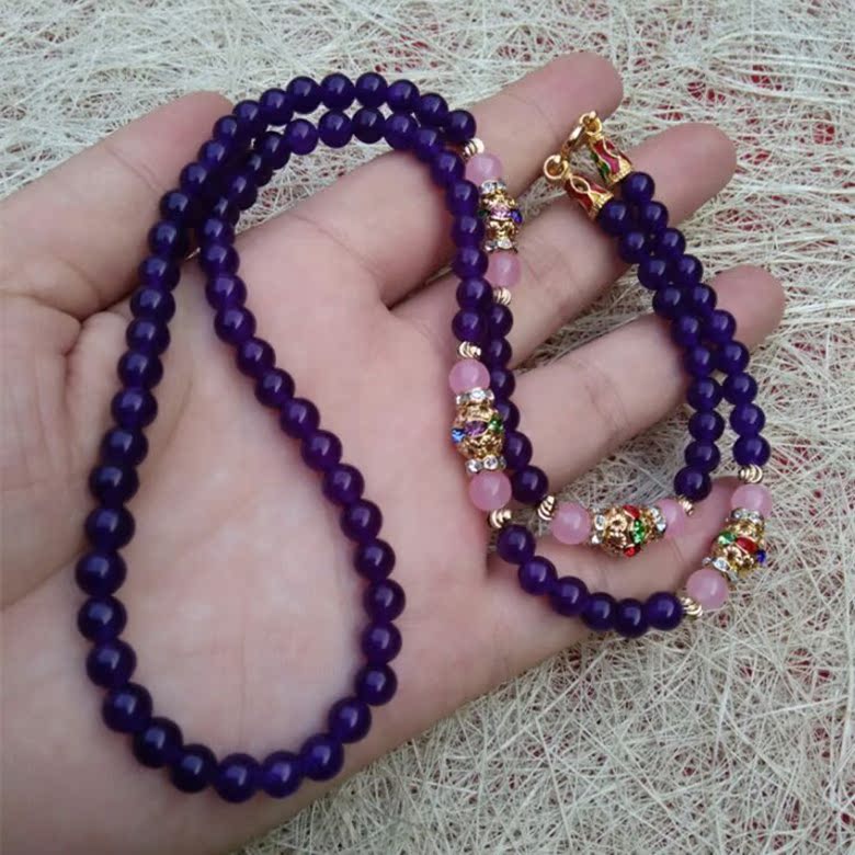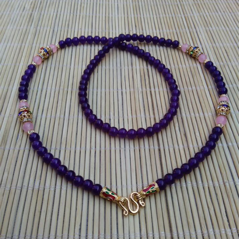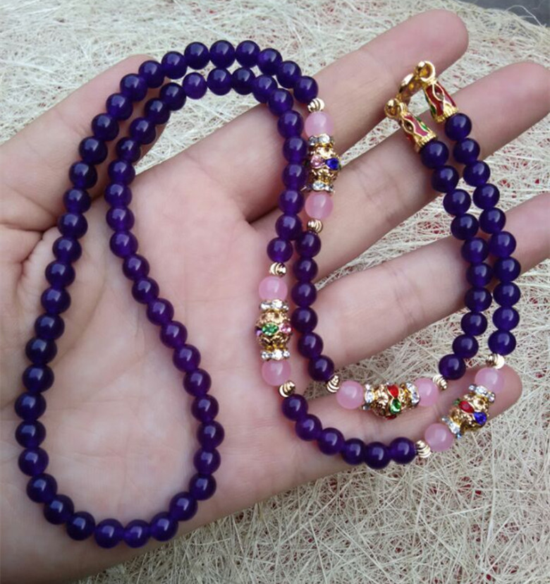 [2]紫玉髓圓珠水晶項鏈 泰國佛牌毛衣掛鏈 可訂做其他款式1入