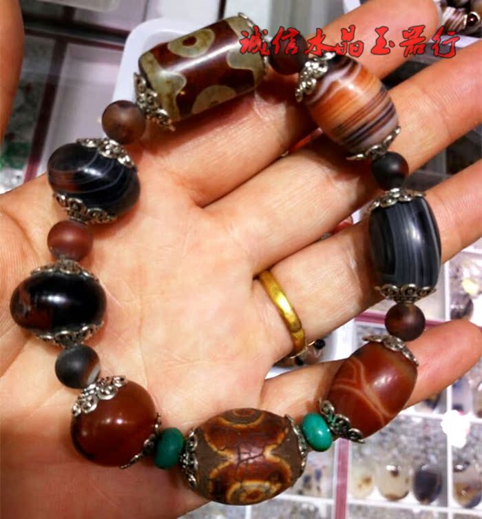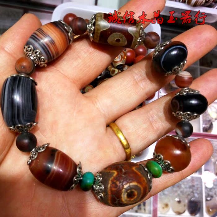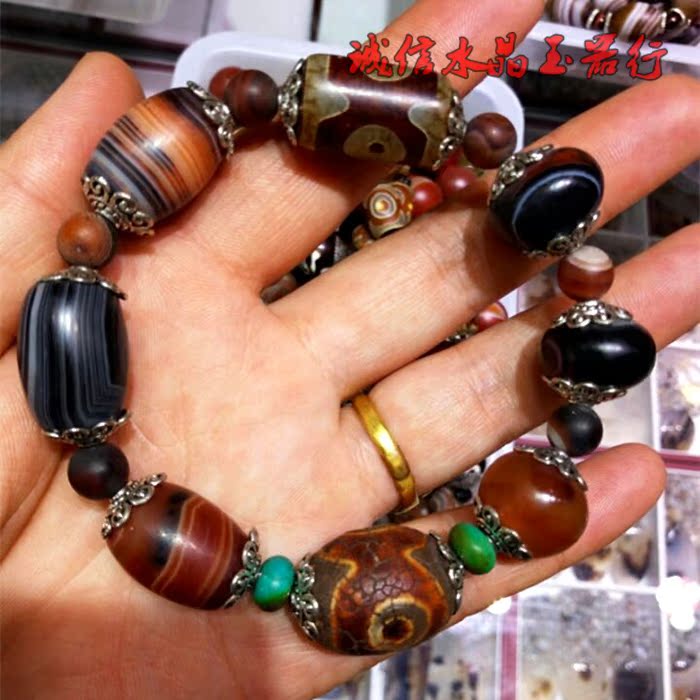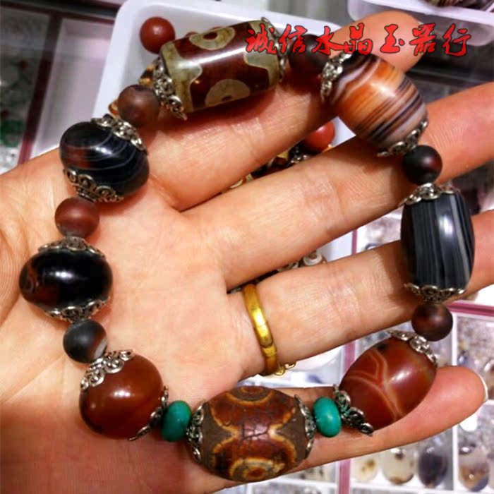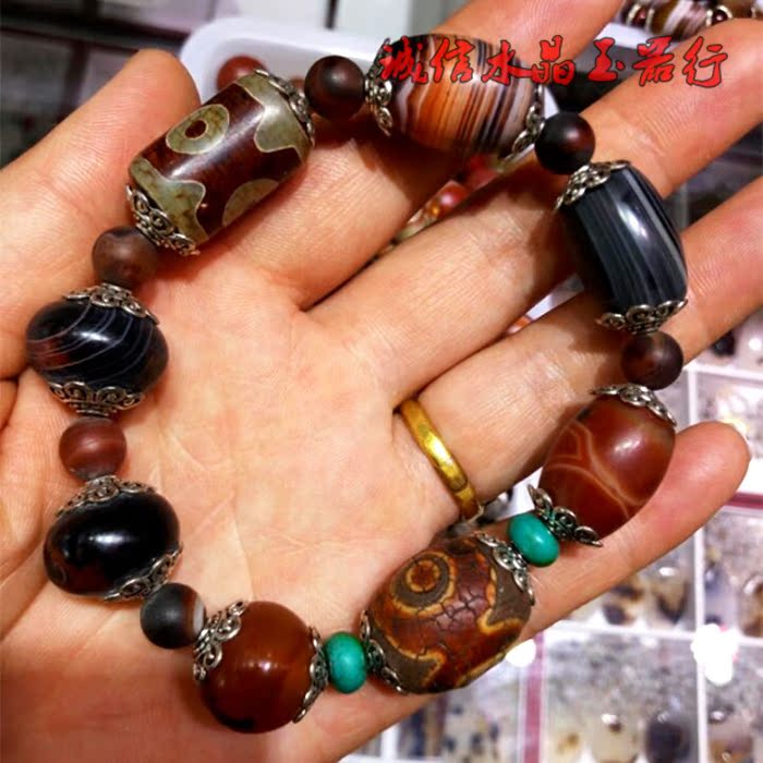 西藏老天珠手串纏絲三眼瑪瑙手鏈 手串1入