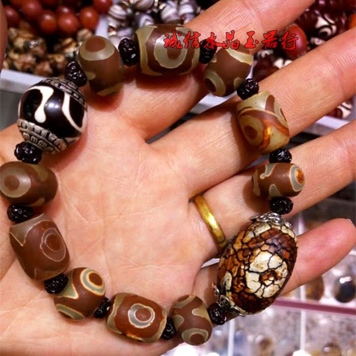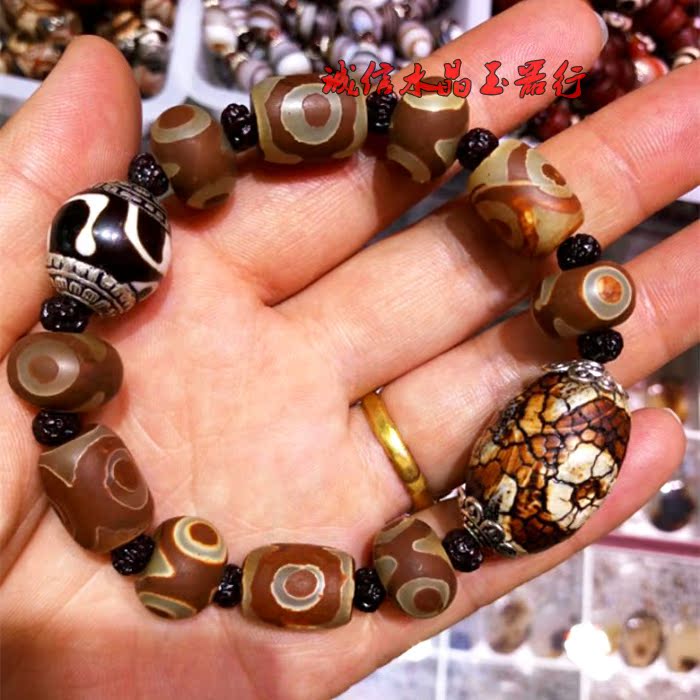 西藏老天珠手串九眼三眼原石手鏈男女款手串1入