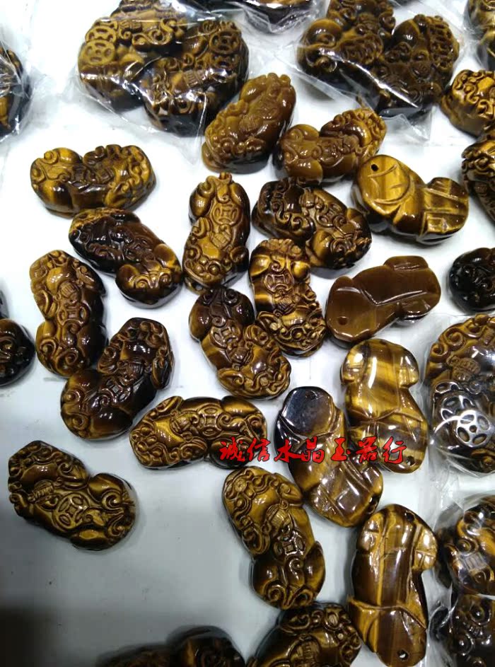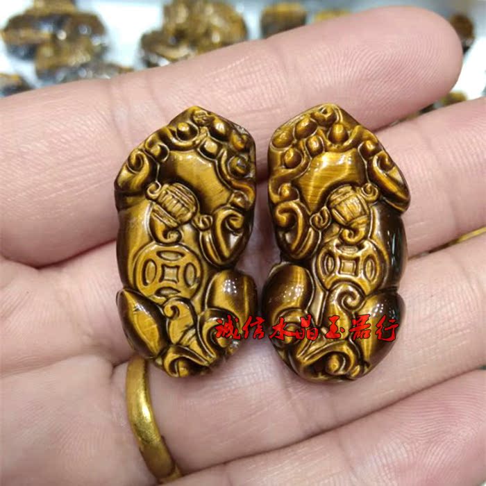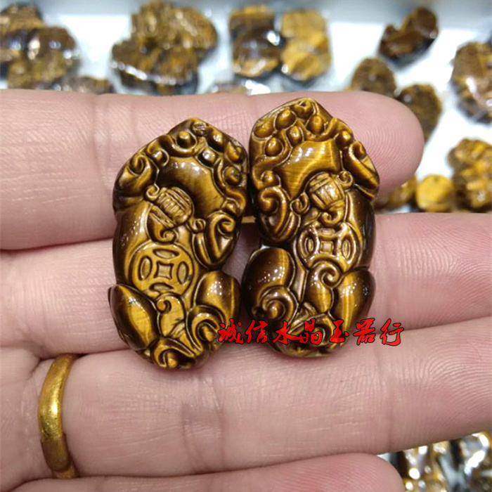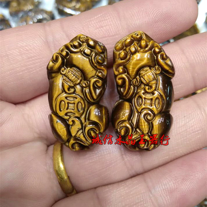 [2]天然虎眼石吊墜男女款虎睛石招財貔貅吊墜男士木變石項鏈招財1入