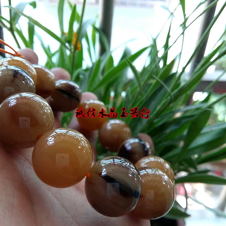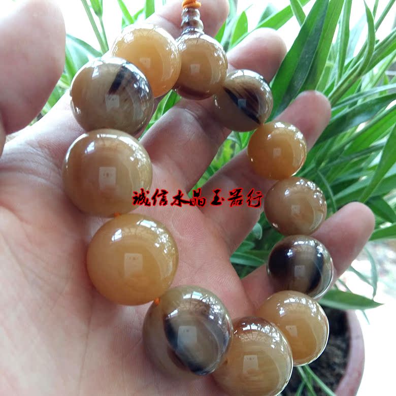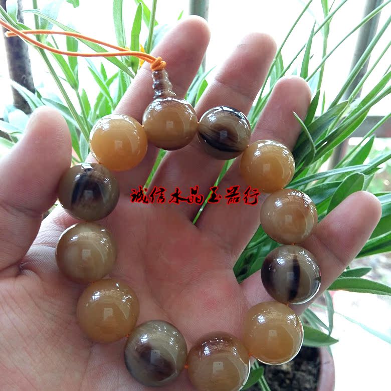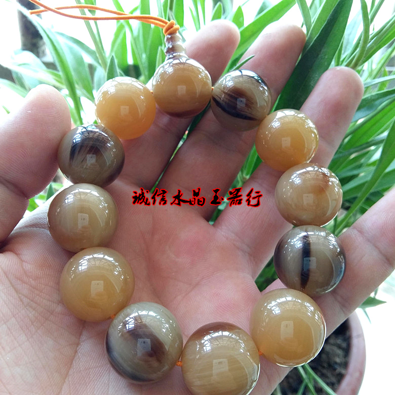 西藏天然金絲紅血絲?牛角手串男女佛珠文玩辟邪手鏈1入