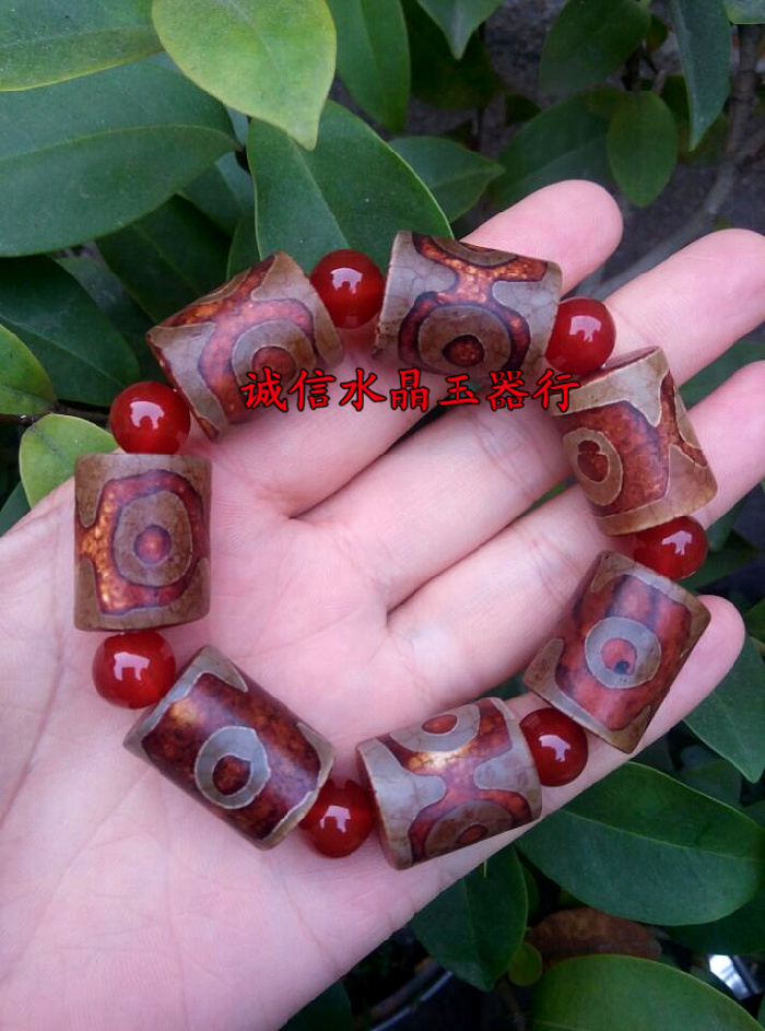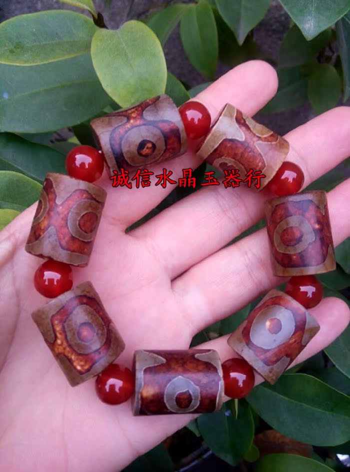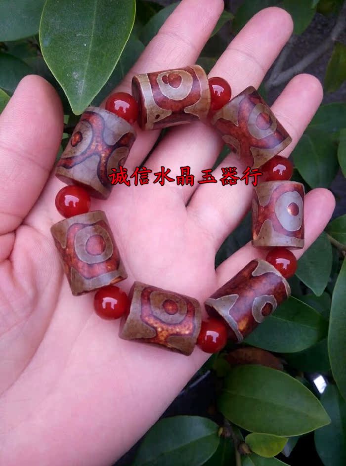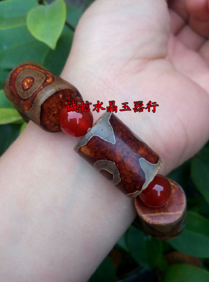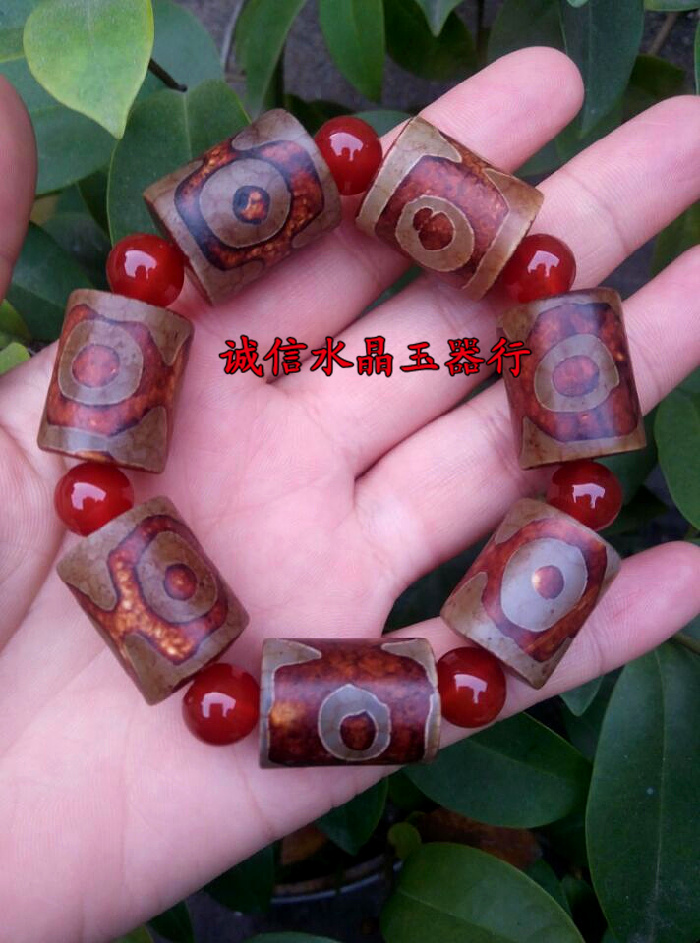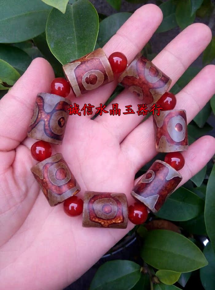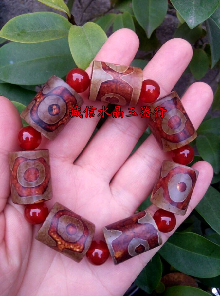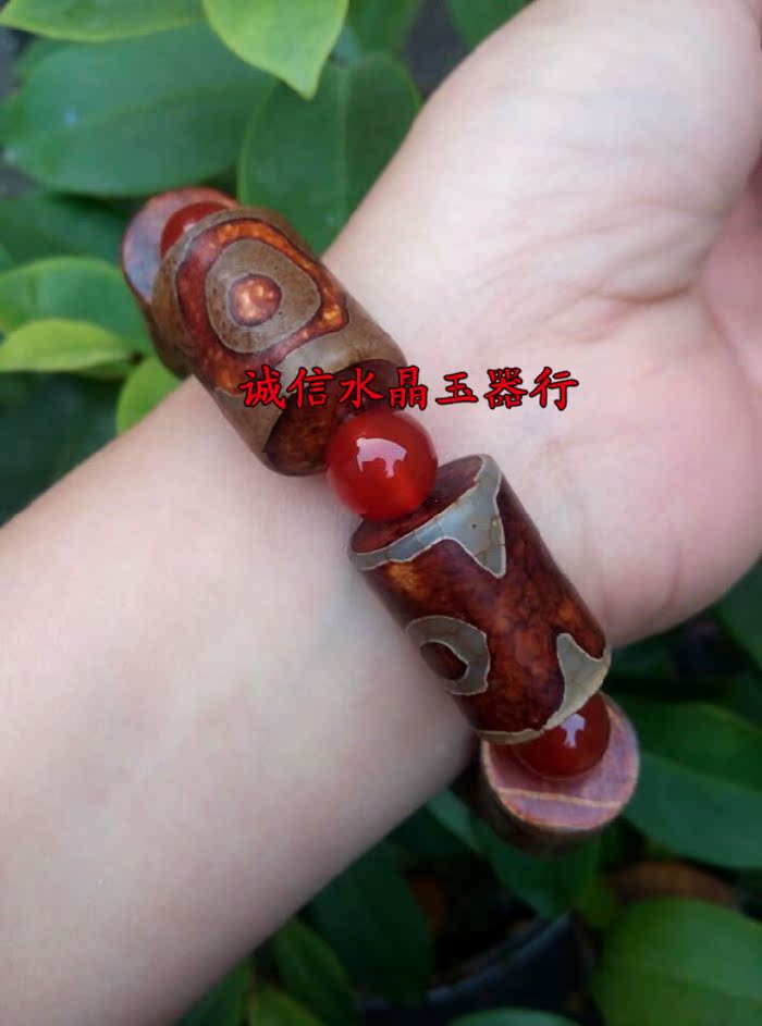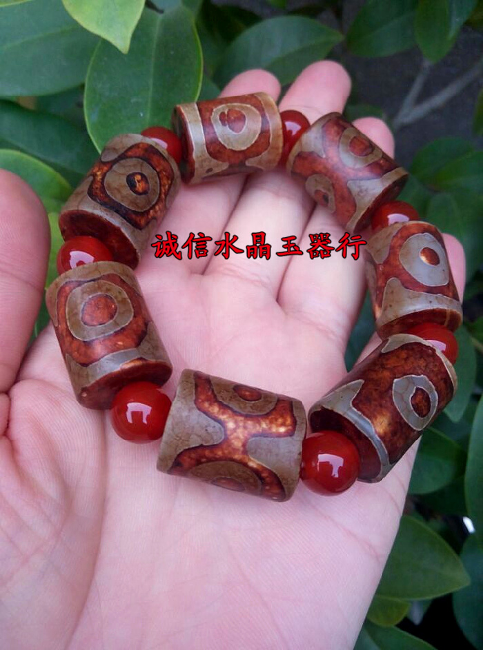 [5]三眼天珠 老瑪瑙手鏈 手串男復古聚財 佛珠念珠 辟邪招財寶1入