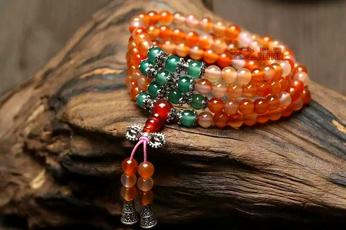 純天然多彩瑪瑙佛珠手鏈108顆6mm女款多圈多層1入