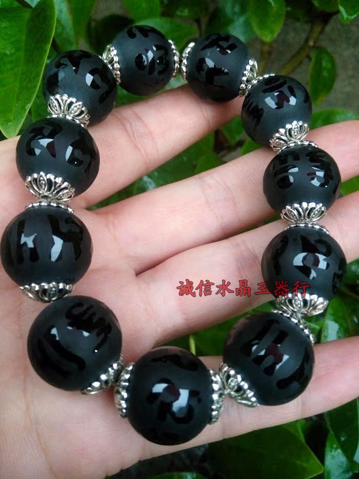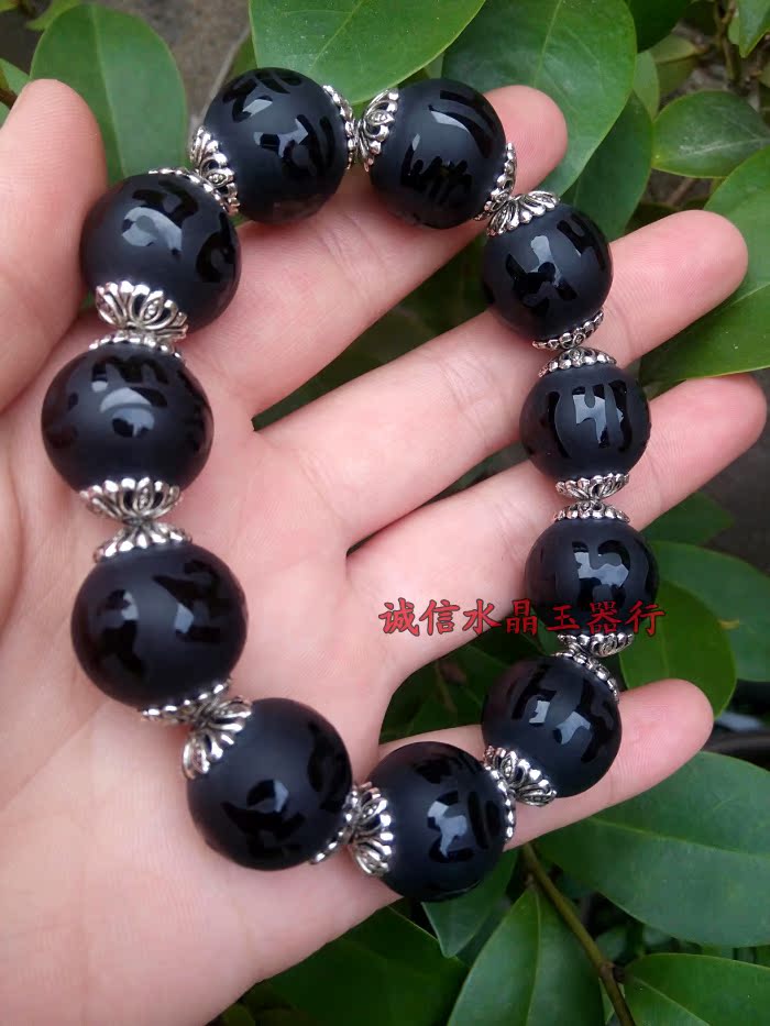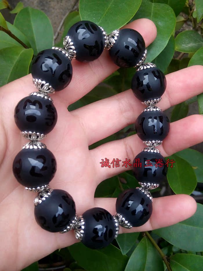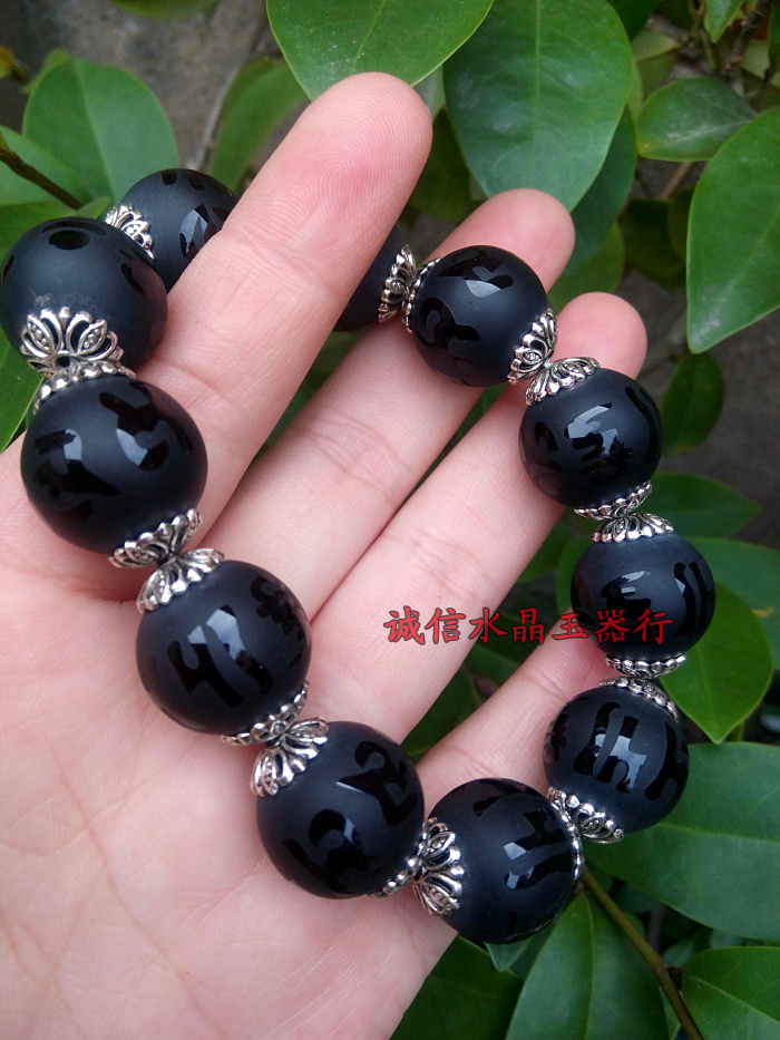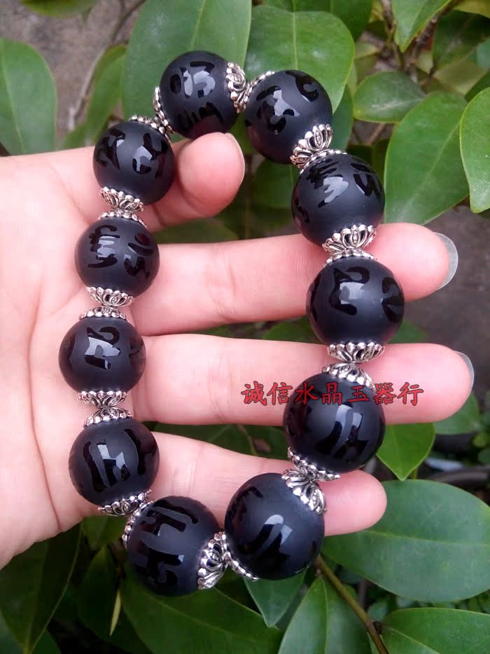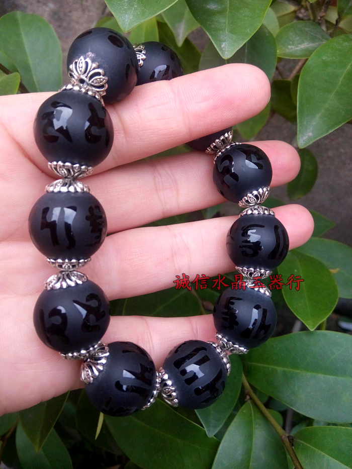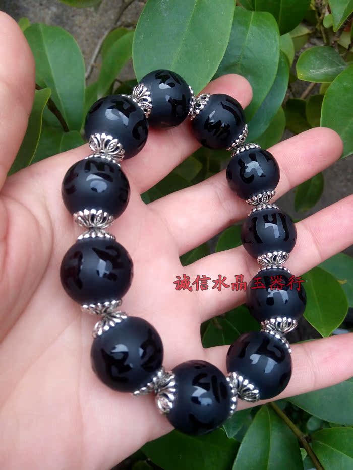 黑瑪瑙磨砂六子真言手鏈情侶款手串辟邪招財保平安1入