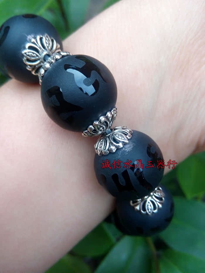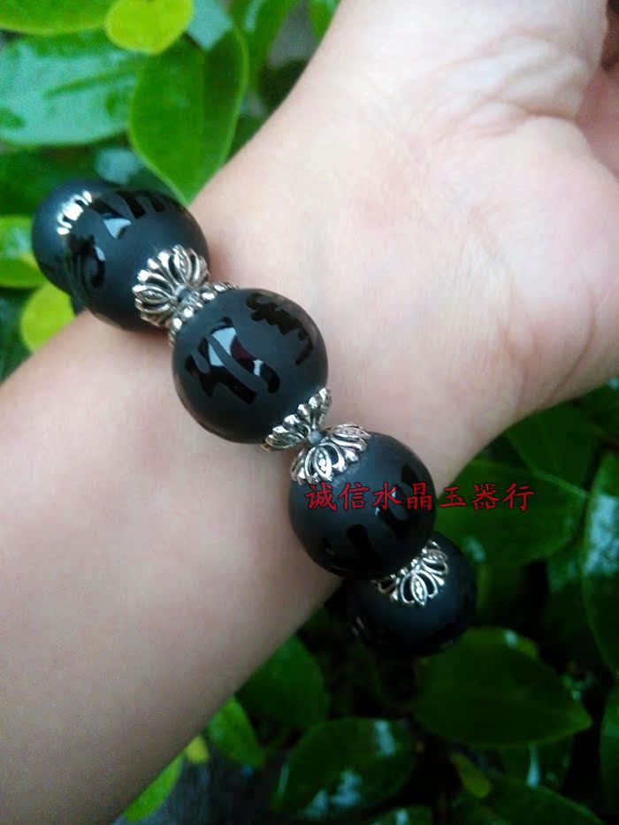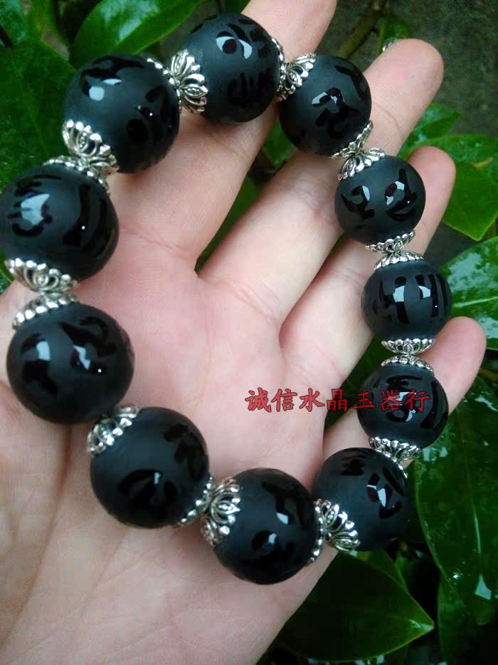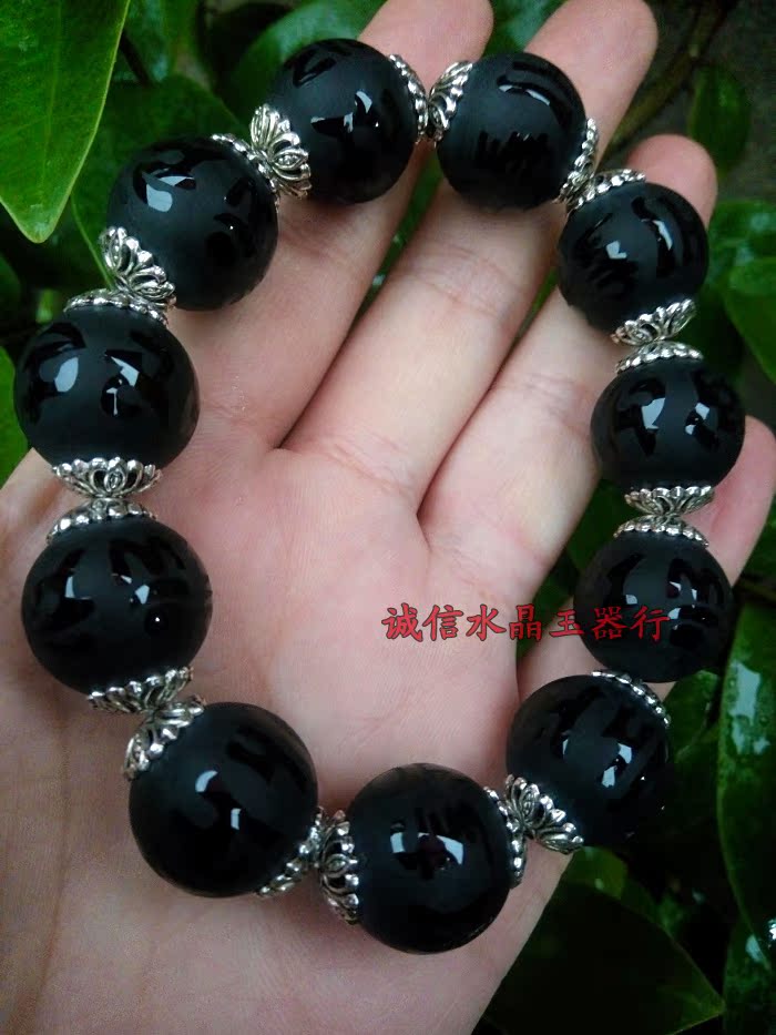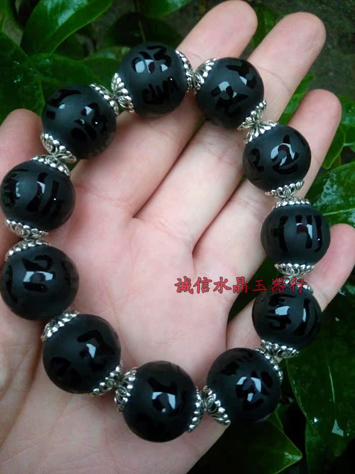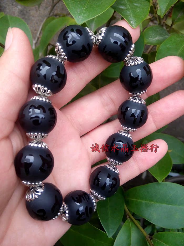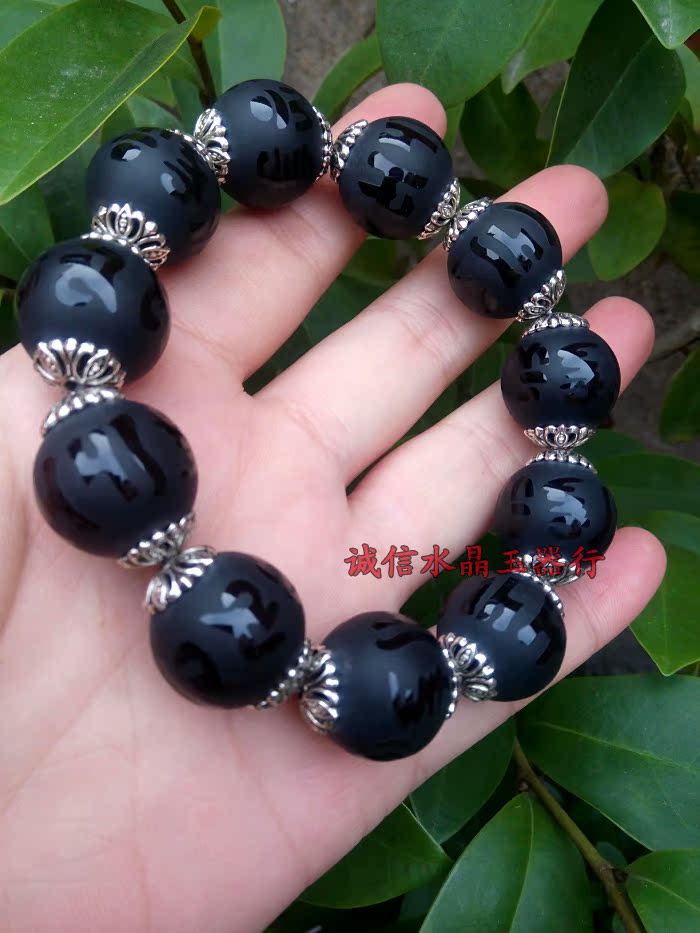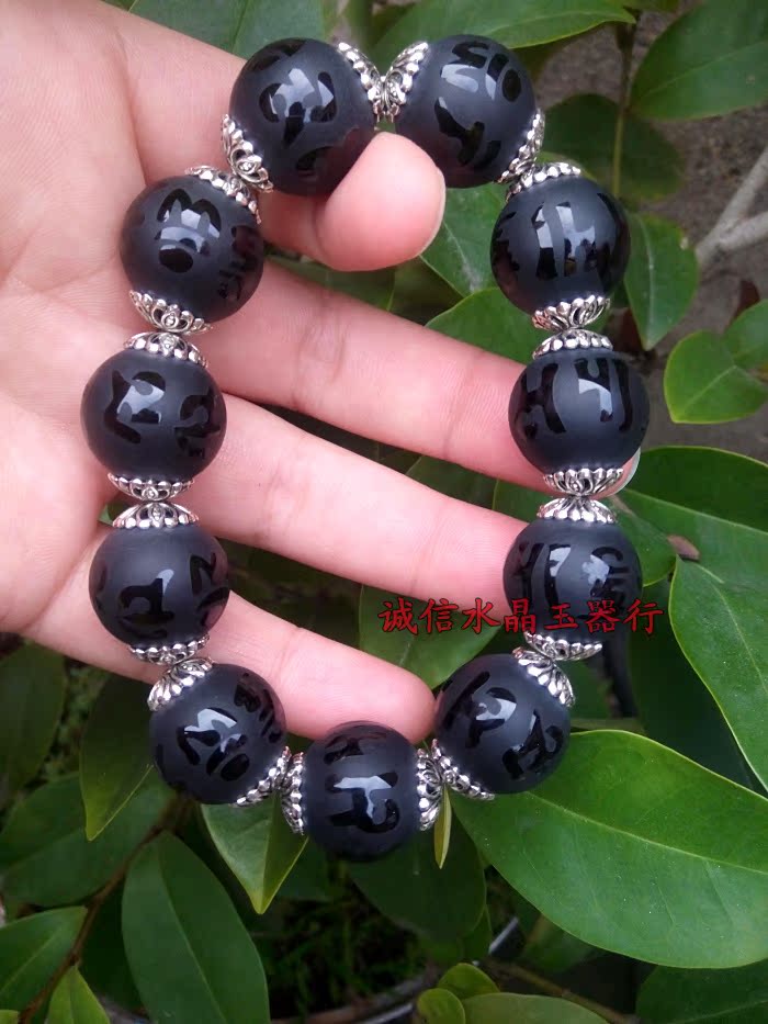 黑瑪瑙磨砂六子真言手鏈情侶款手串辟邪招財保平安1入