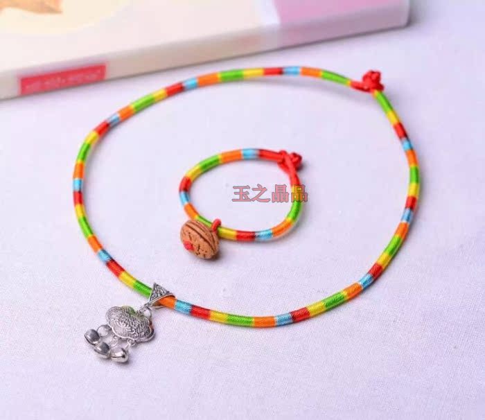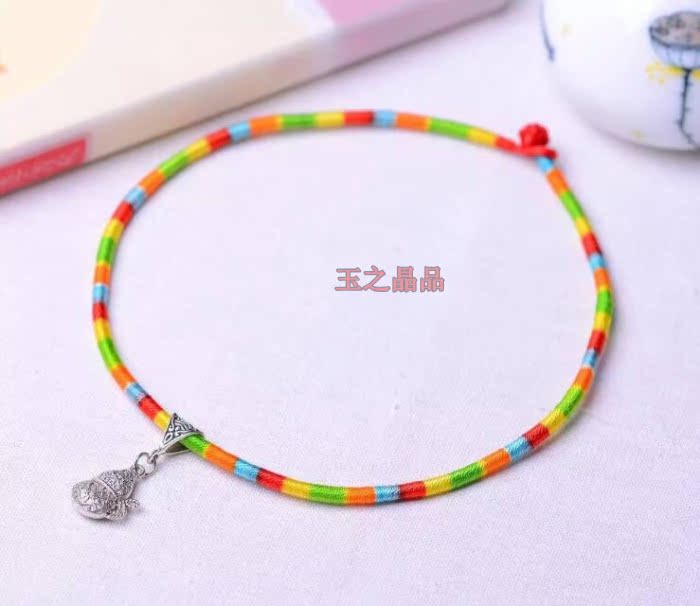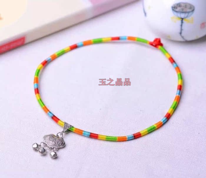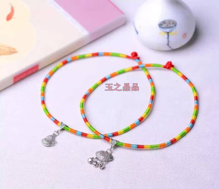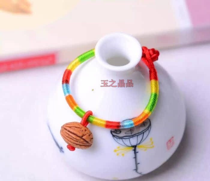 辟邪保平安五彩紅繩,不褪色純手工編織真桃核藏銀配件手鏈1入