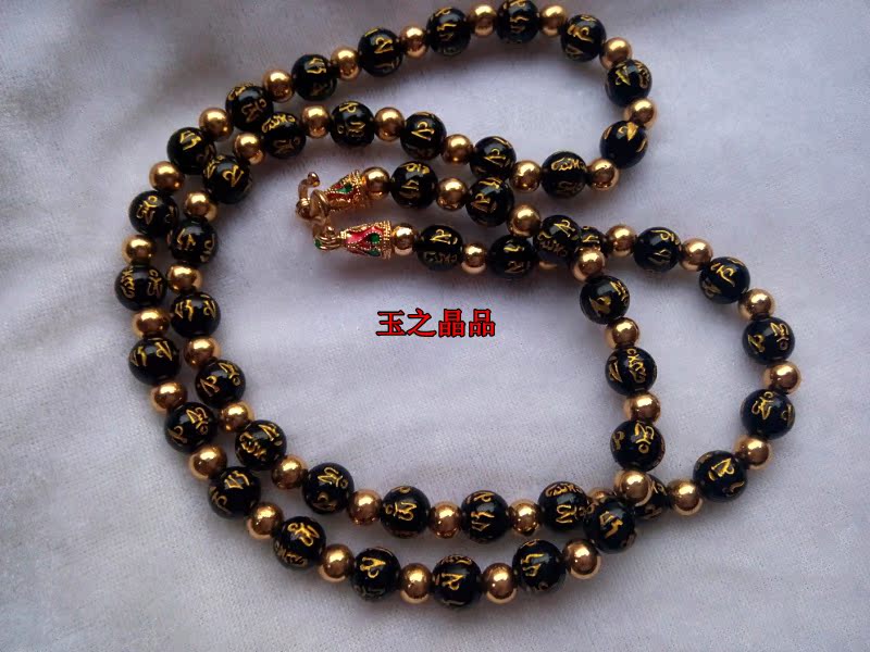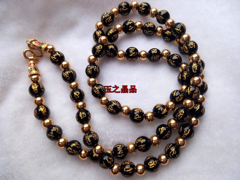 [2]8MM中大模專用 六字真言黑瑪瑙燙金色泰國佛牌鏈子經文款項鏈辟邪1入