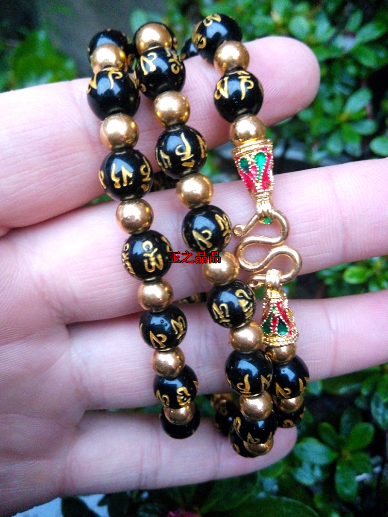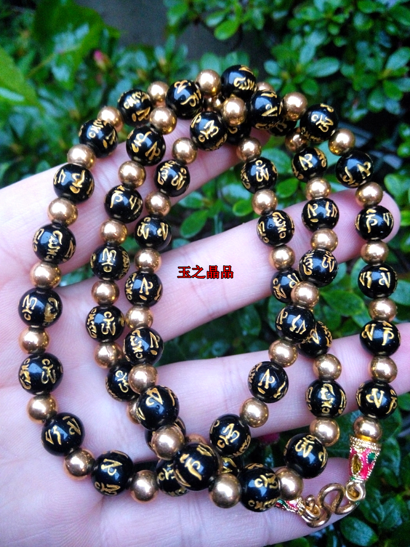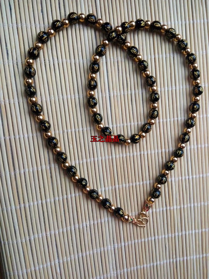 8MM中大模專用 六字真言黑瑪瑙燙金色泰國佛牌鏈子經文款項鏈辟邪1入