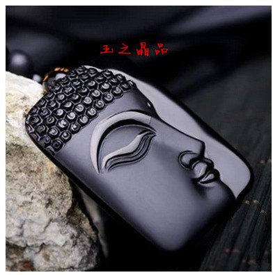 [2]天然黑曜石大日如來佛面佛頭吊墜 招財護身項鏈1入