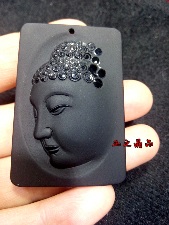 天然黑曜石大日如來佛面佛頭吊墜 招財護身項鏈1入
