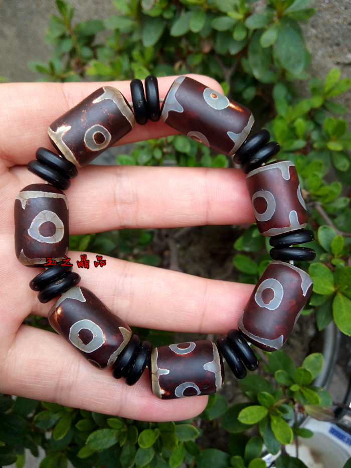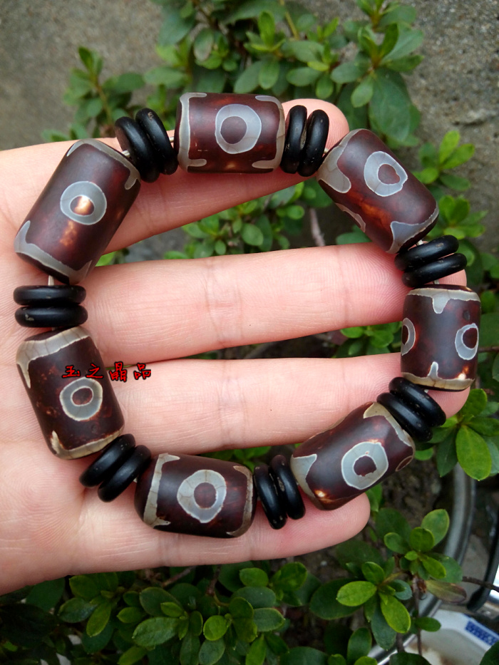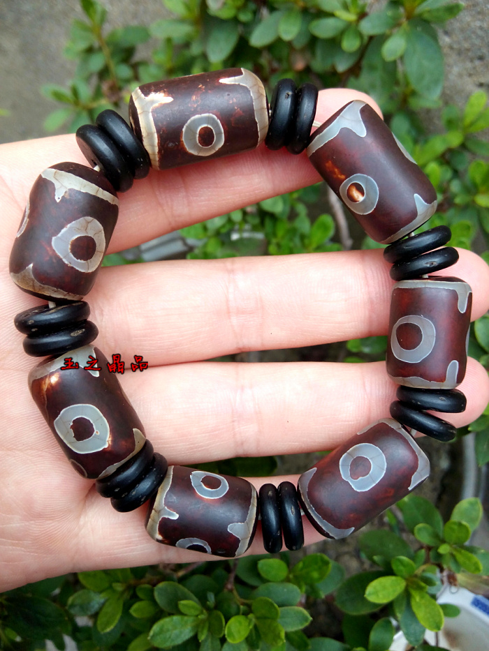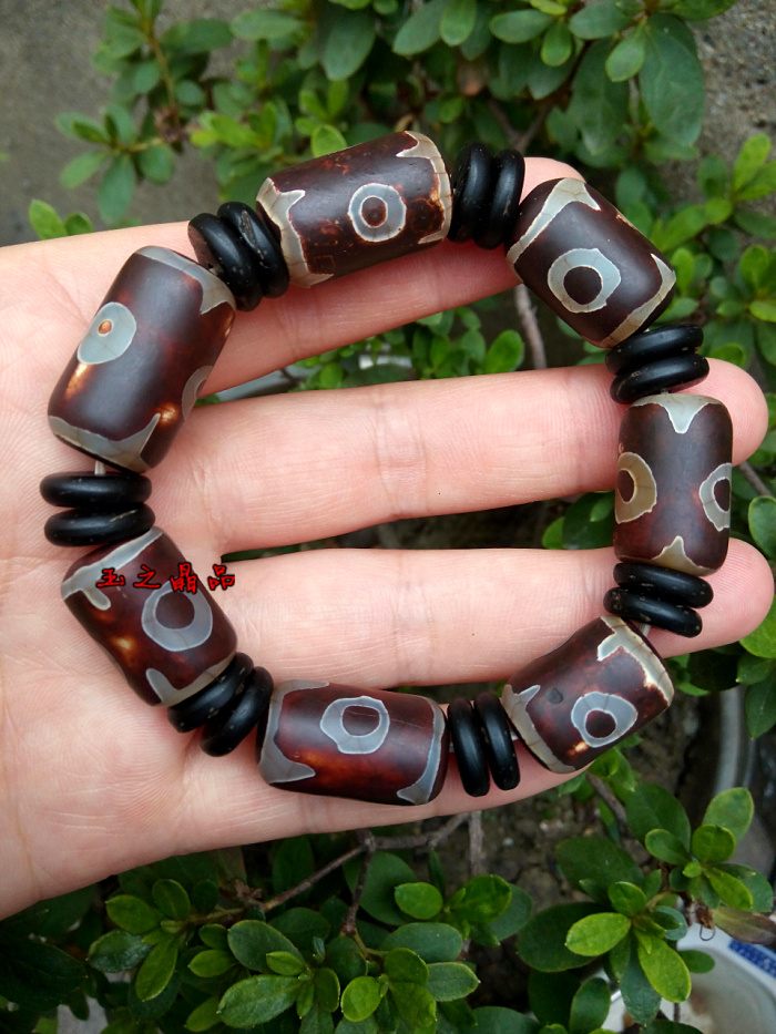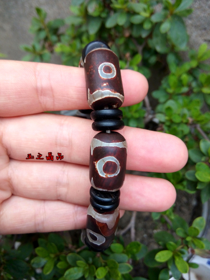 [4]三眼天珠 老瑪瑙手鏈 手串男復古聚財 佛珠念珠 辟邪招財寶1入