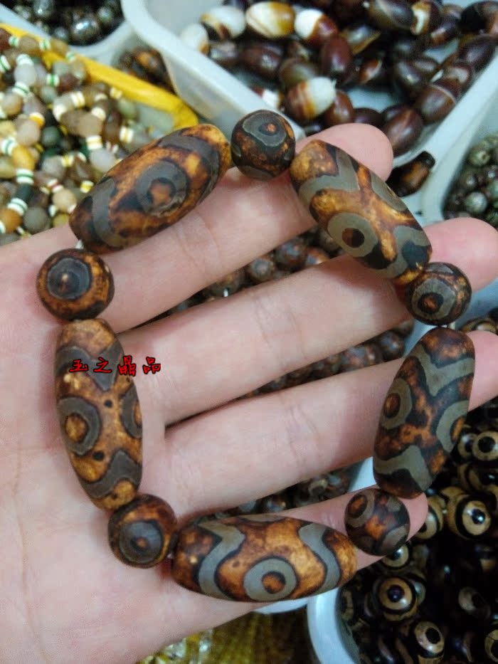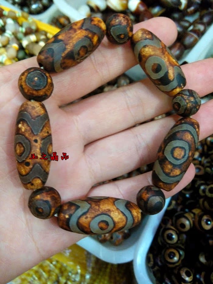 [3]三眼天珠 老瑪瑙手鏈 手串男復古聚財 佛珠念珠 辟邪招財寶1入