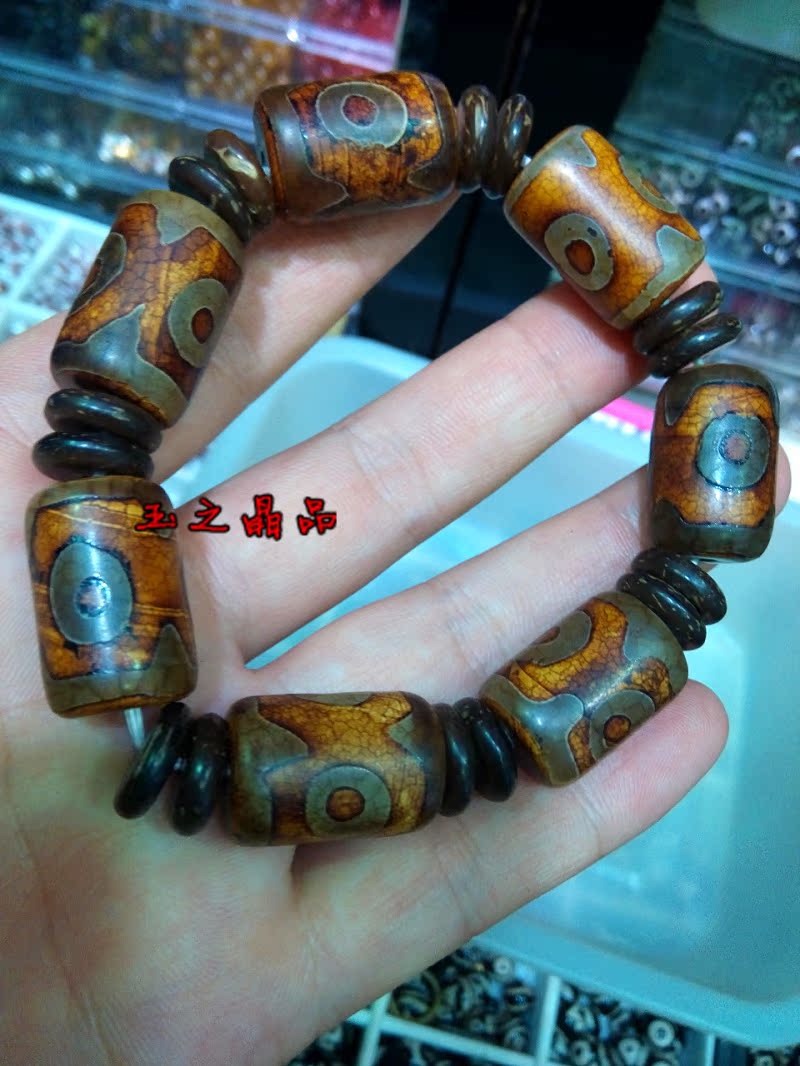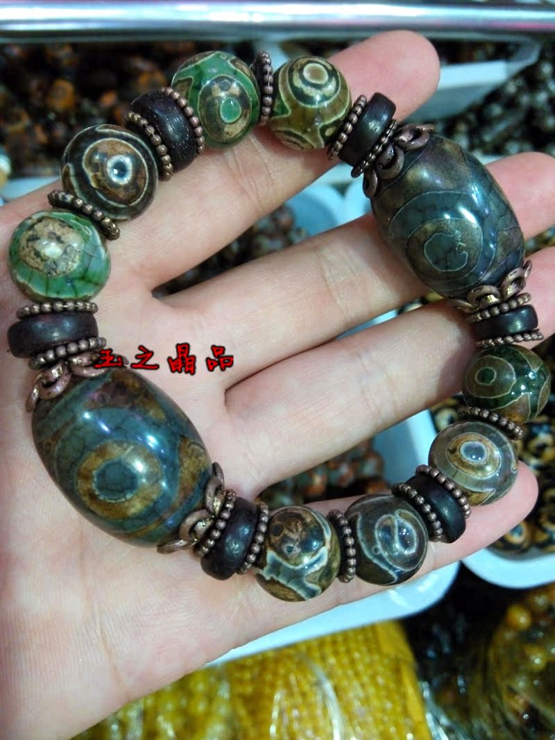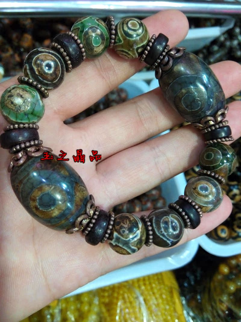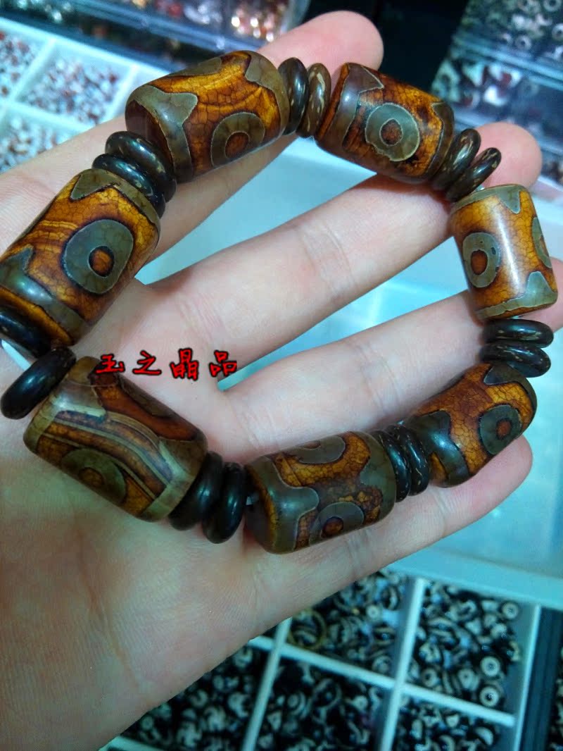 [2]三眼天珠 老瑪瑙手鏈 手串男復古聚財 佛珠念珠 辟邪招財寶1入