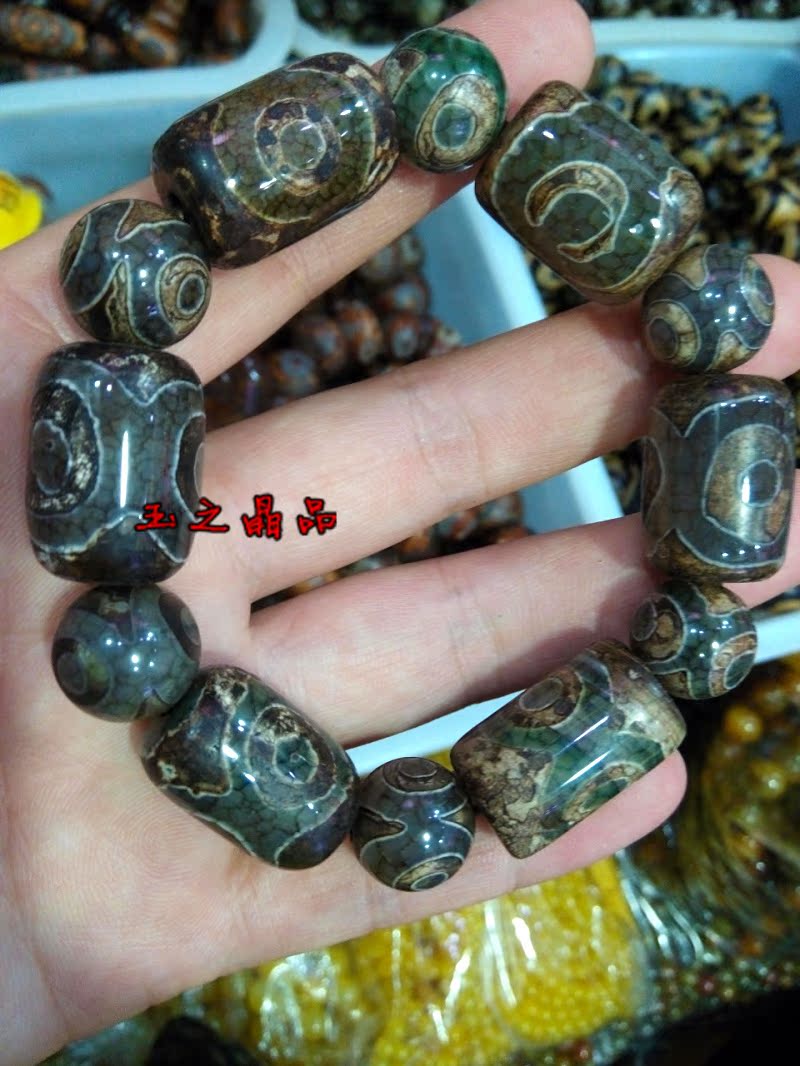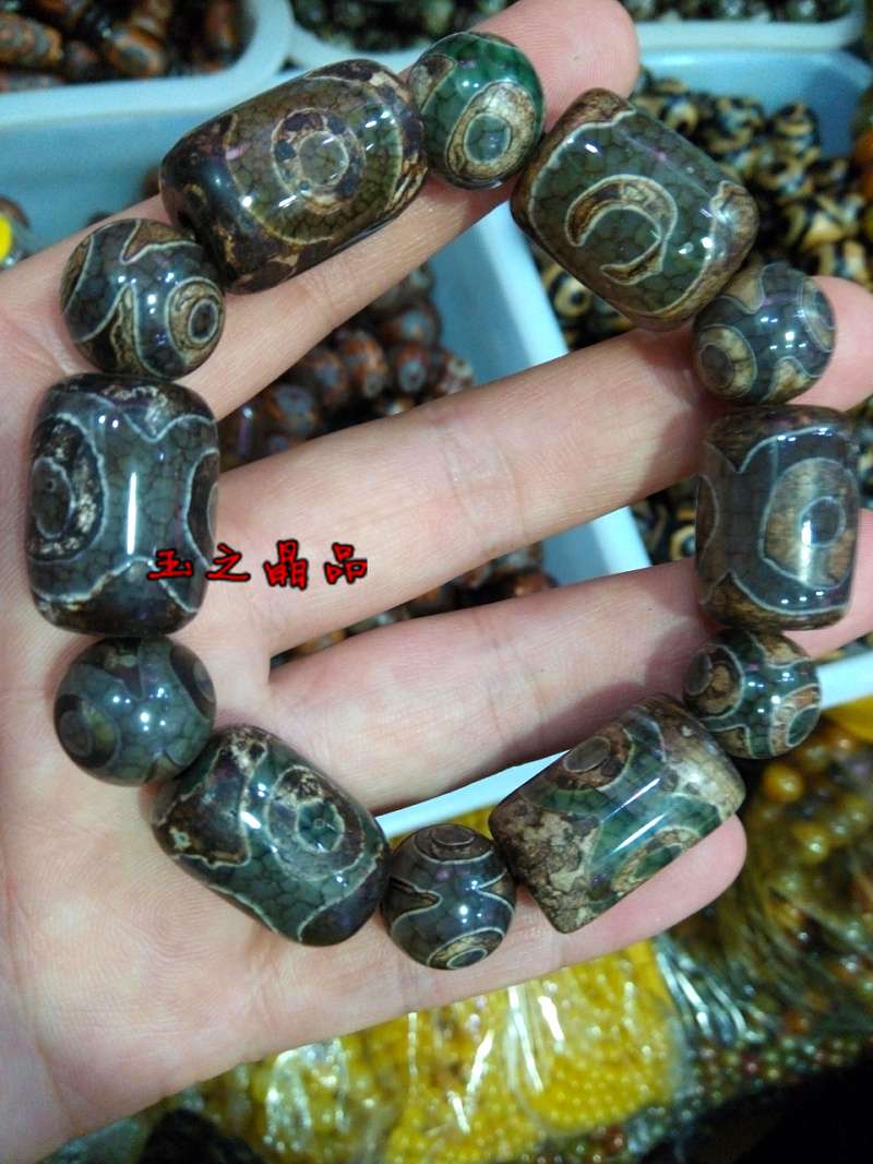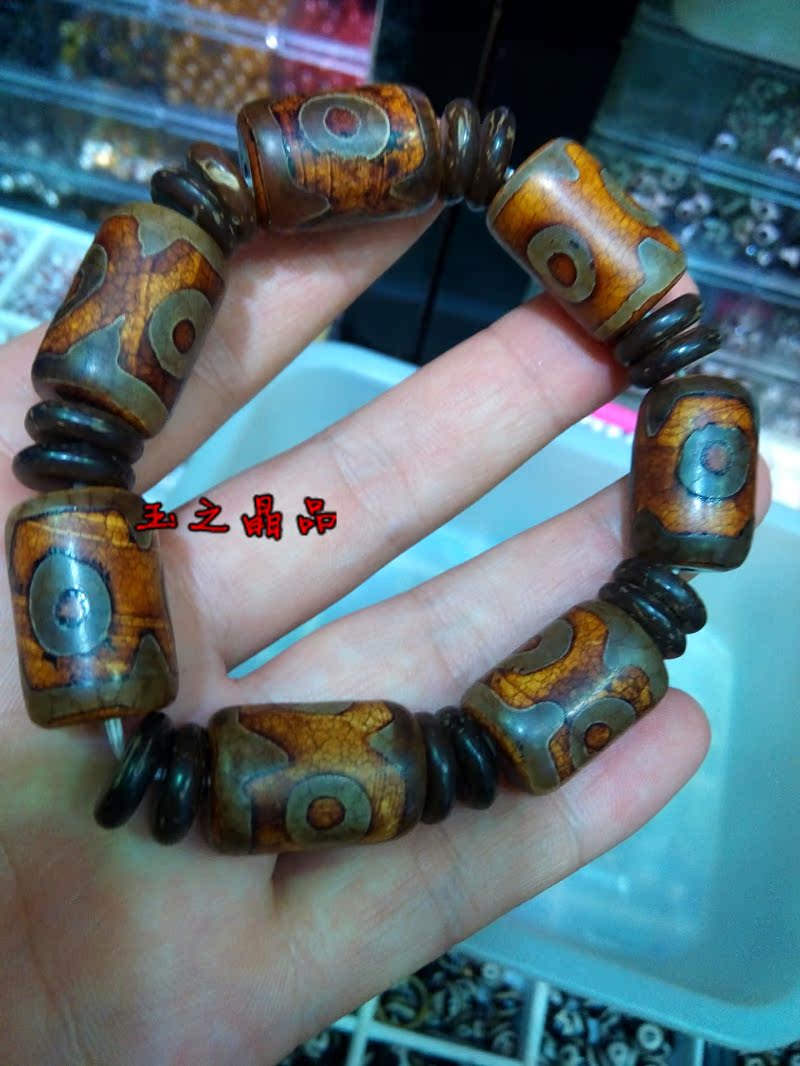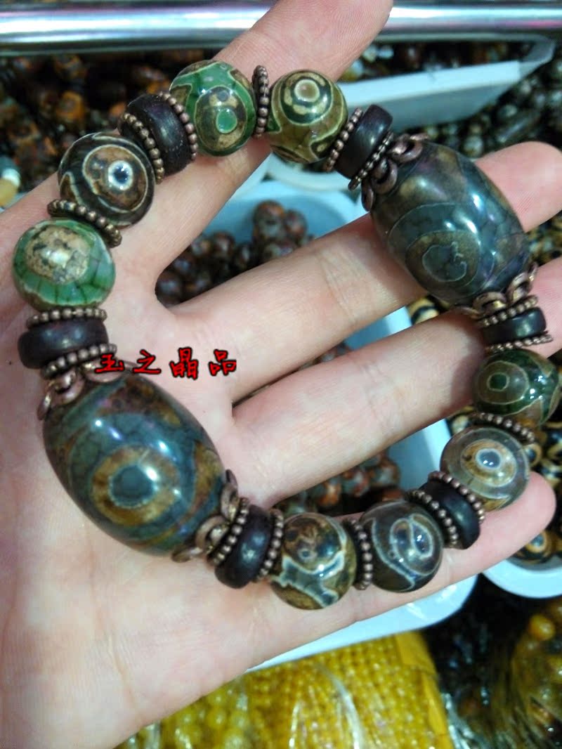 [2]三眼天珠 老瑪瑙手鏈 手串男復古聚財 佛珠念珠 辟邪招財寶1入