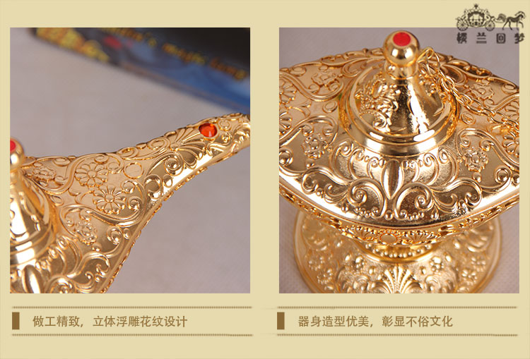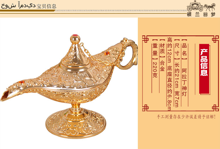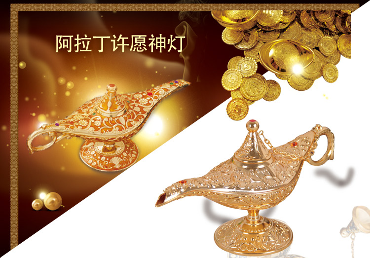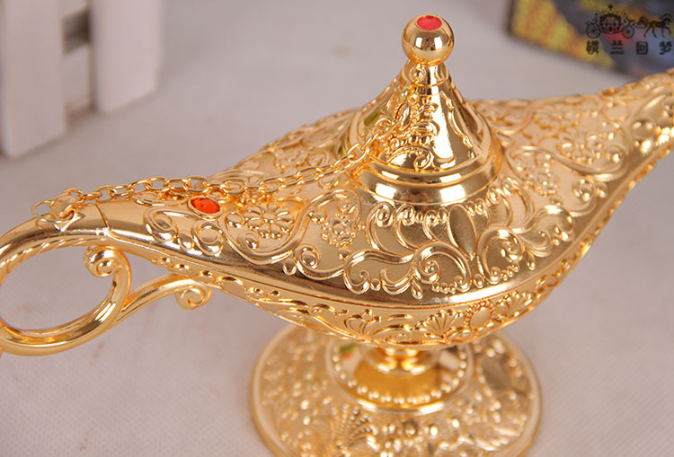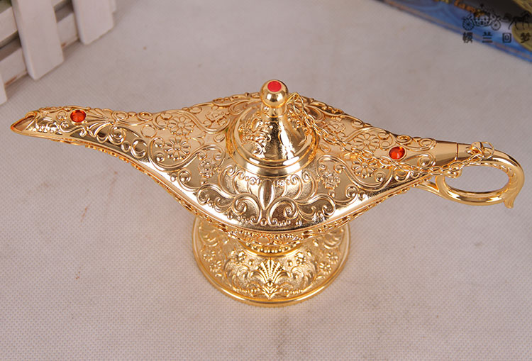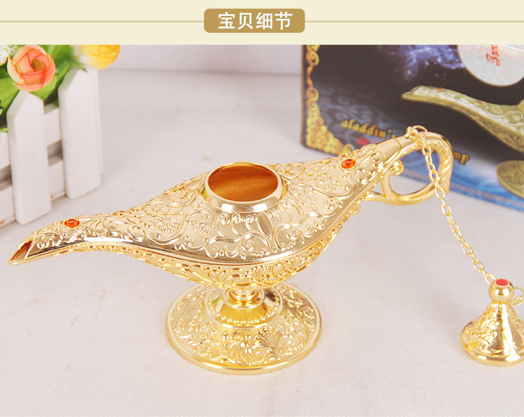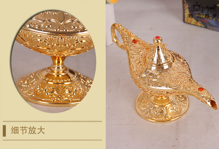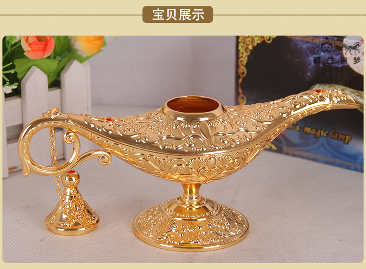 阿拉丁神燈中號金屬錫合金家居擺件金色神燈復古許愿燈工藝品禮品1入