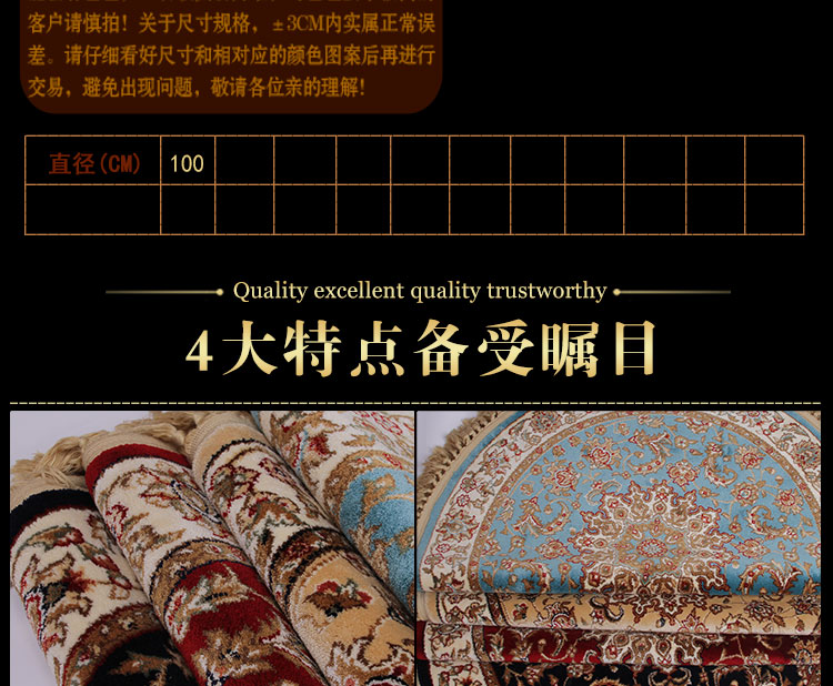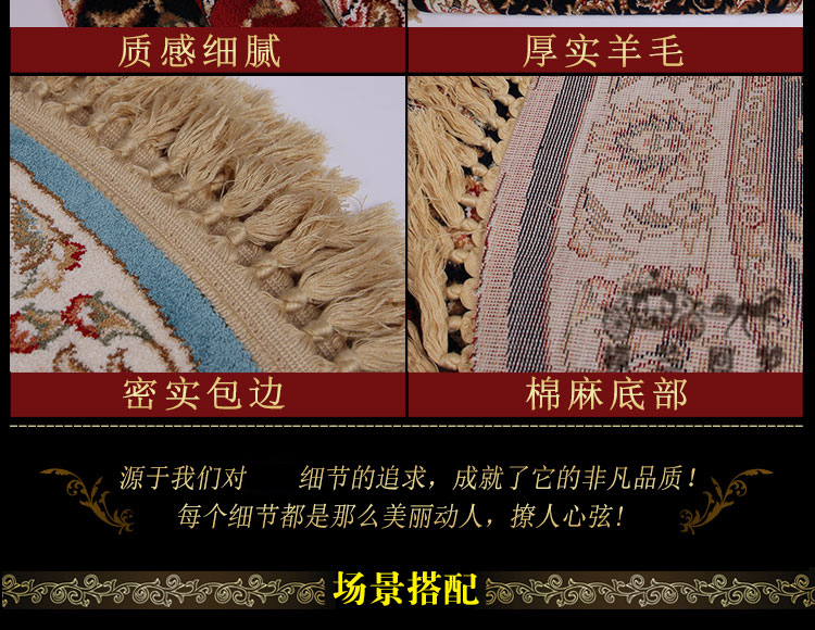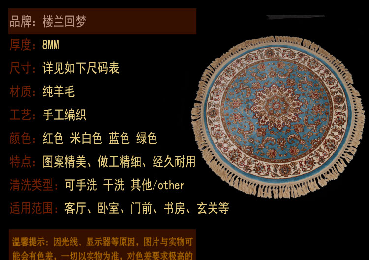 新疆純羊毛手工圓地毯客廳歐式地墊簡約現代臥室床邊圓形地毯腳墊1入