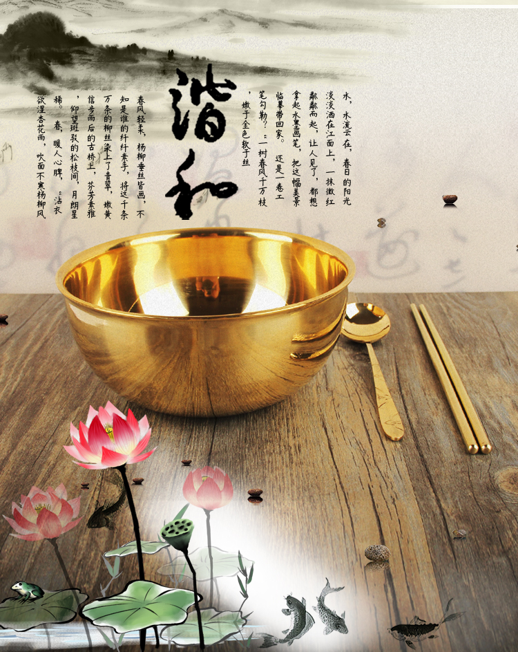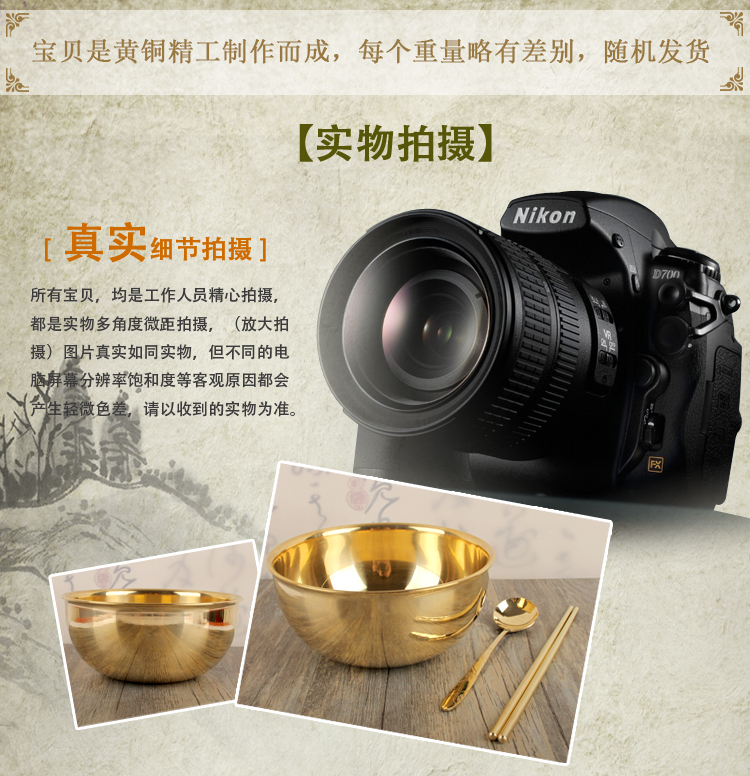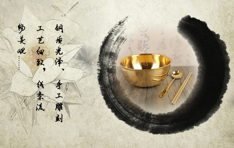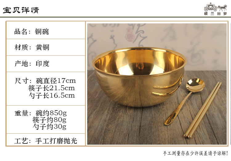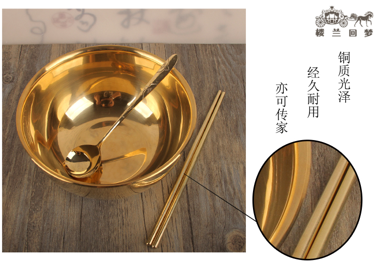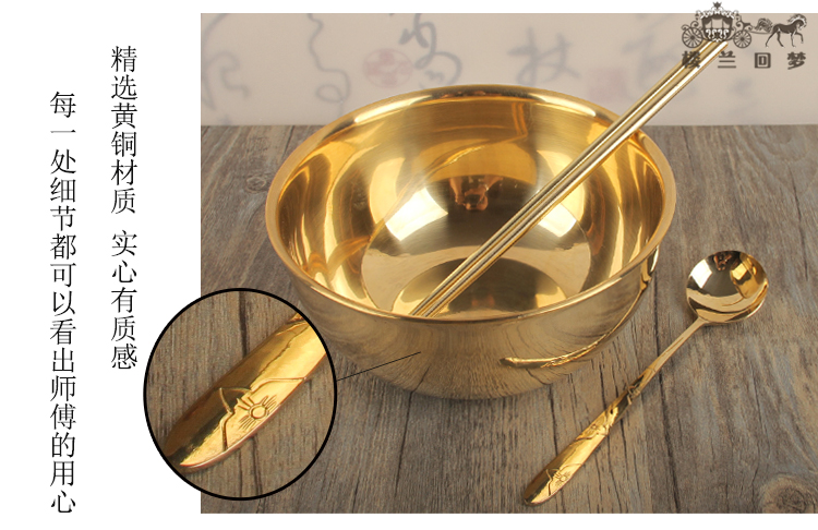 進口6.5英寸銅碗銅筷子銅勺子套裝創意家用個性餐具純銅飯碗湯碗1入
