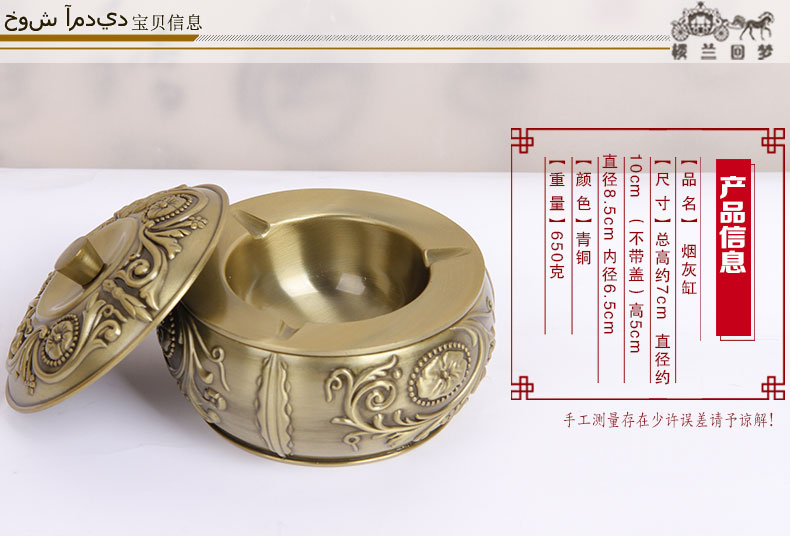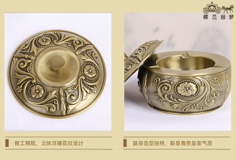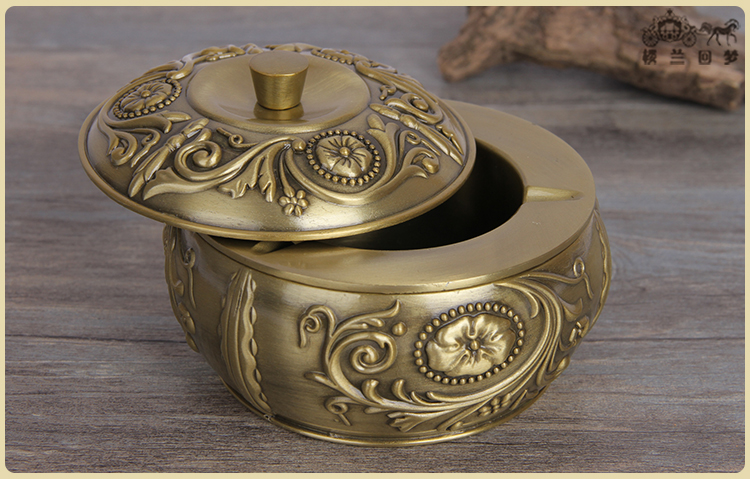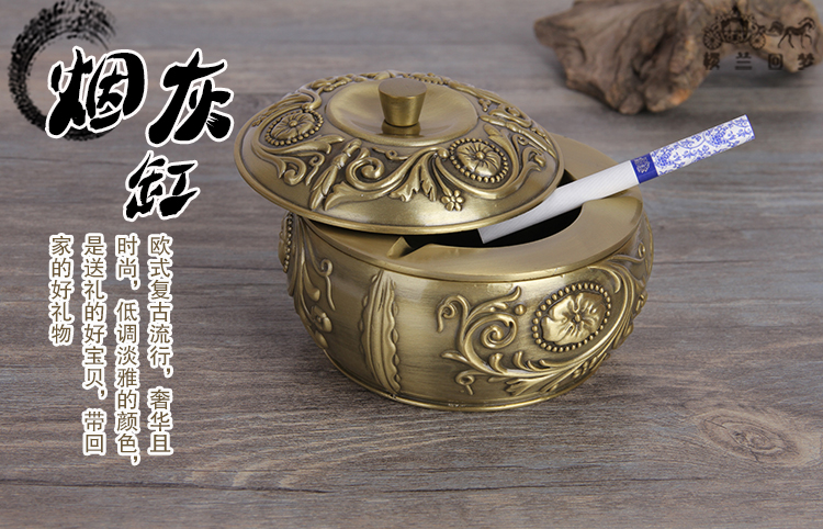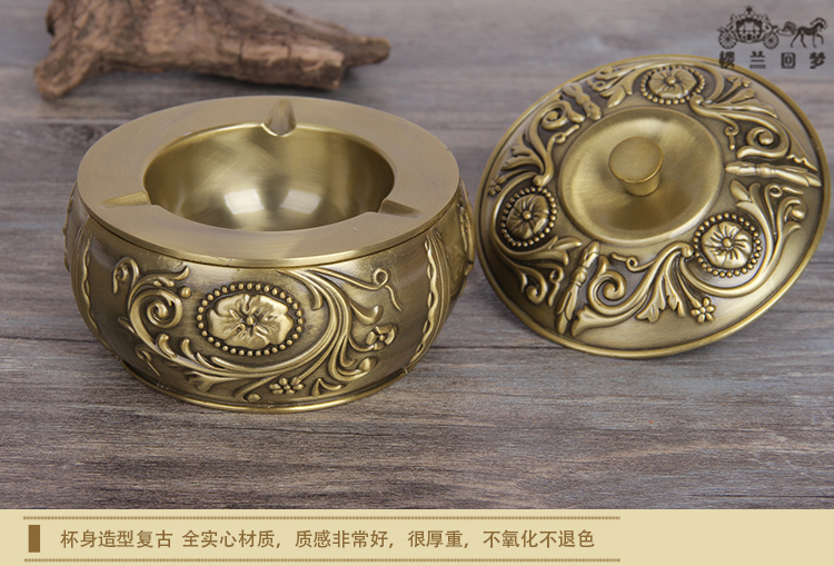 創意個性煙灰缸帶蓋老公生日禮物男士客廳復古金屬銅辦公室煙灰缸1入